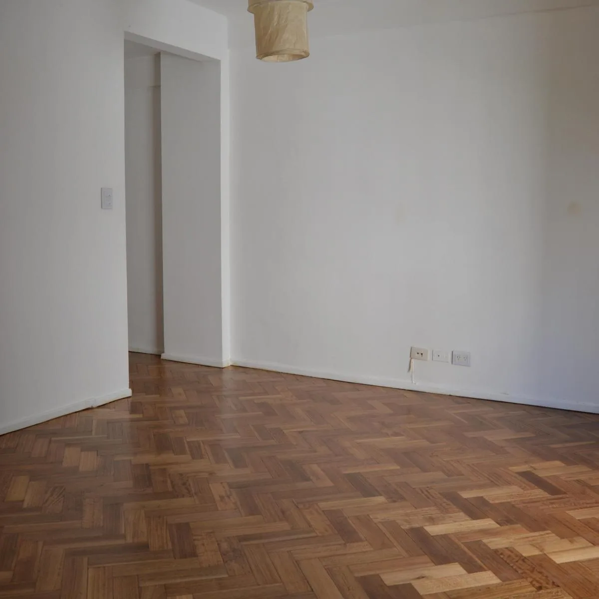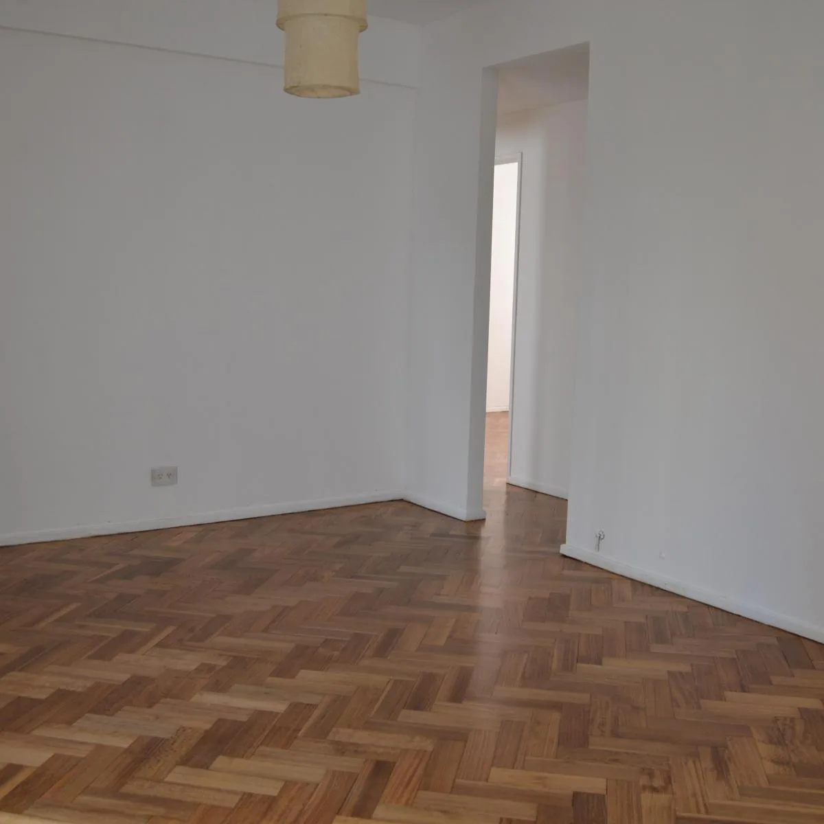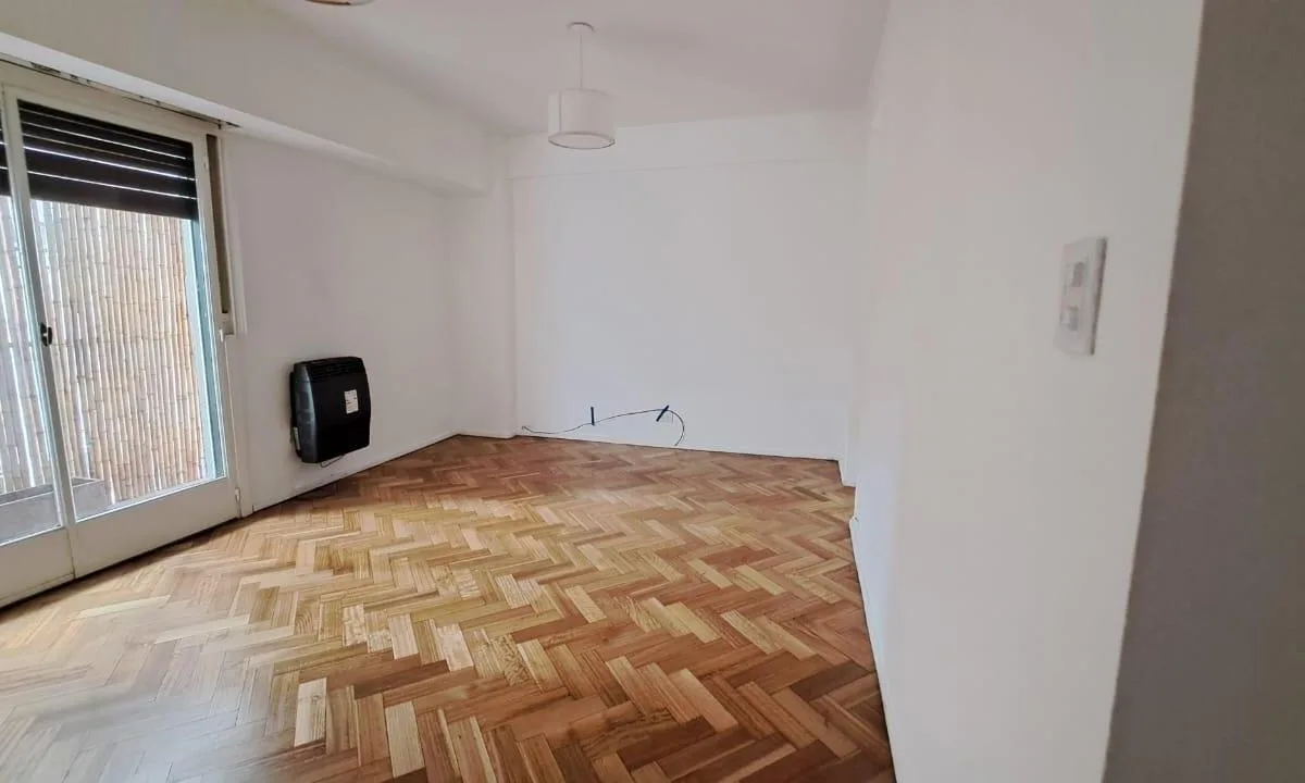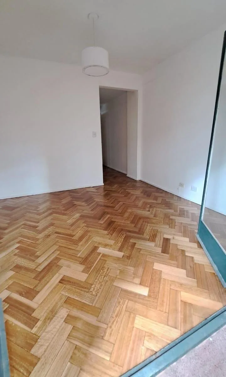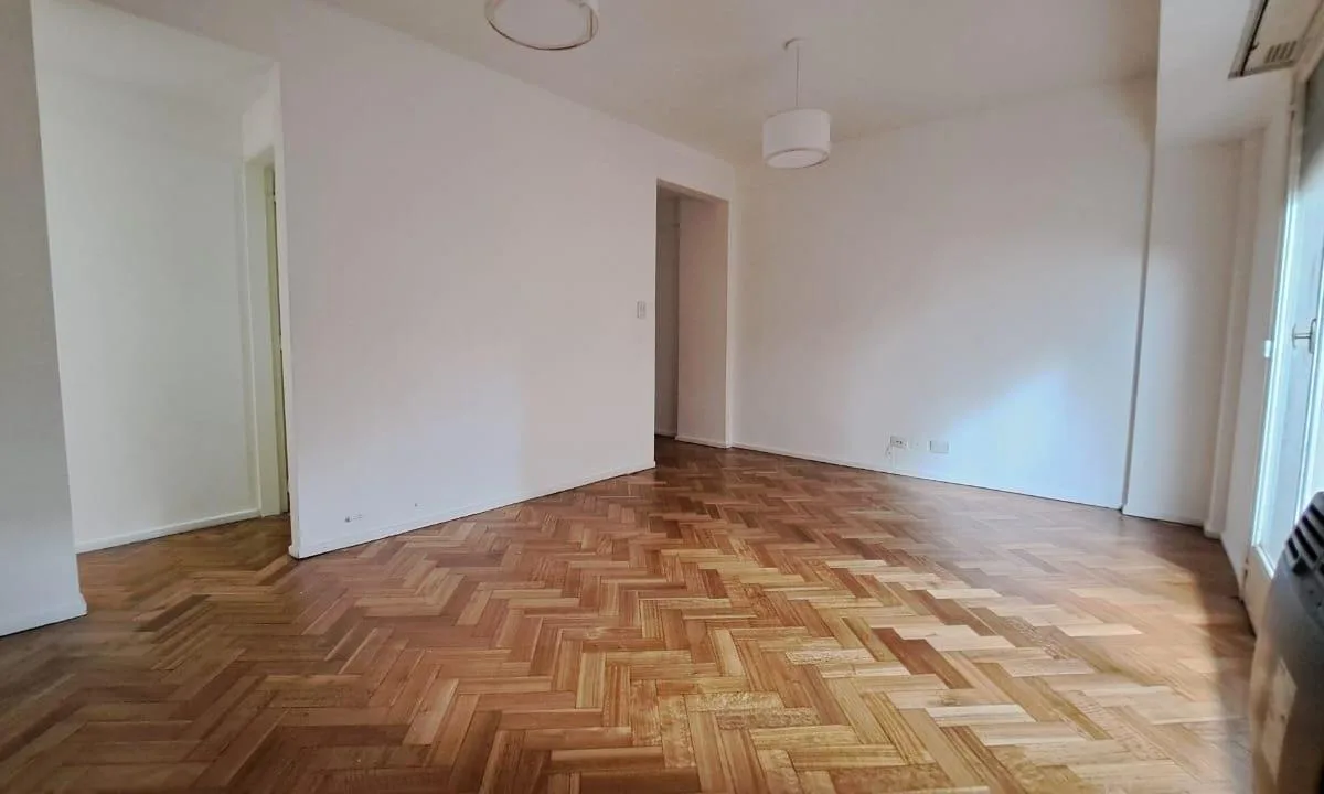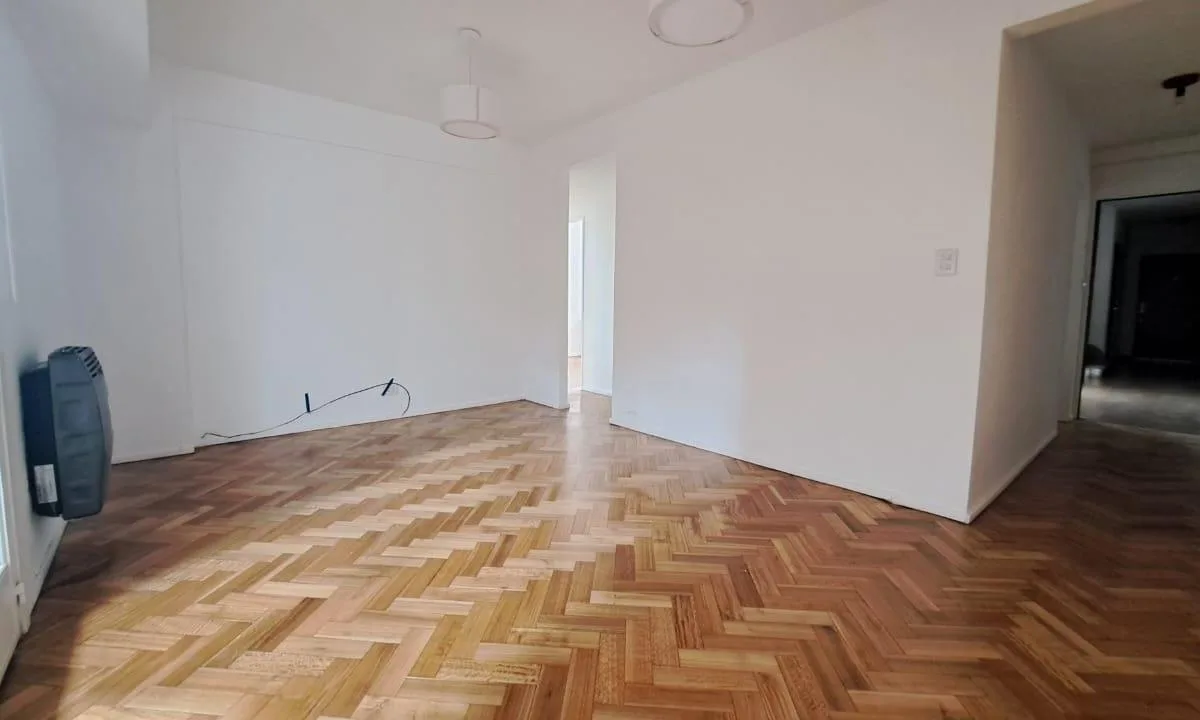 Apartamento de 3 ambientes em Olivos, com 2 dormitórios e área social integrada (living com sala de jantar). Banheiro e cozinha reformados, com cozinha equipada com bancada e área de serviço integrada. Possui varanda corrida, 1 ar-condicionado e piso de parquet com revestimento nos ambientes e dormitórios; há móveis planejados nos 2 dormitórios.