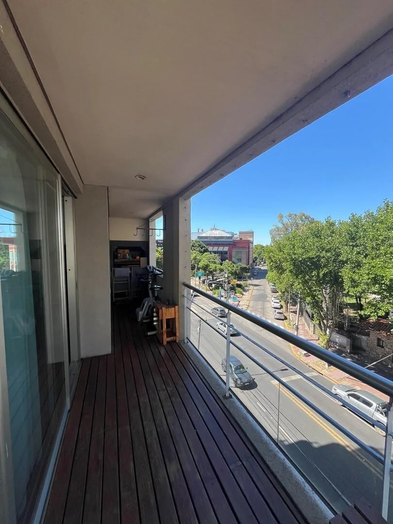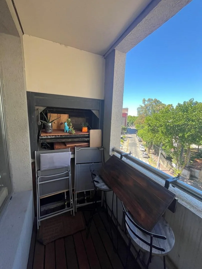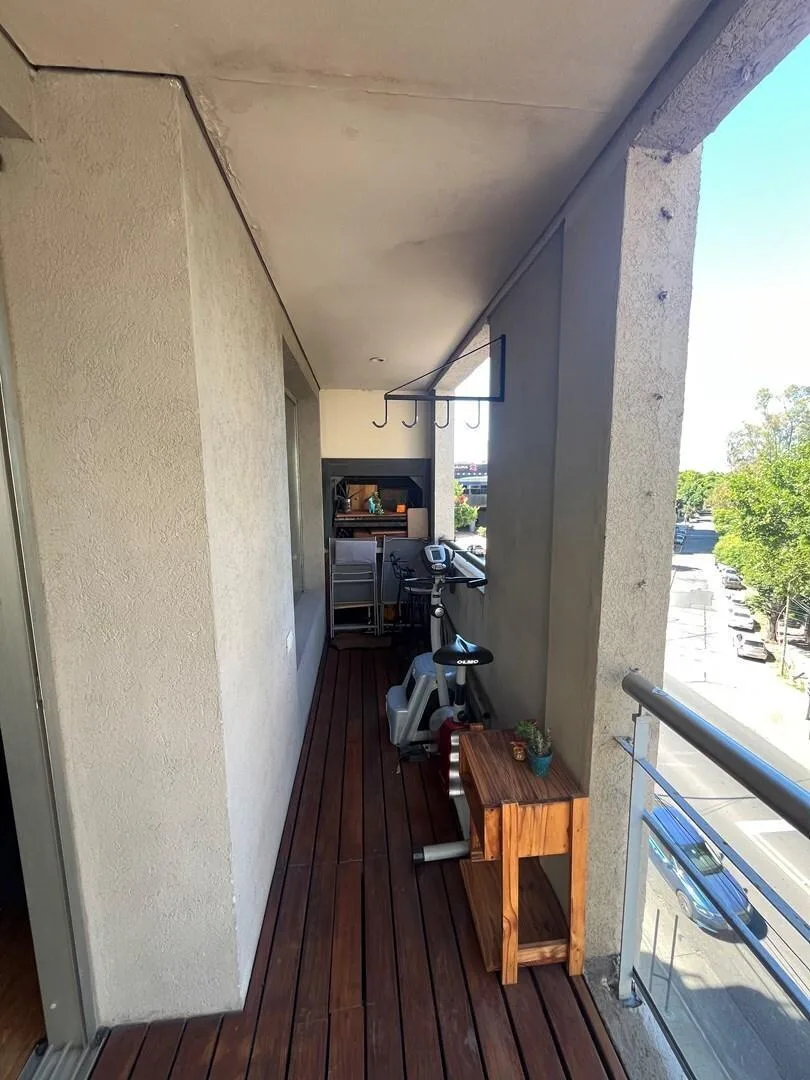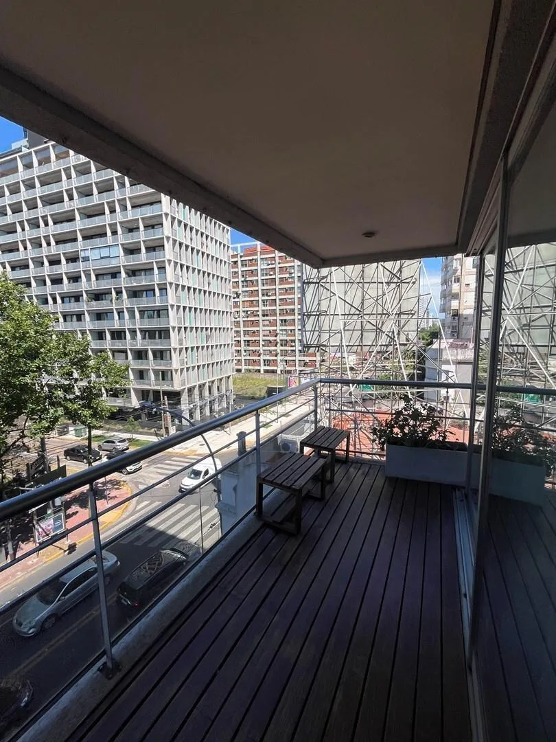 Apartamento de 3 ambientes mobiliado em Olivos, no 3º andar, com aproximadamente 110 m² totais. Inclui sala em L, cozinha independente, 2 dormitórios com armários (um com closet) e 2 banheiros completos, sendo 1 suíte. Há varanda-terraço com deck e área de churrasco própria, janelas com vidro duplo e detalhes como pia dupla e chuveiros duplos. O aluguel inclui 2 vagas de garagem (1 coberta) e acesso a segurança 24 horas, piscina aquecida, solário, academia com vestiários e salão de festas com ch