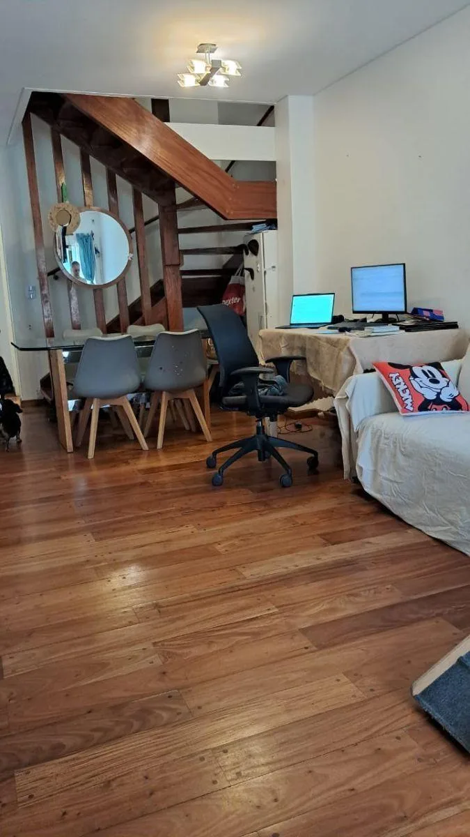 Duplex para aluguel em Olivos, com 4 ambientes distribuídos em 3 plantas. Possui 2 dormitórios e 2 banheiros, além de 1 lavabo; cozinha, sala de jantar e living comedor. No exterior, conta com pátio, área de churrasco (quincho) e terraço. Há 1 vaga de garagem, ar-condicionado e mezanino (altillo); lavanderia independente. Orientação para o leste e antiguidade de 30 anos.