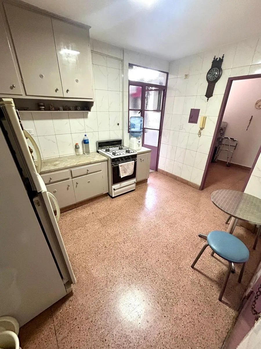 Apartamento de três ambientes com dependência, mobiliado, em Palermo. O living e a sala de jantar têm dimensões amplas; a cozinha é completa, com fogão a gás de 4 bocas e espaço para cozinha/sala de jantar. Inclui lavanderia separada, quartos amplos, toilette e dependência usada como escritório.