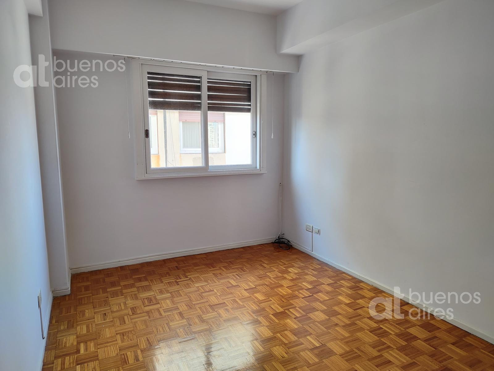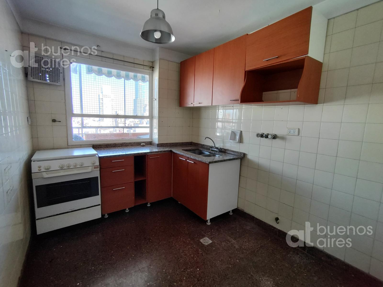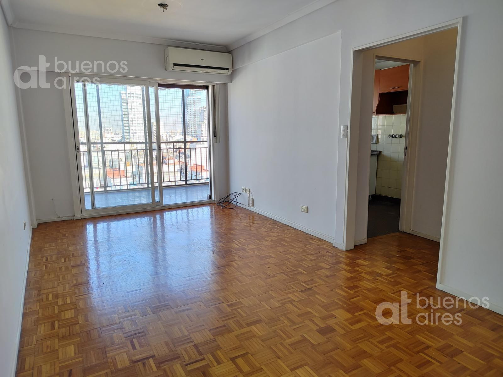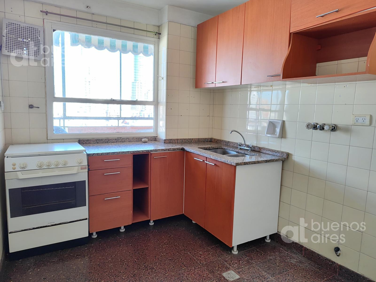 Apartamento de 3 ambientes com varanda em Palermo, disponível a partir de 04/04/2026. Inclui sala de jantar com piso de parquet e ar-condicionado, além de grande janela voltada para os fundos com varanda. Cozinha independente com forno a gás de 4 bocas, espaço para geladeira e área com instalação para máquina de lavar. Possui 2 dormitórios com armários embutidos; o dormitório principal tem ventilador de teto. Conta com 1 banheiro completo. O edifício tem água quente central e aquecimento central