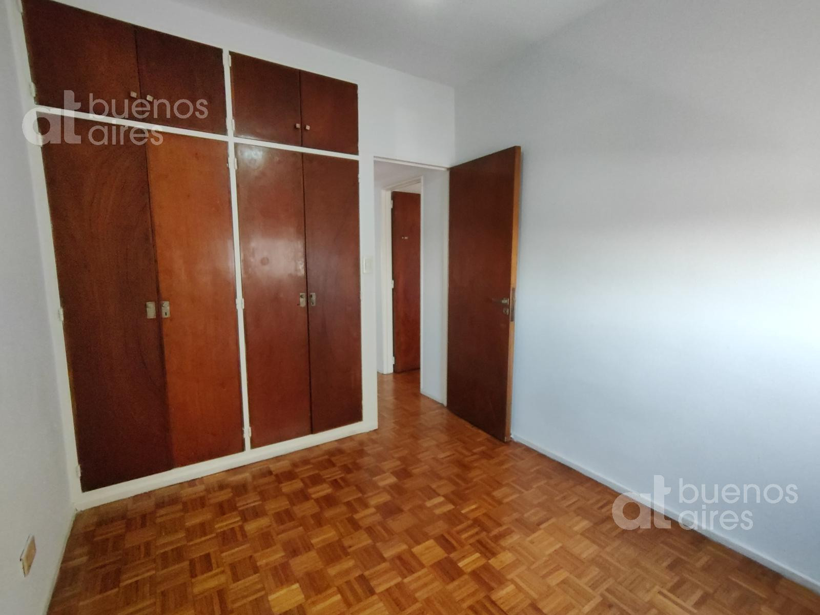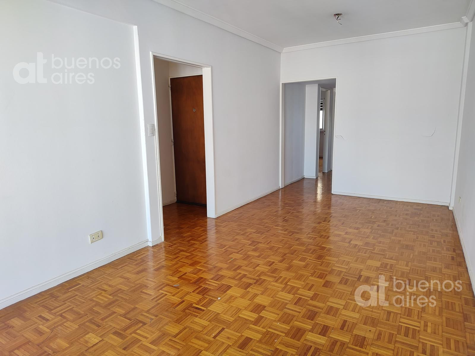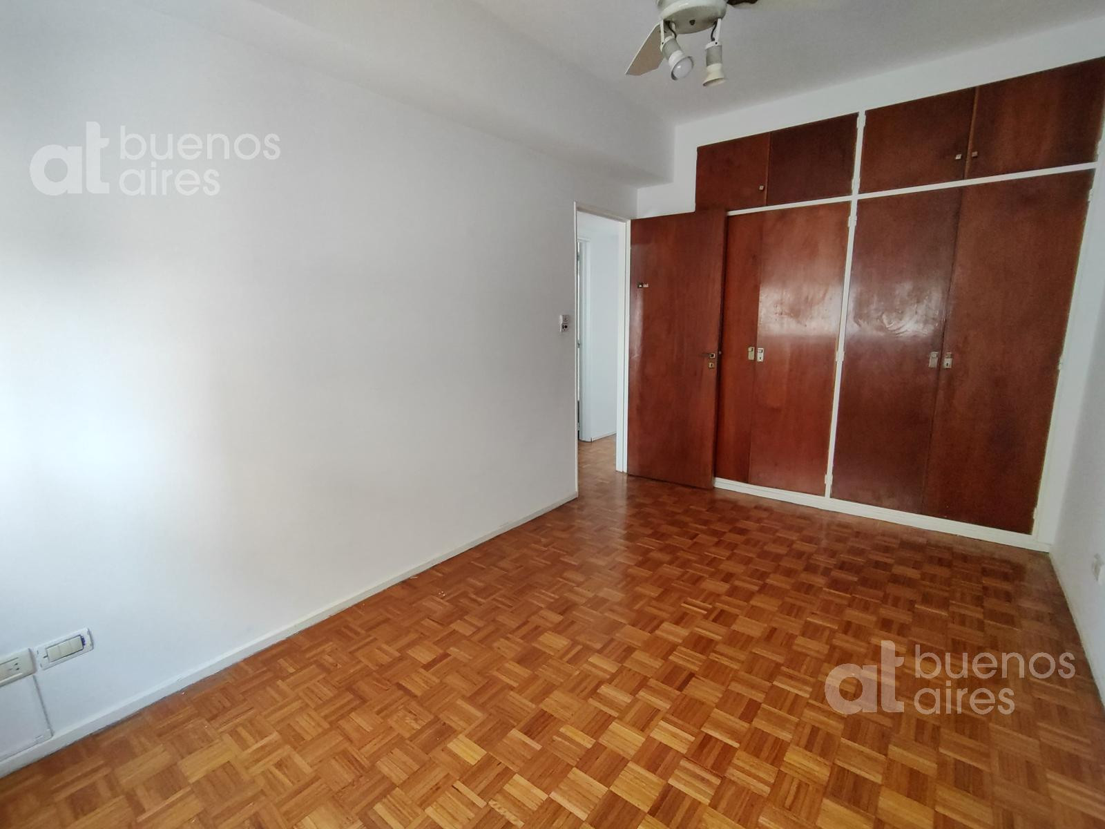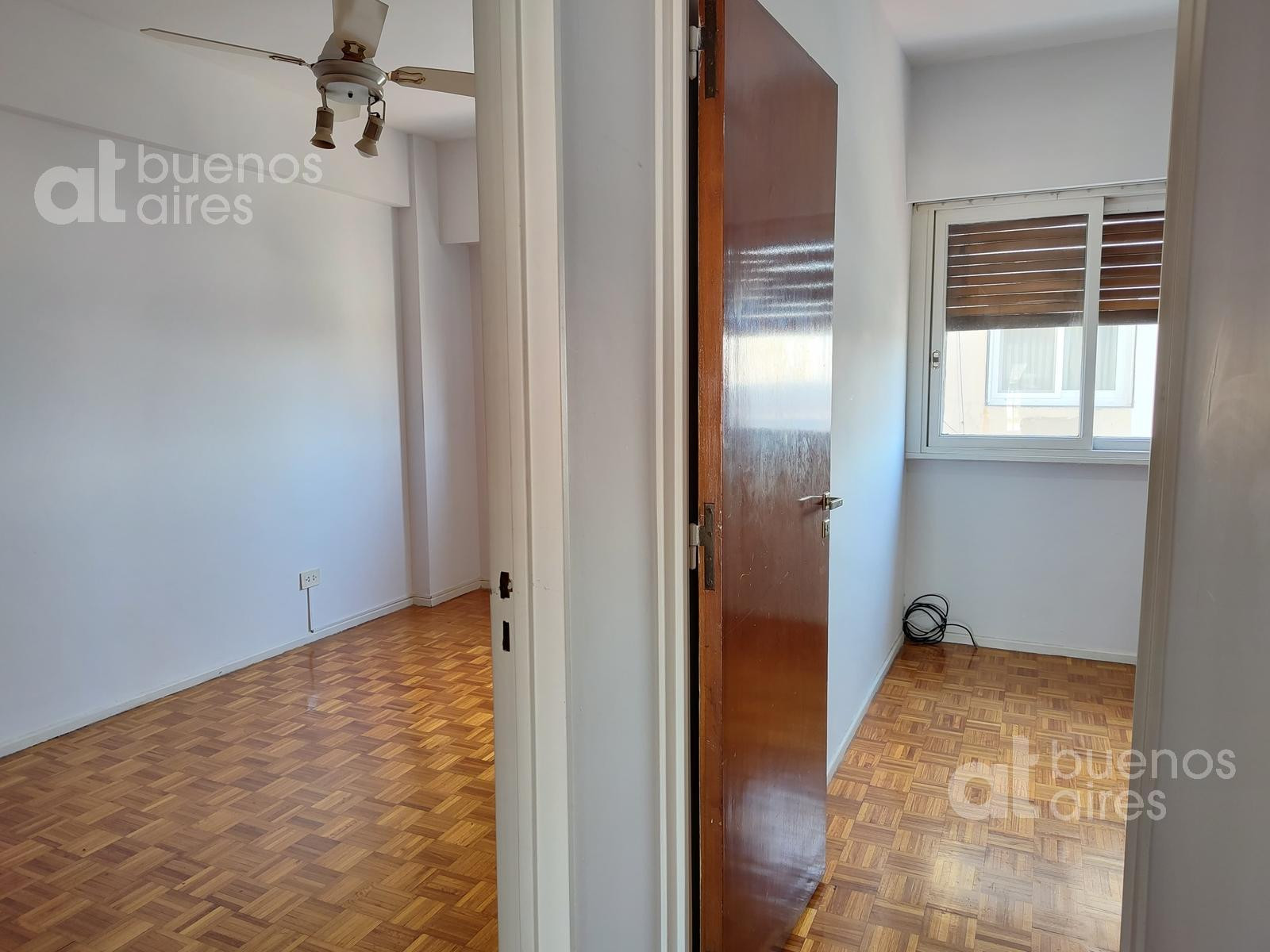 Apartamento de 3 ambientes com varanda em Palermo, disponível a partir de 04/04/2026. Inclui sala de jantar com piso de parquet e ar-condicionado, além de grande janela voltada para os fundos com varanda. Cozinha independente com forno a gás de 4 bocas, espaço para geladeira e área com instalação para máquina de lavar. Possui 2 dormitórios com armários embutidos; o dormitório principal tem ventilador de teto. Conta com 1 banheiro completo. O edifício tem água quente central e aquecimento central