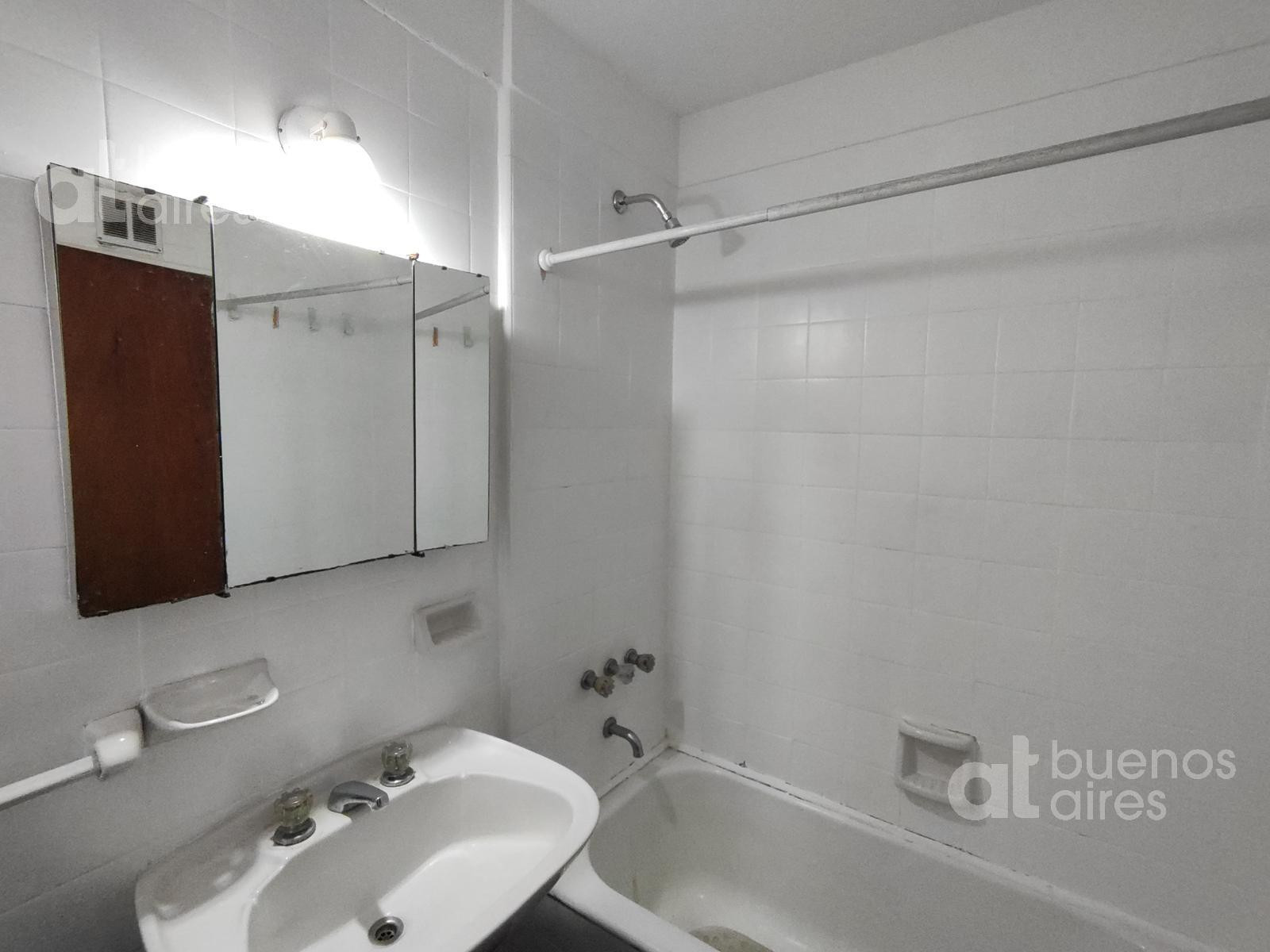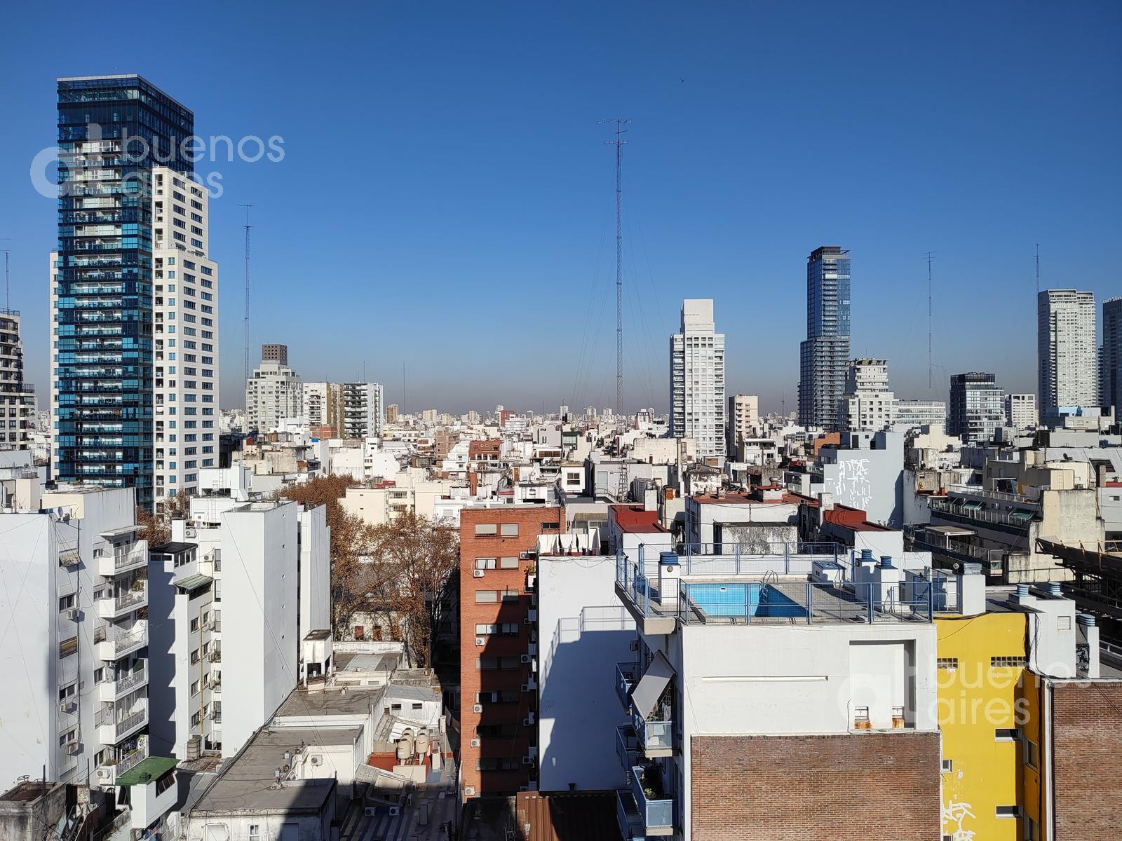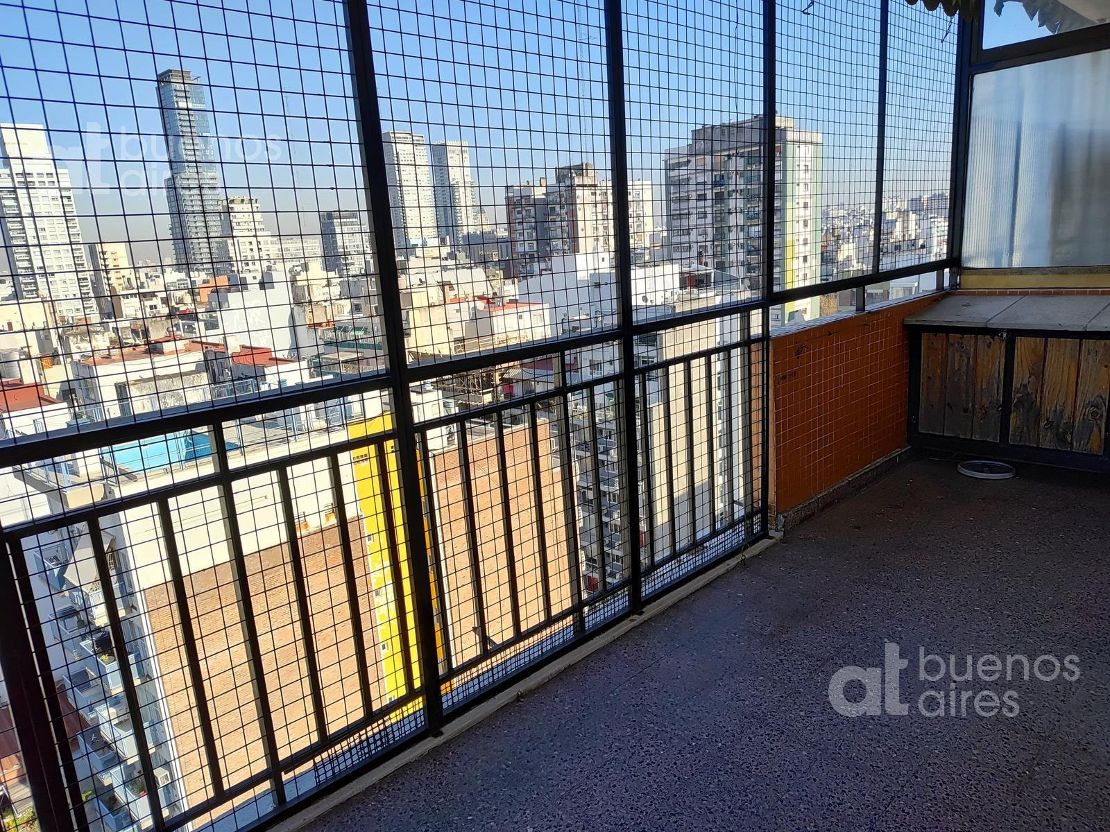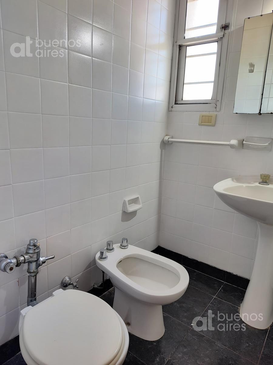 Apartamento de 3 ambientes com varanda em Palermo, disponível a partir de 04/04/2026. Inclui sala de jantar com piso de parquet e ar-condicionado, além de grande janela voltada para os fundos com varanda. Cozinha independente com forno a gás de 4 bocas, espaço para geladeira e área com instalação para máquina de lavar. Possui 2 dormitórios com armários embutidos; o dormitório principal tem ventilador de teto. Conta com 1 banheiro completo. O edifício tem água quente central e aquecimento central