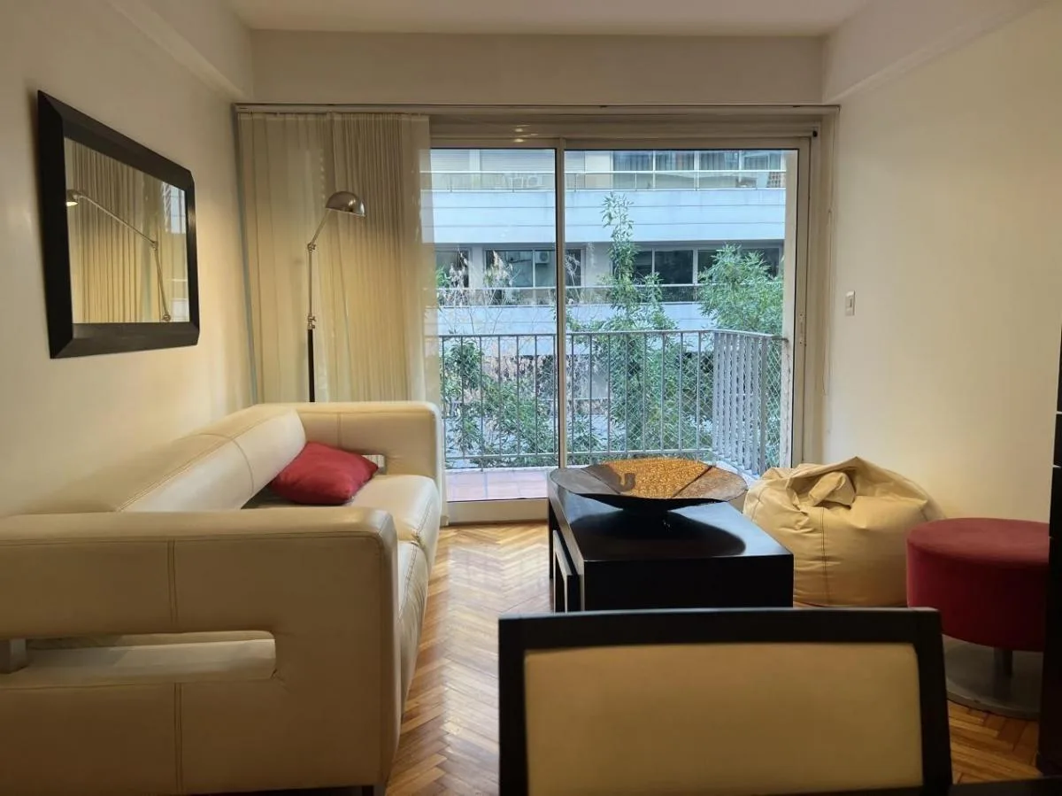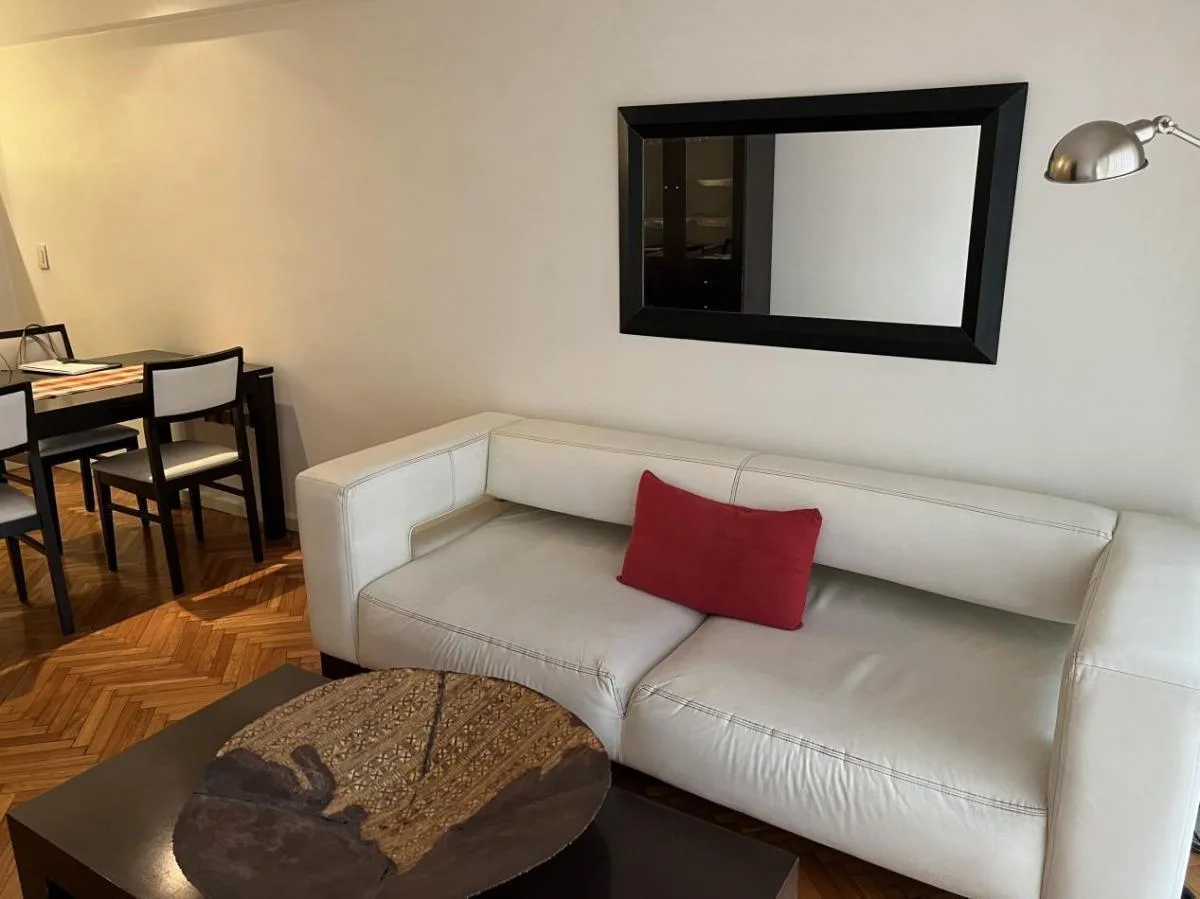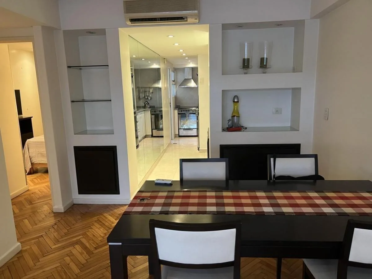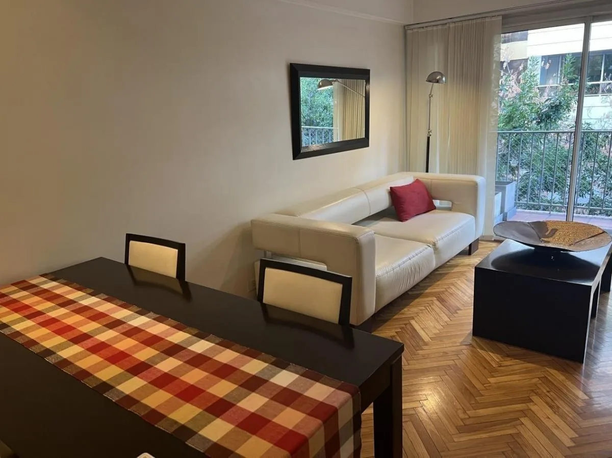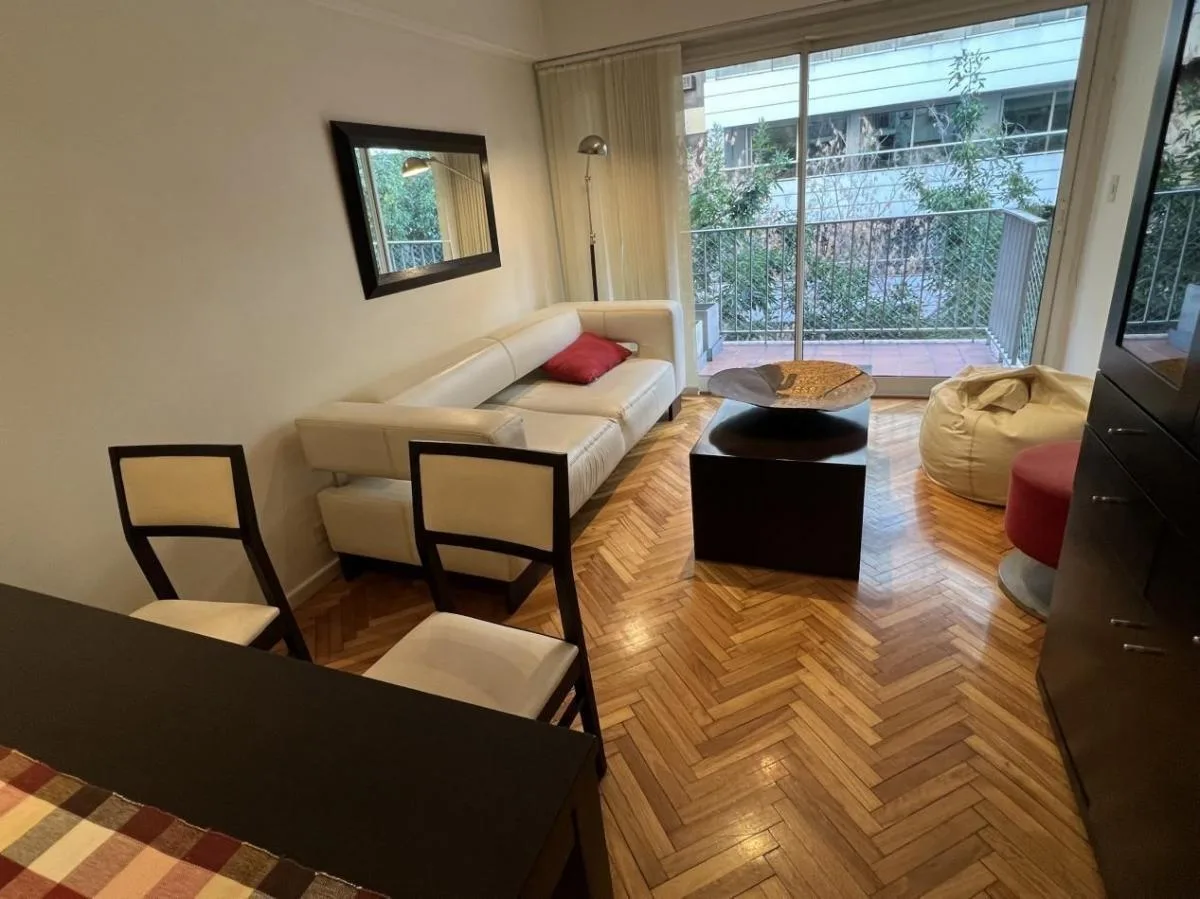 Apartamento de 3 ambientes com mobília e equipamentos completos em Palermo. Tem sala de jantar com acesso à varanda, cozinha em conceito aberto e área de serviço separada, 2 dormitórios e 1 banheiro completo. Conta com ar-condicionado frio e quente, e a locação pode ser feita por 6, 12 ou 24 meses, a partir de 18/4. O preço mensal de 1200 inclui cabo, Wi-Fi e ABL; o inquilino paga o condomínio (inclui água), gás e luz. Não são permitidos animais e a ocupação máxima é de 3 pessoas.