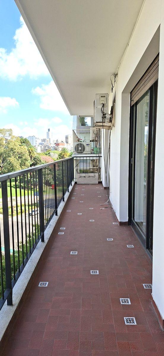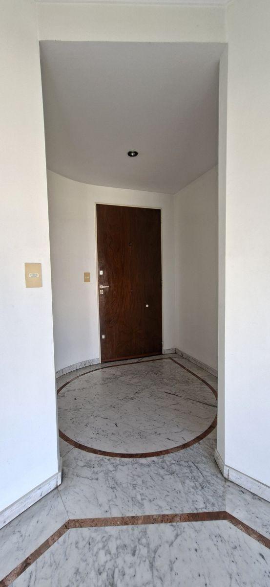 Apartamento de três ambientes com 82 m², no 7° andar, com varanda corrido de frente. São 2 dormitórios com armários, living-comedor e hall de entrada com armário. Há 1 banheiro completo e 1 lavabo, cozinha ampla com área para refeições e lavadero separado com tanque. Inclui ar-condicionado no dormitório principal, aquecedor elétrico de água novo, fogão a gás e calefação por laje radiante; há entrada principal e de serviço, e porteiro com moradia.