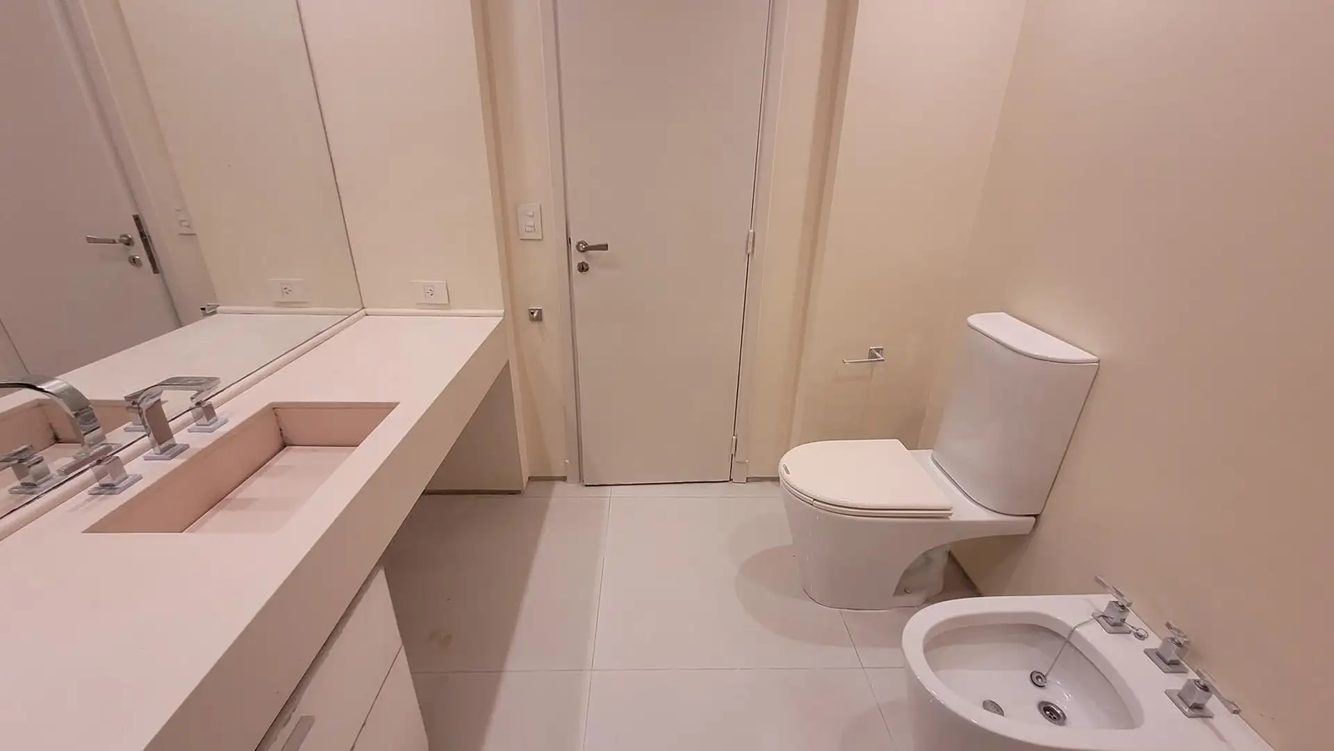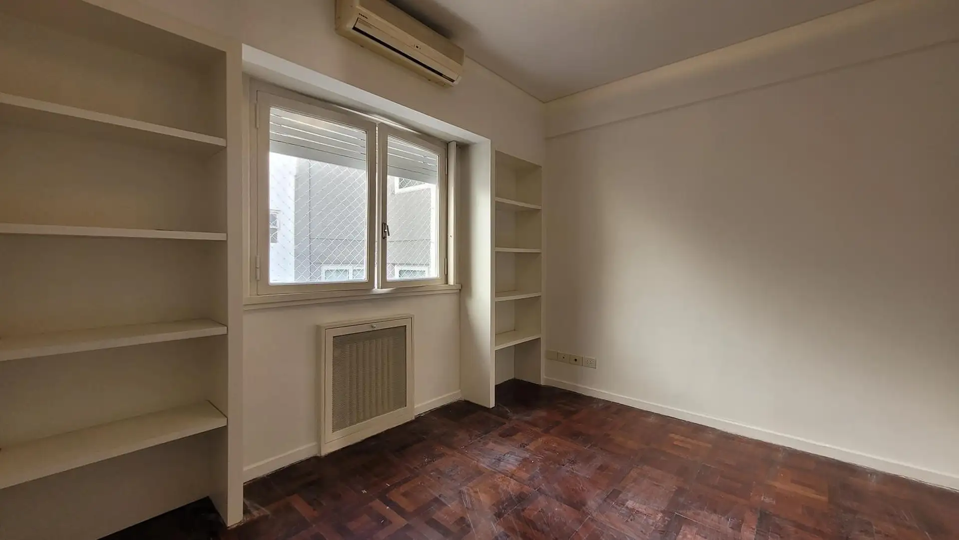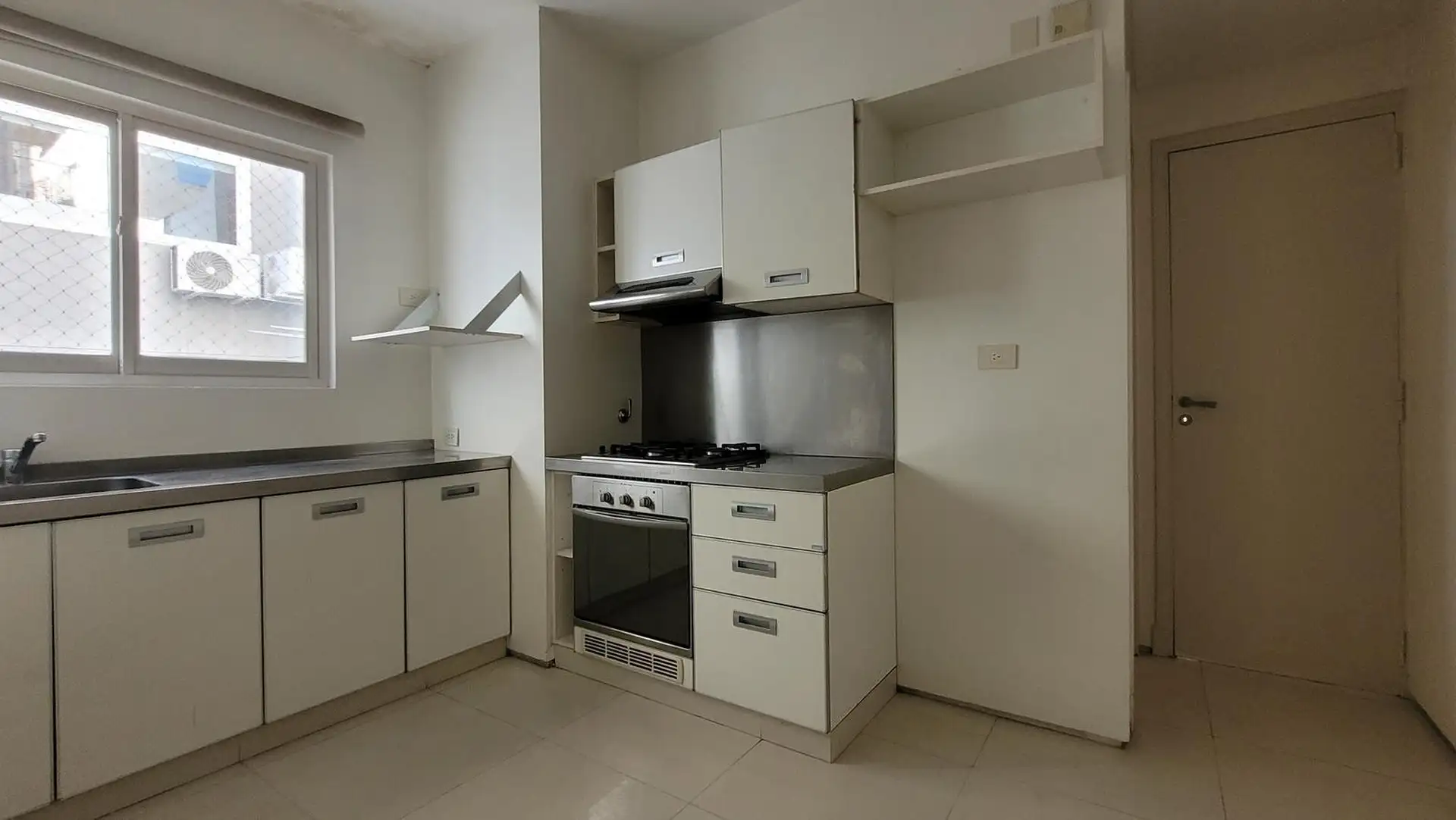 Apartamento de 3 ambientes (2 dormitórios) na Palermo, com vista aberta e orientação de fundos (contrafrente). Possui hall de entrada, sala de estar e jantar com saída para varanda corrida, hall íntimo/escritório, cozinha com anafe e forno elétrico Ariston, área de serviço e dependências de serviço com móveis de guarda. Conta com 1 banheiro completo e 1 lavabo, janelas com ar-condicionado frio/calor em todos os ambientes, aquecimento e água quente central, além de porta blindada. O contrato é de