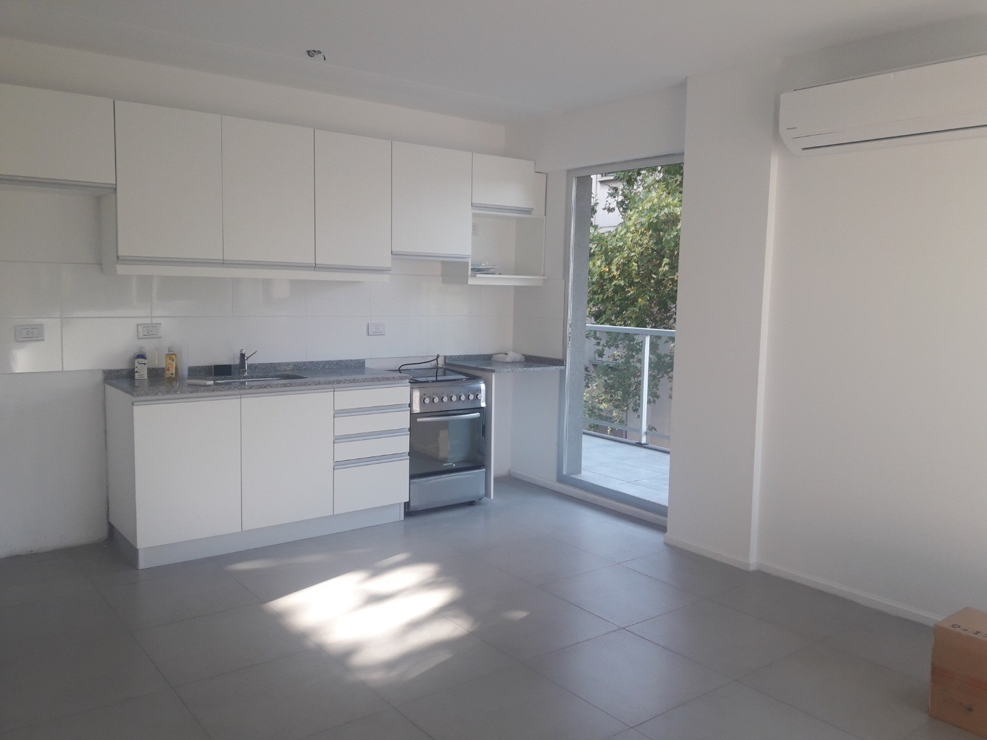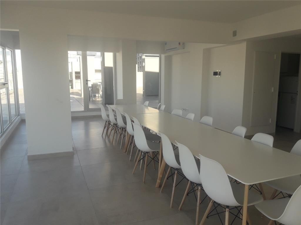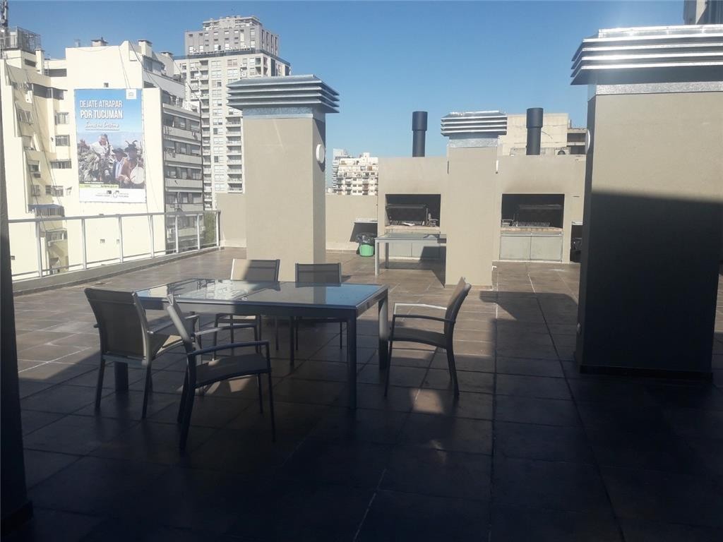 Apartamento de 3 ambientes em Palermo, com vista aberta. Unidade com 2 dormitórios, incluindo quarto principal em suíte. O prédio tem 9 andares, hall de recepção e oferece piscina com área de recreação, solarium, salão de festas, área de churrasco coberta e descoberta, academia e lavanderia. Água quente central e ar-condicionado split frio/calor. Piso de porcelanato. Há vigilância 24 horas e o condomínio inclui ABL e AySA.
