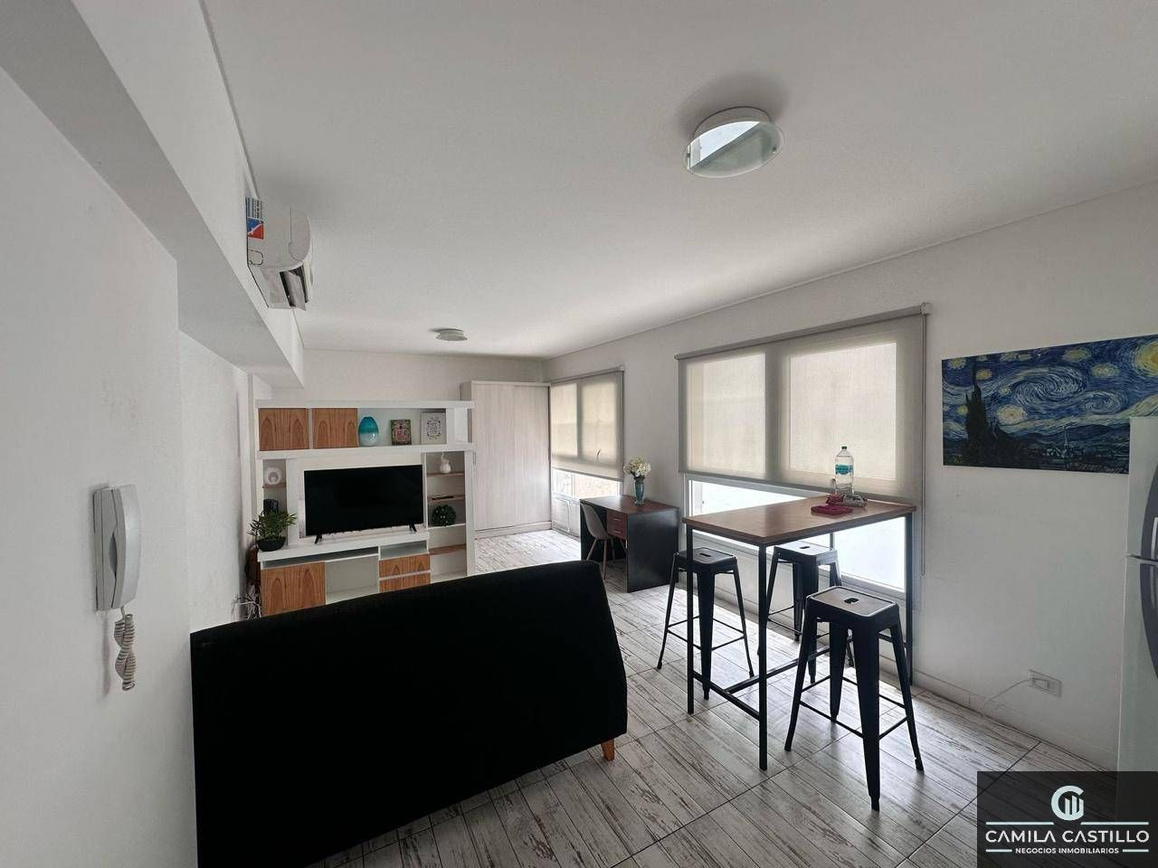 Kitnet mobiliada em Palermo, de frente para o Jardim Botânico, sobre Av. Santa Fe, com 30 m². Fica a cerca de meio quarteirão do Subte D, estação Scalabrini Ortiz. Inclui segurança 24 horas; condomínio (expensas) aprox. de $20.000 e luz aprox. de $20.000. Valor de aluguel: USD 750; disponível a partir de 15 de maio.