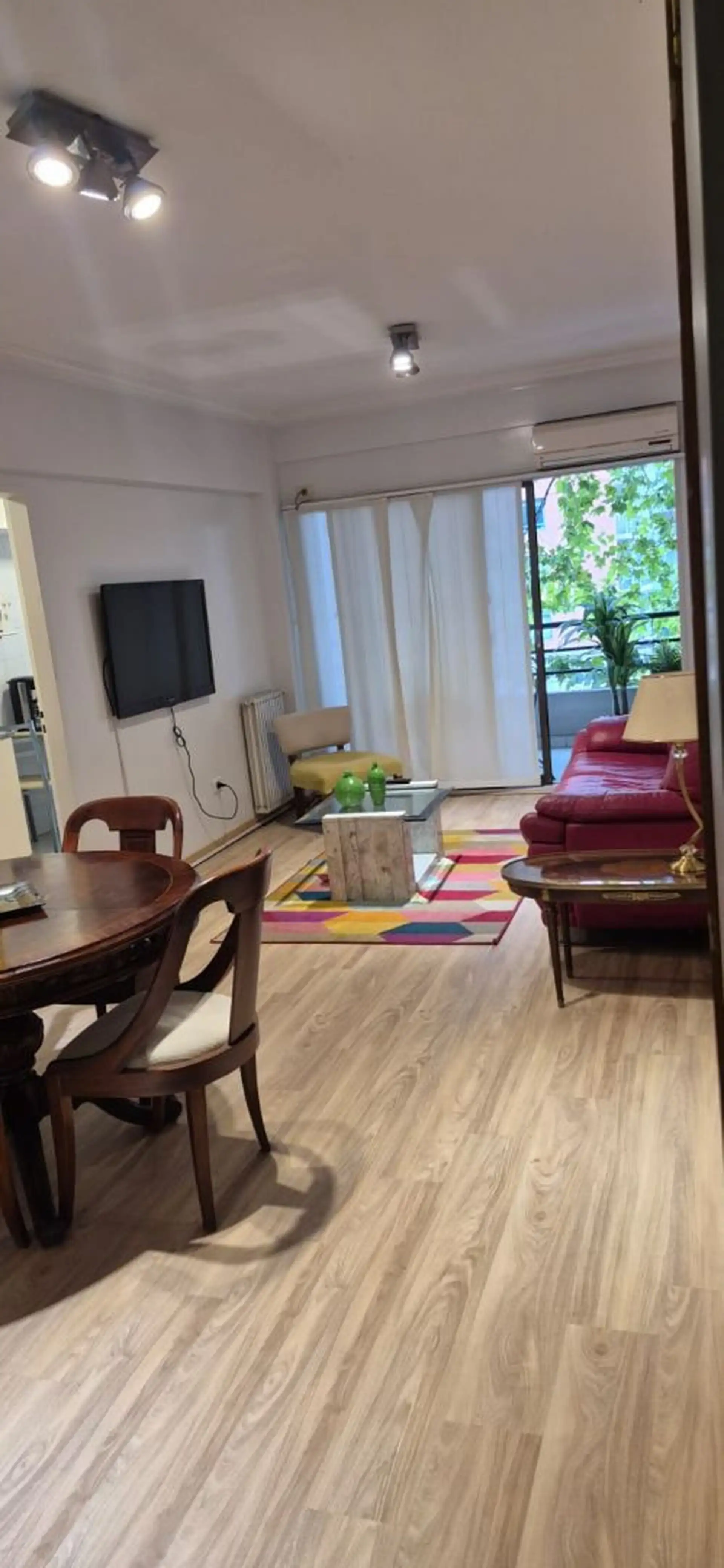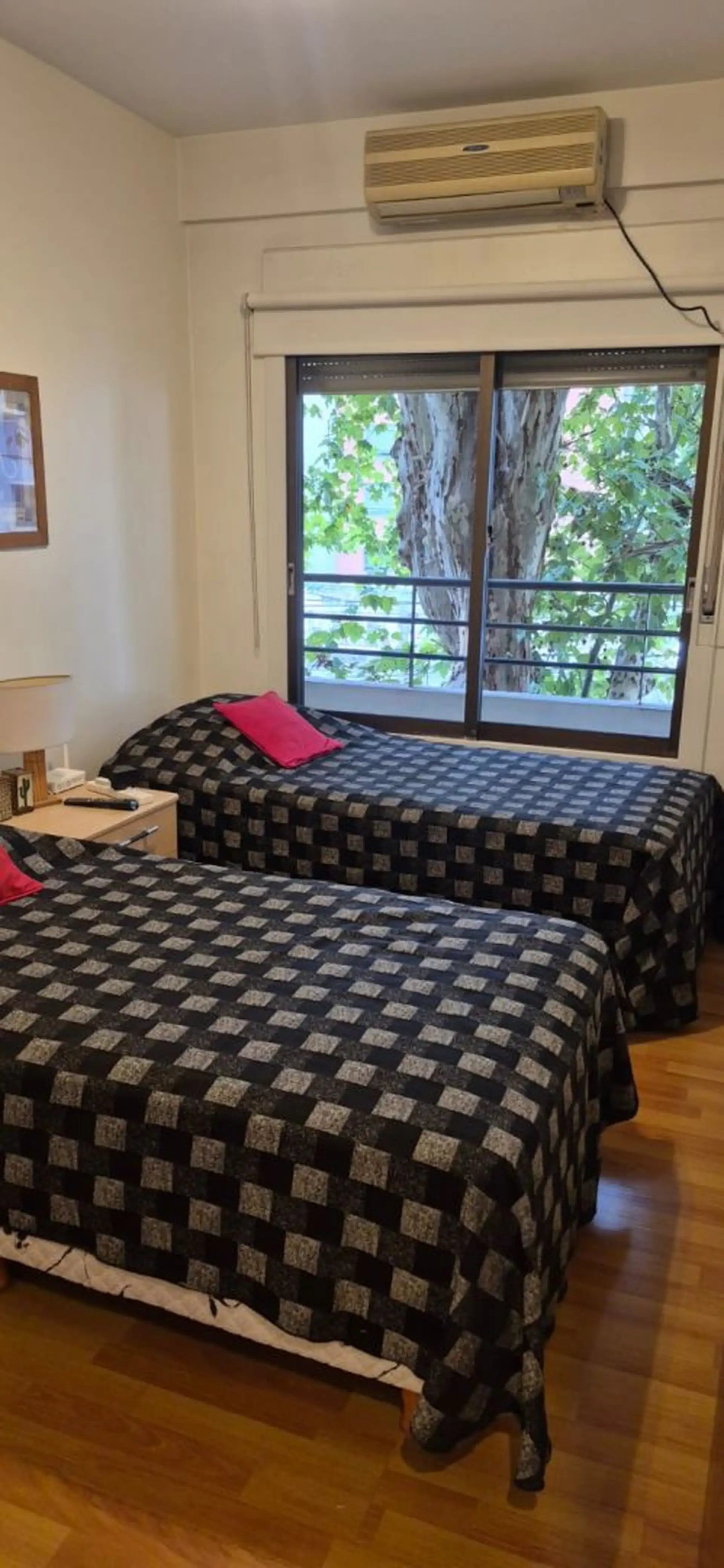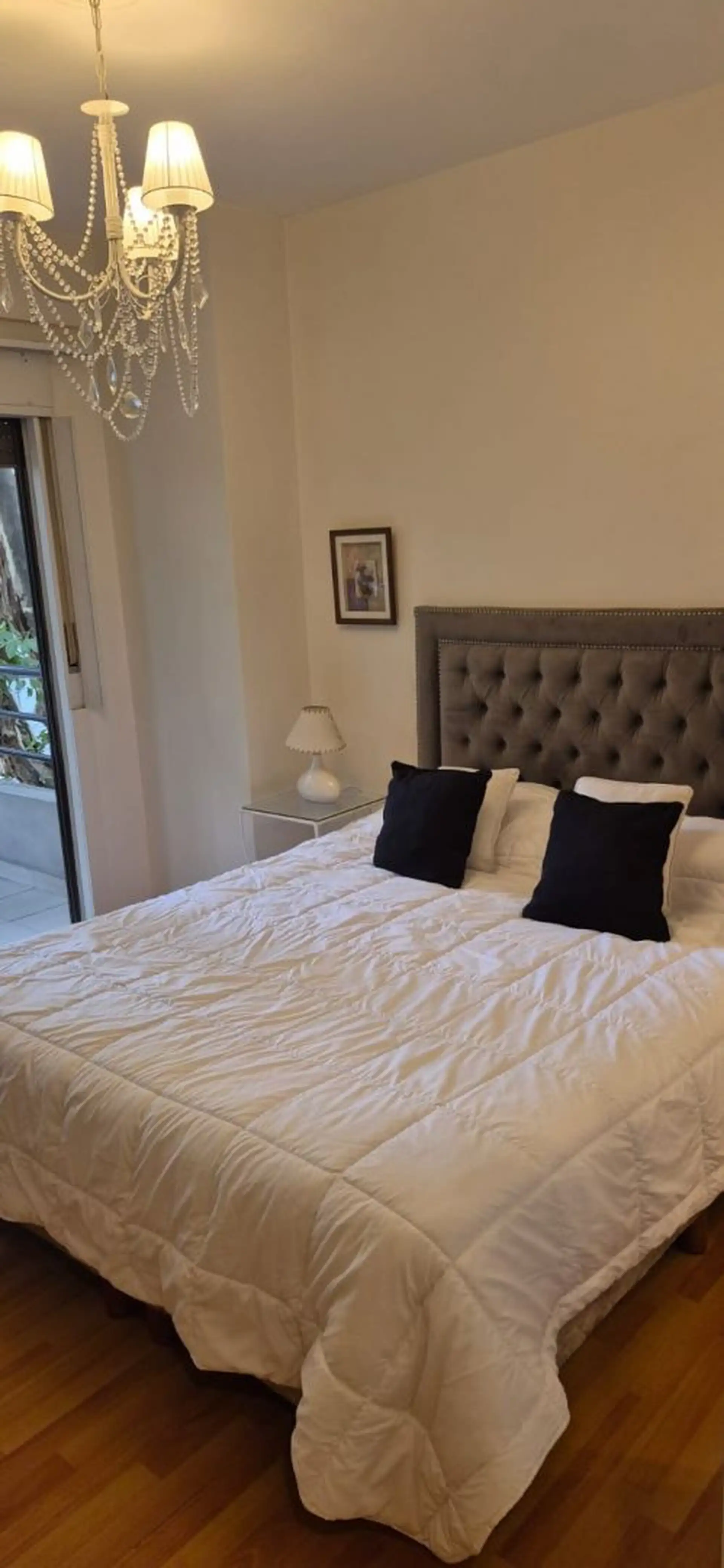 Apartamento de 3 ambientes com 90 m² em Palermo, em prédio a cerca de 300 metros de Lagos de Palermo e 200 metros da Embaixada dos EUA. A unidade fica no 1º ou no 2º andar e inclui living com sala de jantar, 2 dormitórios (1 suíte com closet), 2 banheiros, cozinha, lavanderia e sala de jantar diária, além de varanda-terraço de 11 m² e 1 vaga de garagem (cochera). O imóvel é mobiliado e equipado com roupa de cama e toalhas, louças para 4 pessoas, lava-roupas, micro-ondas, geladeira com congelador