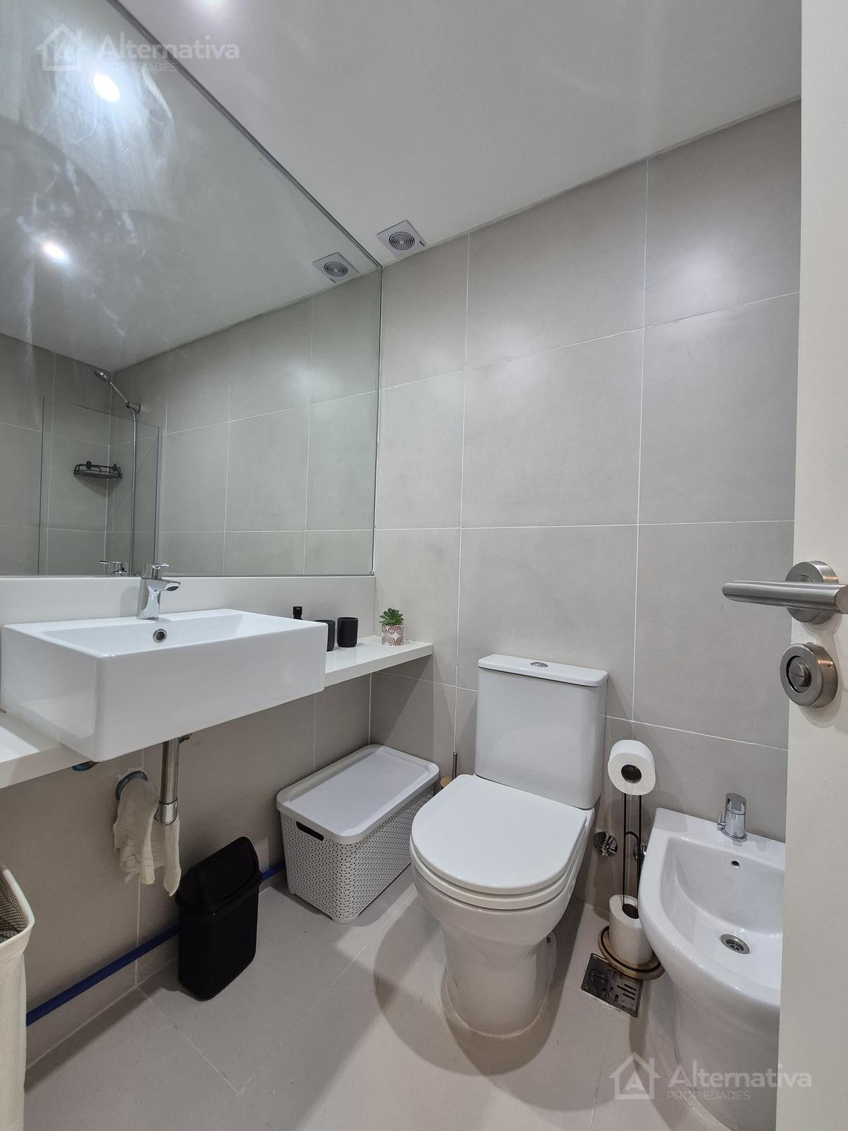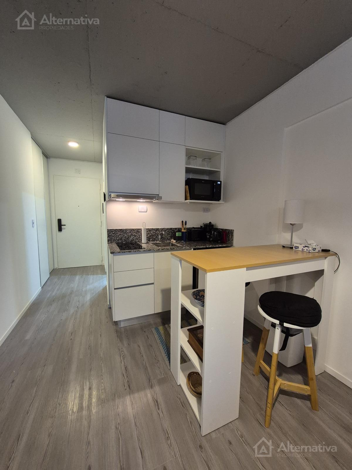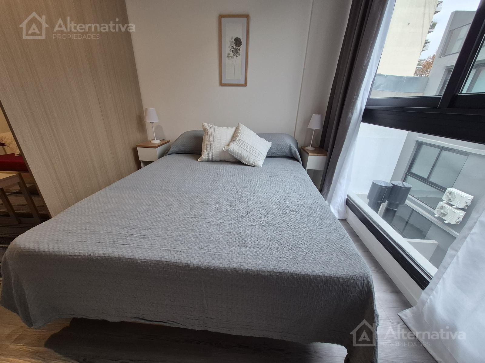 Apartamento mobiliado em Palermo, com 2 quartos, ambiente com janela voltada para os fundos (contrafrente). Inclui ar-condicionado frio/calor, cozinha integrada equipada, banheiro completo com banheira e fechadura eletrônica. O pacote do aluguel inclui condomínio e internet; a luz tem limite de consumo. O prédio tem piscina com solário, área de saúde, salão de festas (SUM) equipado, área de churrasco na cobertura, lavanderia e espaço para bicicletas, além de segurança e controle de acesso. Entre