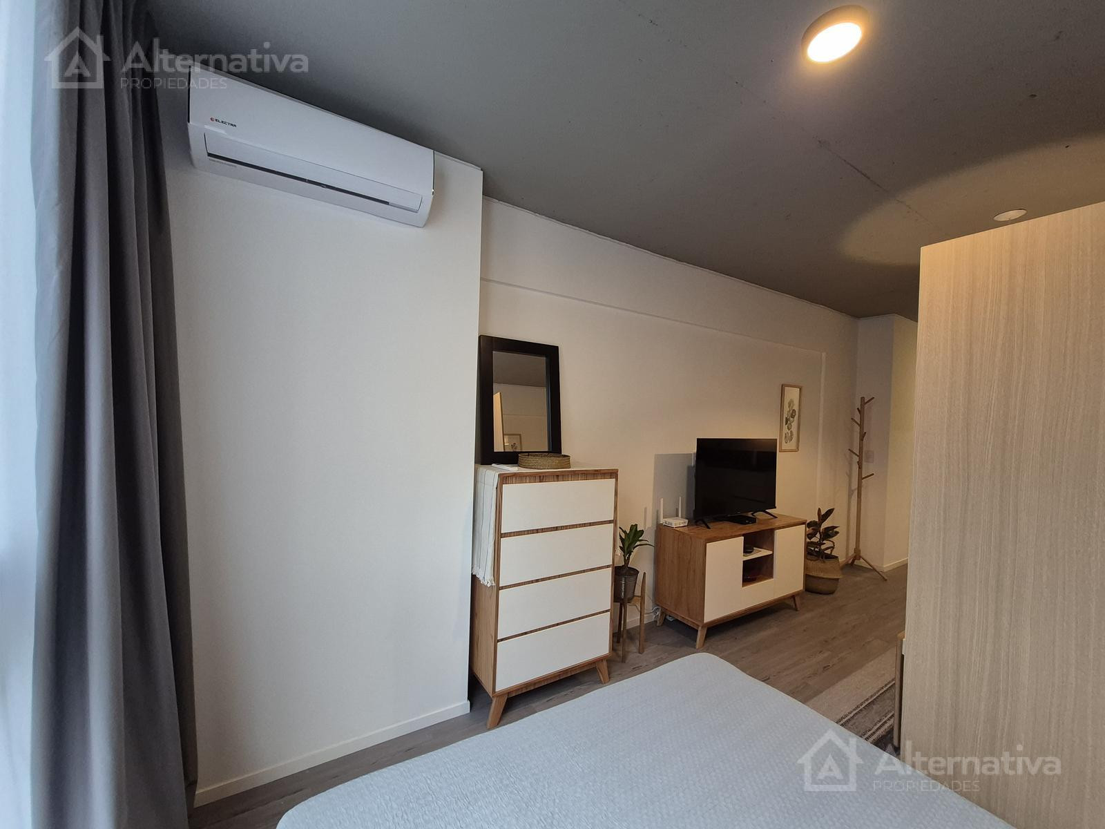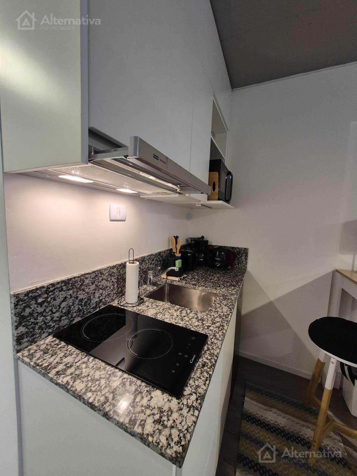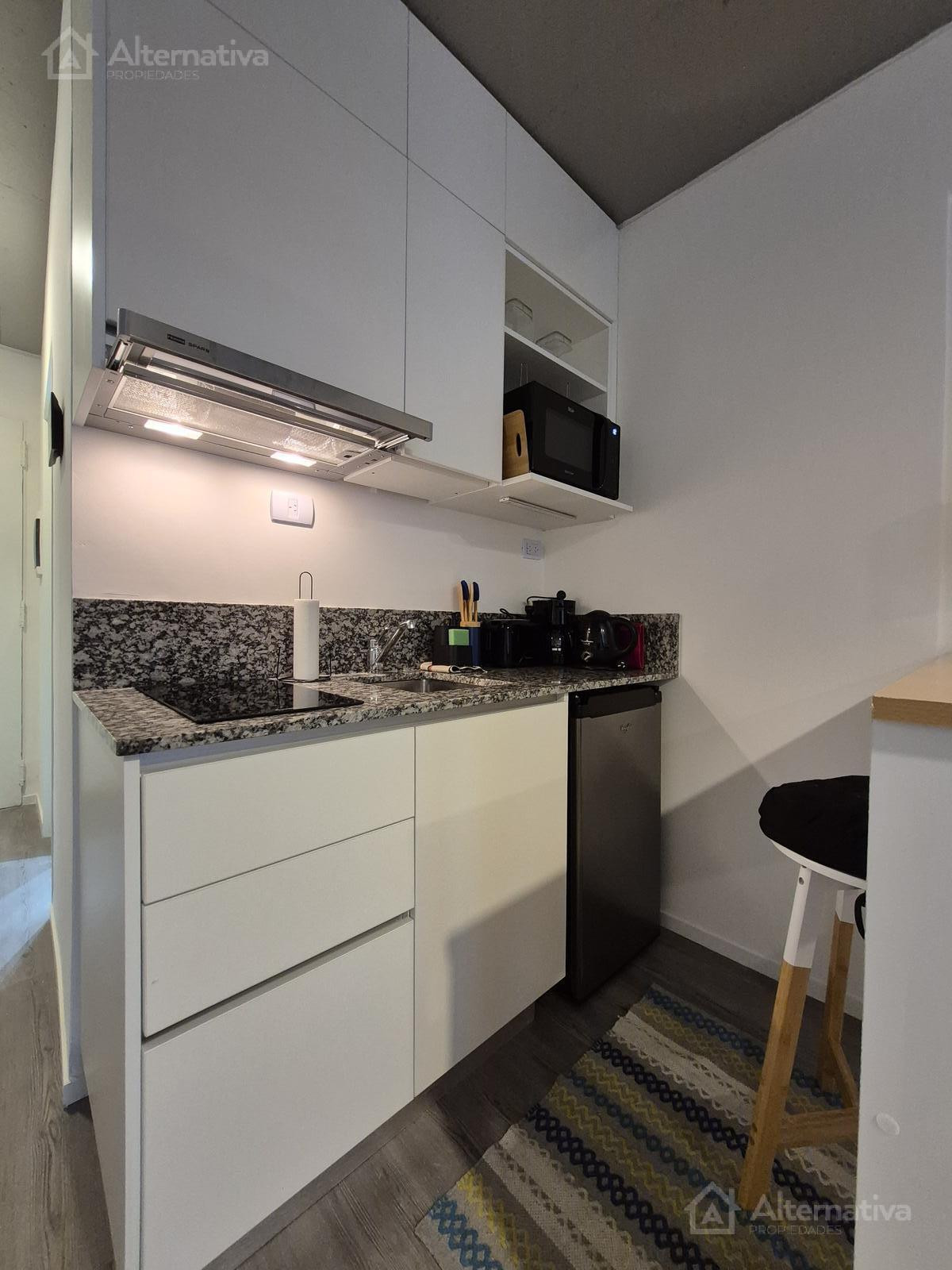 Apartamento mobiliado em Palermo, com 2 quartos, ambiente com janela voltada para os fundos (contrafrente). Inclui ar-condicionado frio/calor, cozinha integrada equipada, banheiro completo com banheira e fechadura eletrônica. O pacote do aluguel inclui condomínio e internet; a luz tem limite de consumo. O prédio tem piscina com solário, área de saúde, salão de festas (SUM) equipado, área de churrasco na cobertura, lavanderia e espaço para bicicletas, além de segurança e controle de acesso. Entre