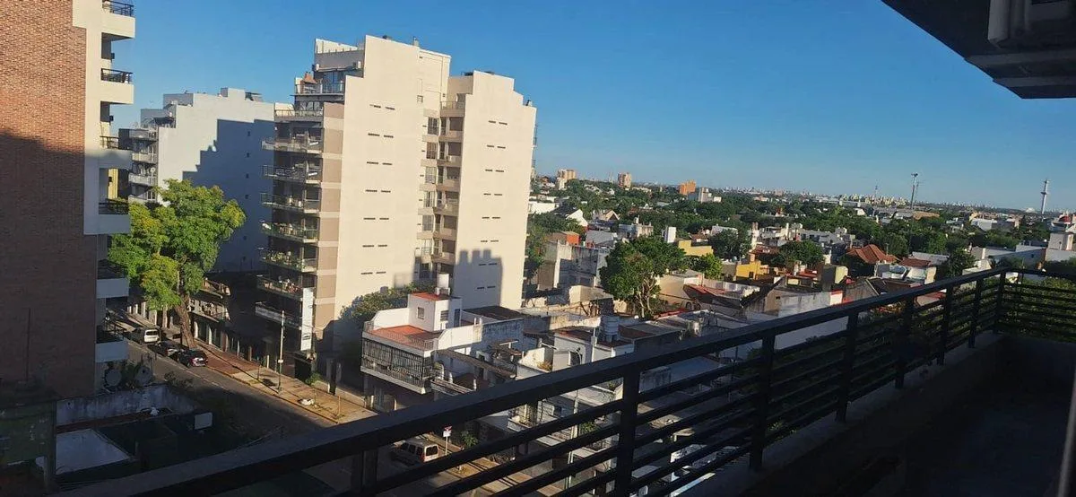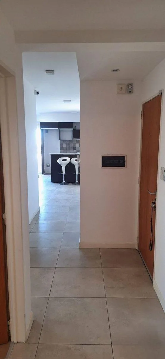 Apartamento de 3 ambientes com 59 m², no 7º andar, de frente para a rua, com balcão corrido de 8x1 metros. São 2 quartos e 1 banheiro completo. Conta com ar-condicionado split no living e no quarto principal, cortinas black out e sun screen, rack para TV de 50" com gavetas, coifa/exaustor na cozinha e aquecedor/termoelétrico, além de fogão a gás de tiro balanceado no living e forno a gás na cozinha. O condomínio tem lavanderia comunitária no último piso; o prédio foi construído em 2013 e conta c