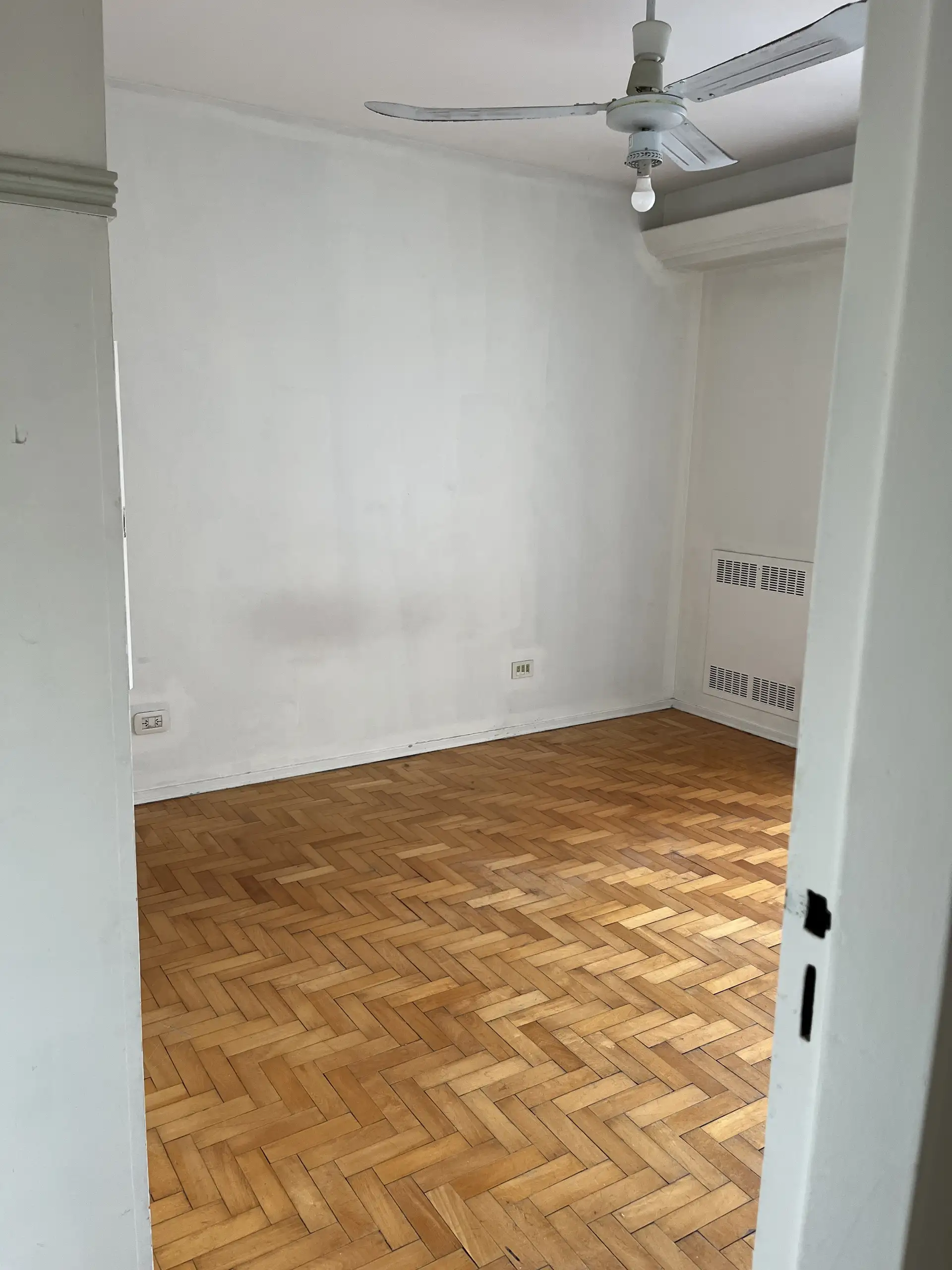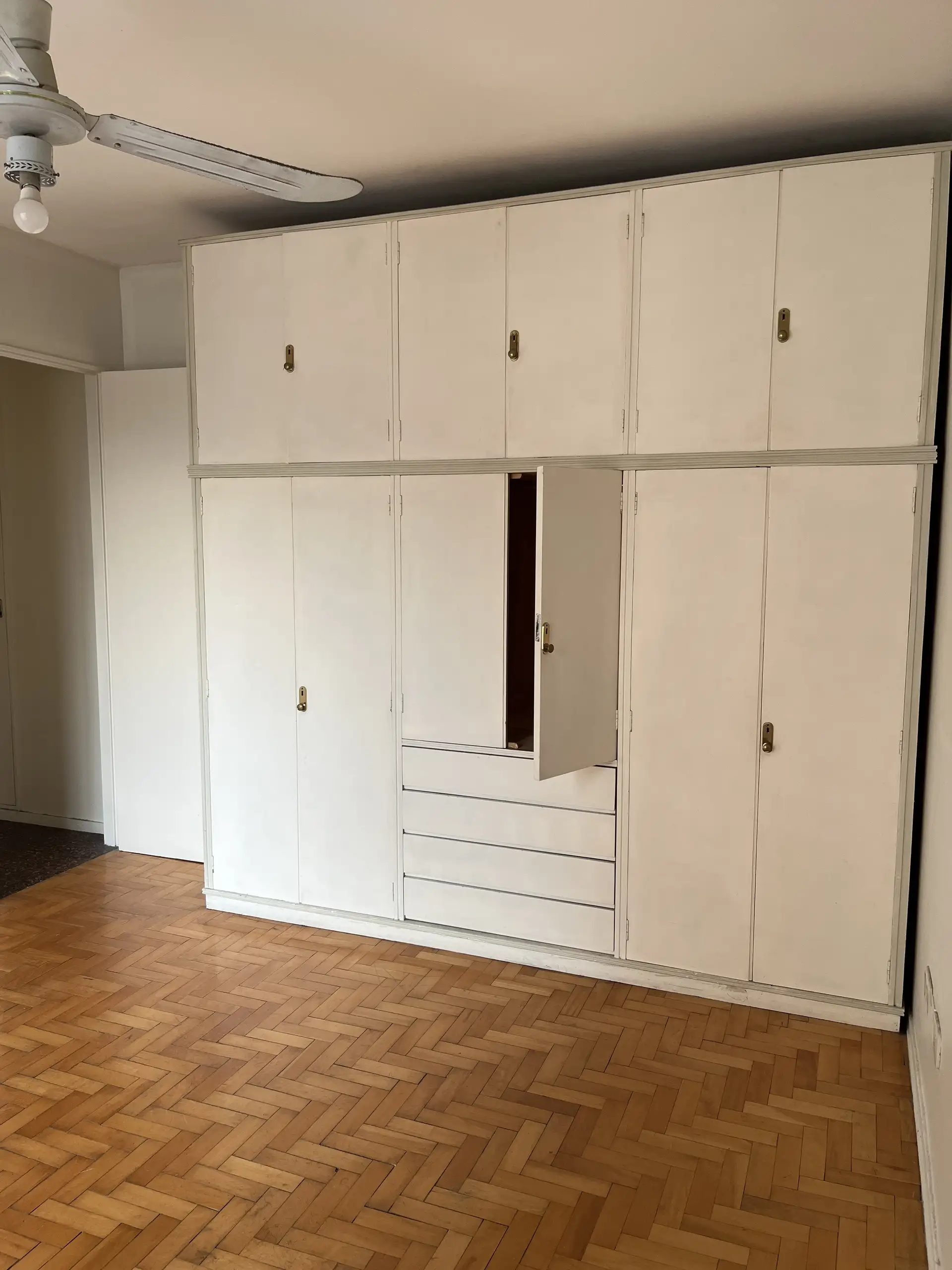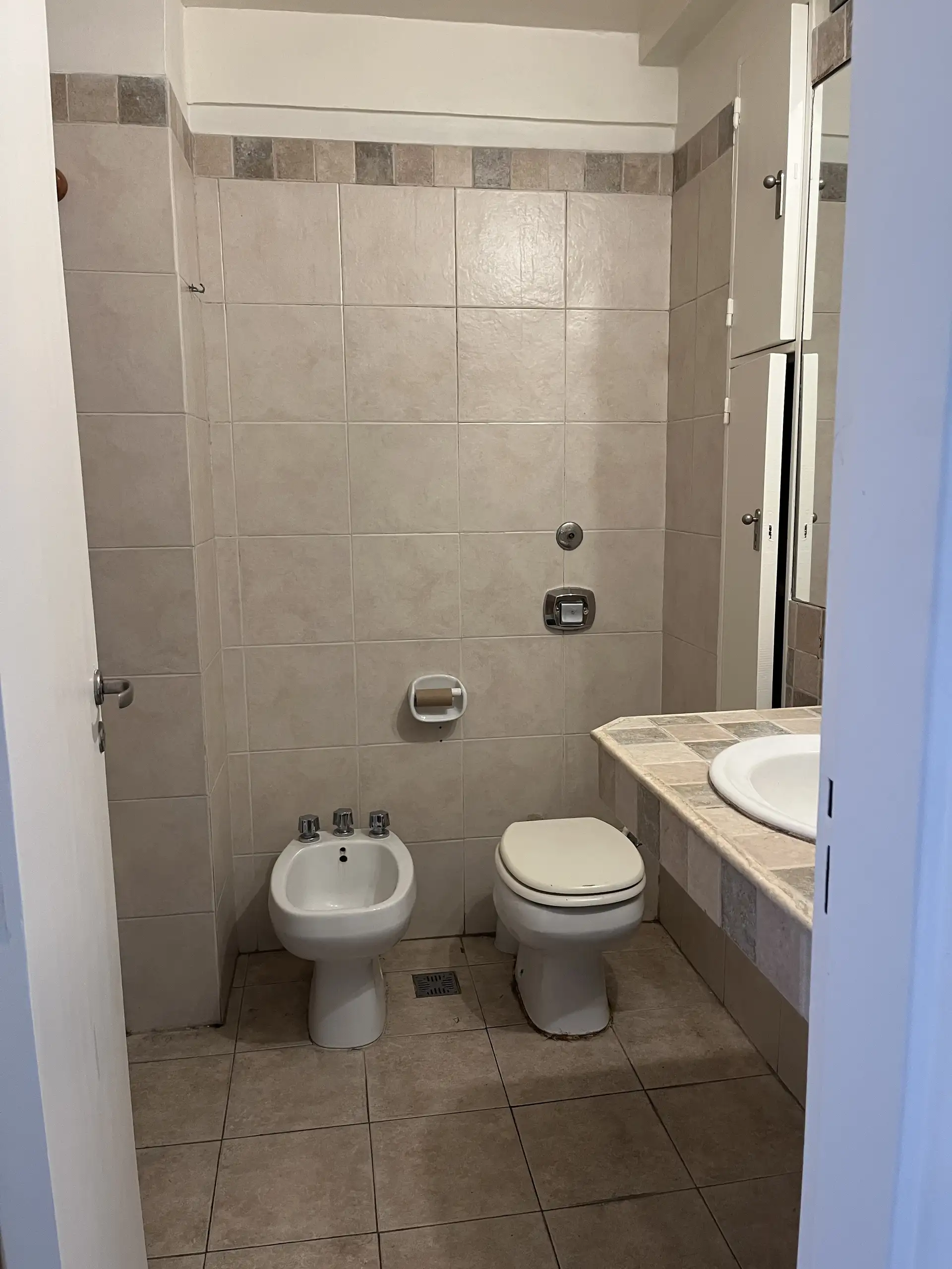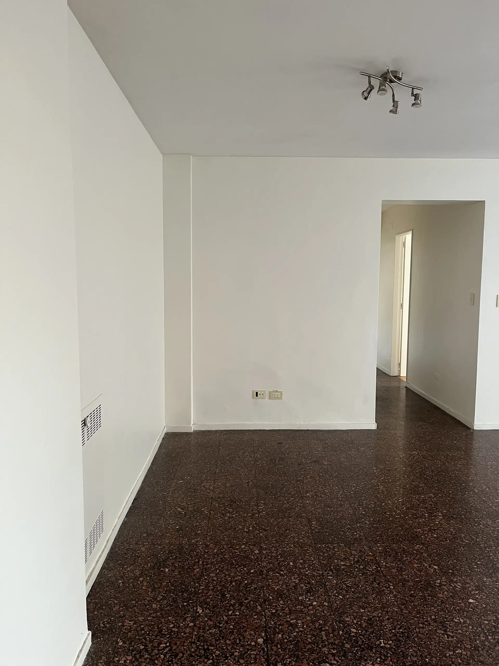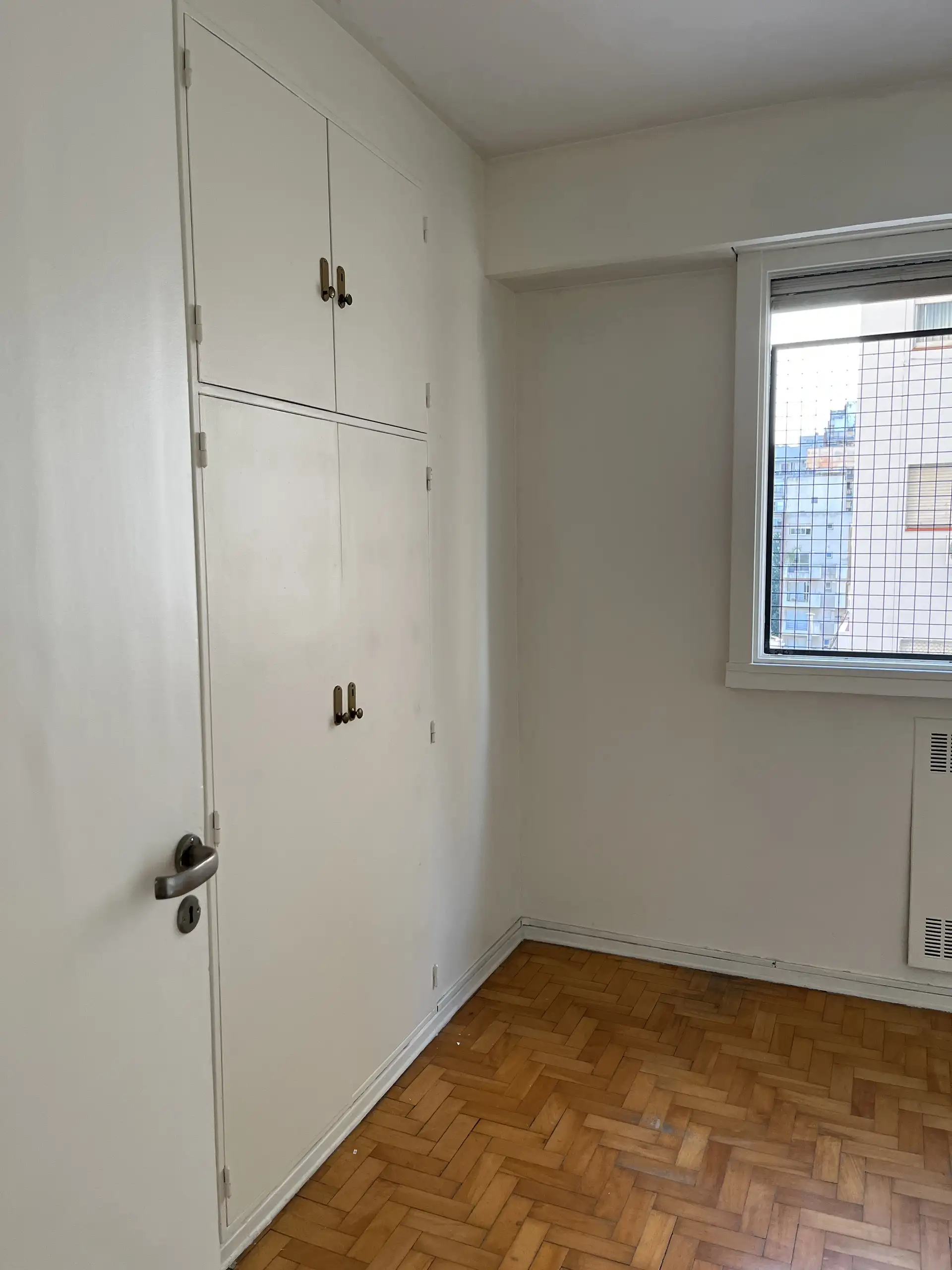 Apartamento no 7º andar com 75 m², orientação lateral e iluminação durante o dia. Conta com segurança 24 horas, 4 elevadores e rampas de acesso. Possui hall de entrada com armário embutido, cozinha de 6 x 2 com área de serviço integrada, sala de jantar e estar de 7 x 4,5 com varanda contínua estreita, dois quartos com armários embutidos (um deles com janela) e banheiro completo com banheira. Há um depósito (baulera) de 3 x 1,5 x 3. O aluguel mensal é de $750.000, com contrato de 24 meses e reaju