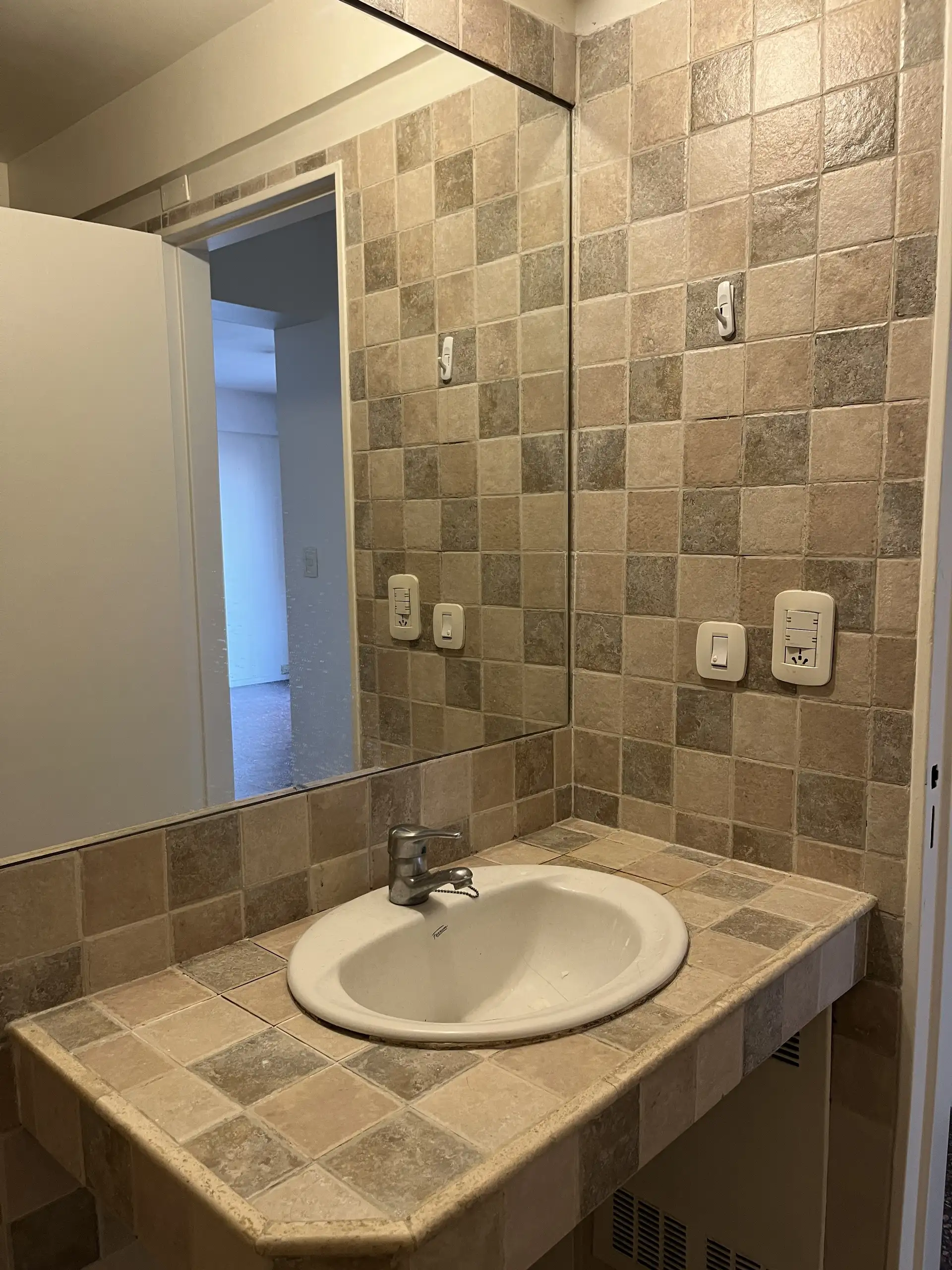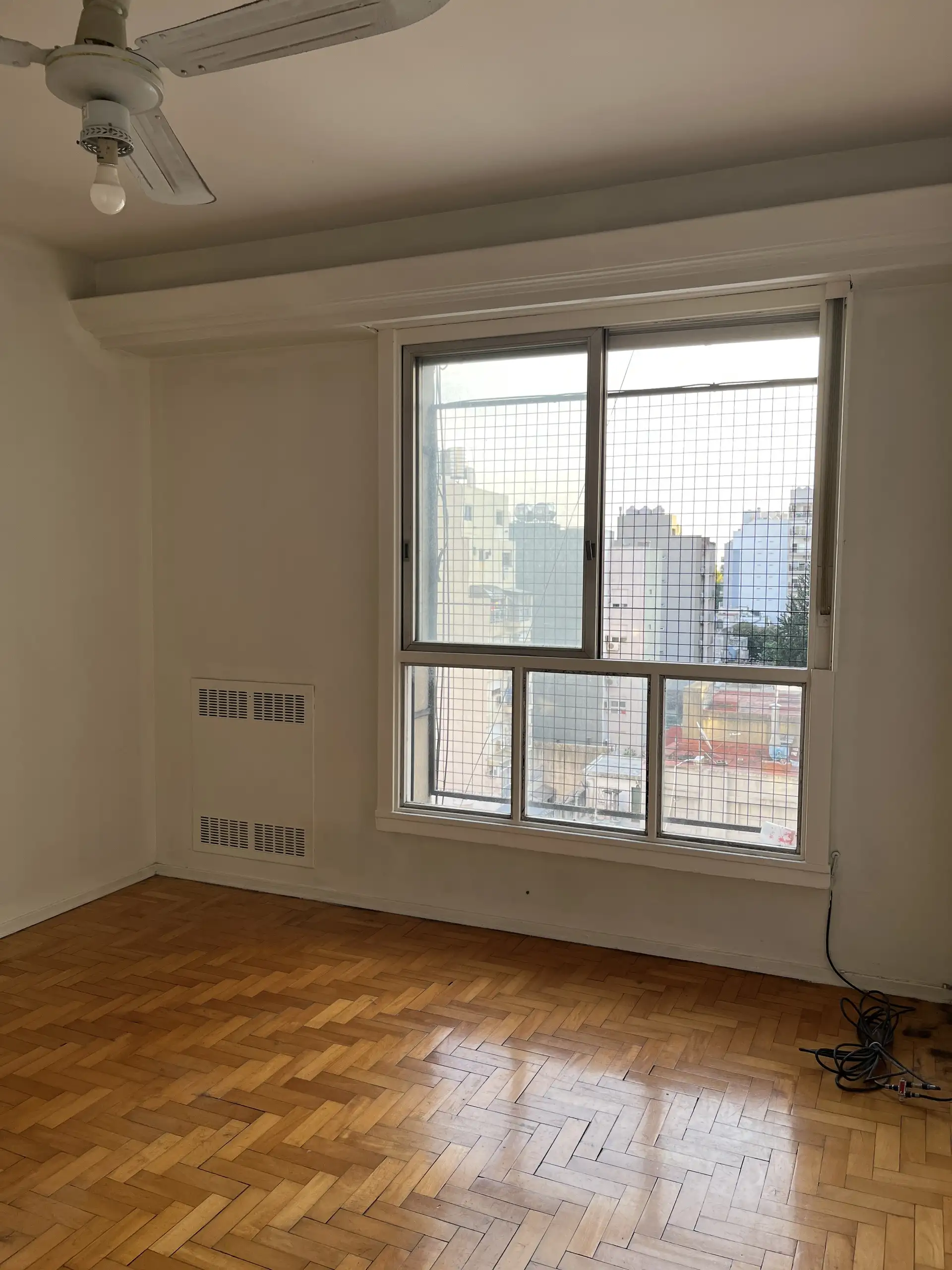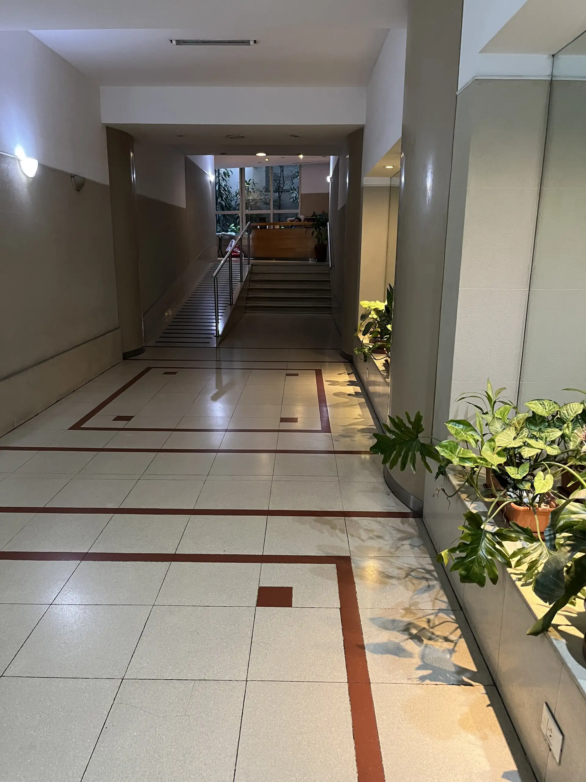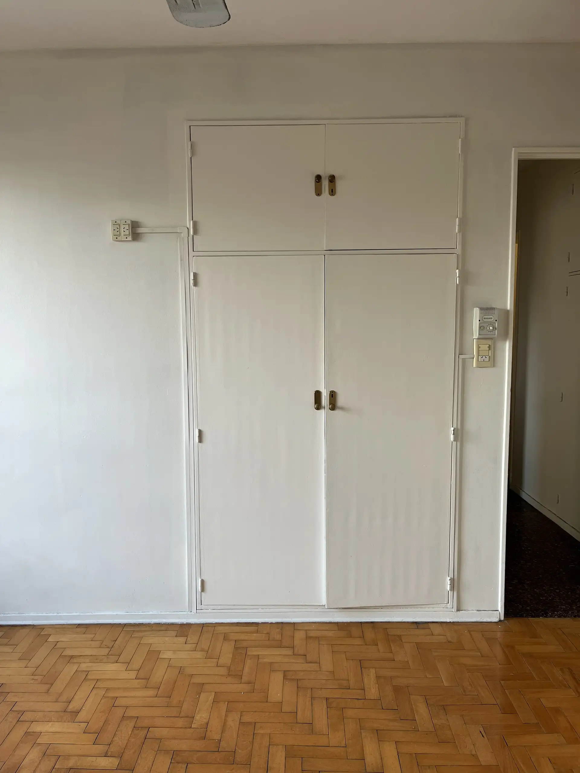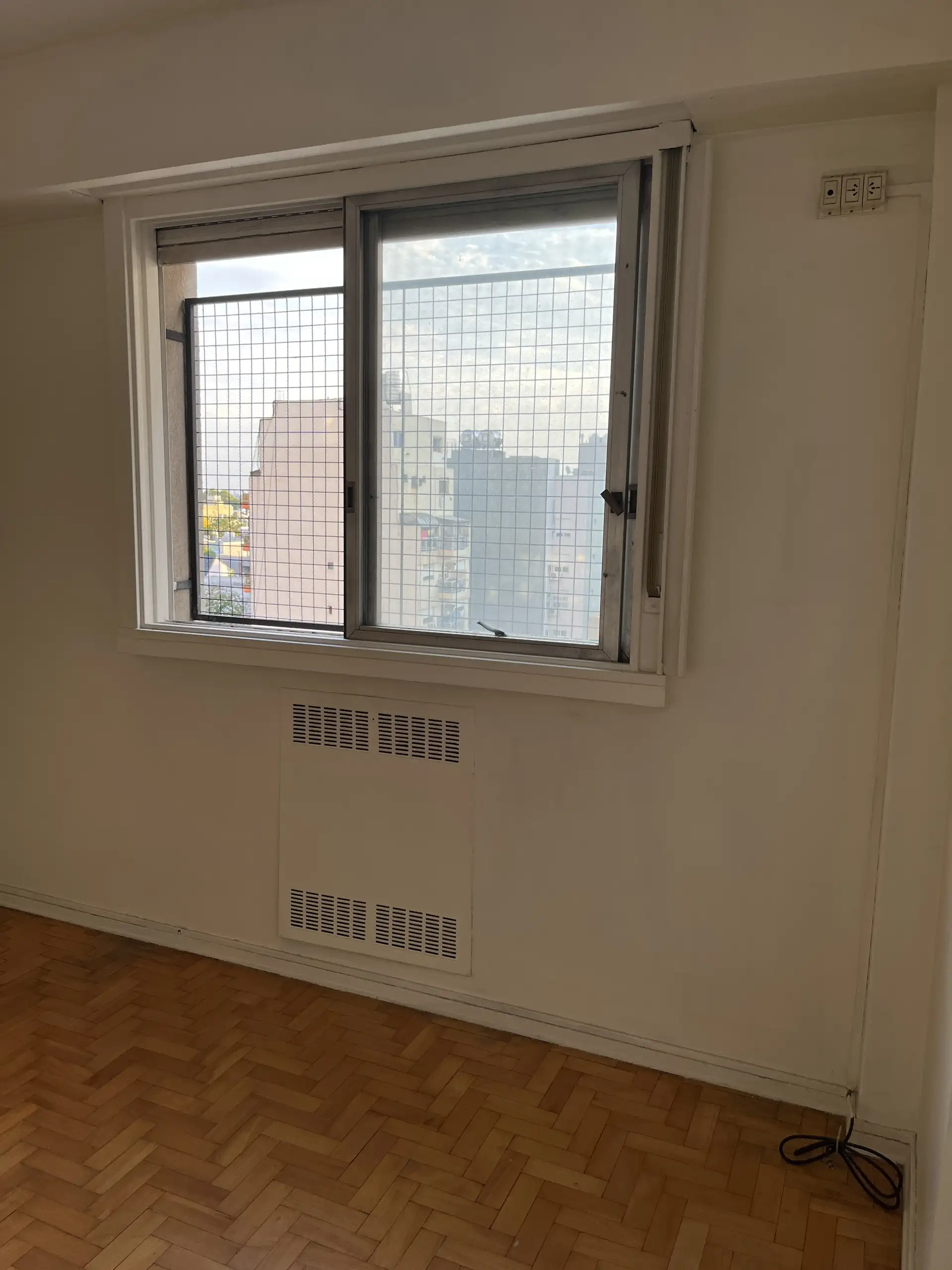 Apartamento no 7º andar com 75 m², orientação lateral e iluminação durante o dia. Conta com segurança 24 horas, 4 elevadores e rampas de acesso. Possui hall de entrada com armário embutido, cozinha de 6 x 2 com área de serviço integrada, sala de jantar e estar de 7 x 4,5 com varanda contínua estreita, dois quartos com armários embutidos (um deles com janela) e banheiro completo com banheira. Há um depósito (baulera) de 3 x 1,5 x 3. O aluguel mensal é de $750.000, com contrato de 24 meses e reaju