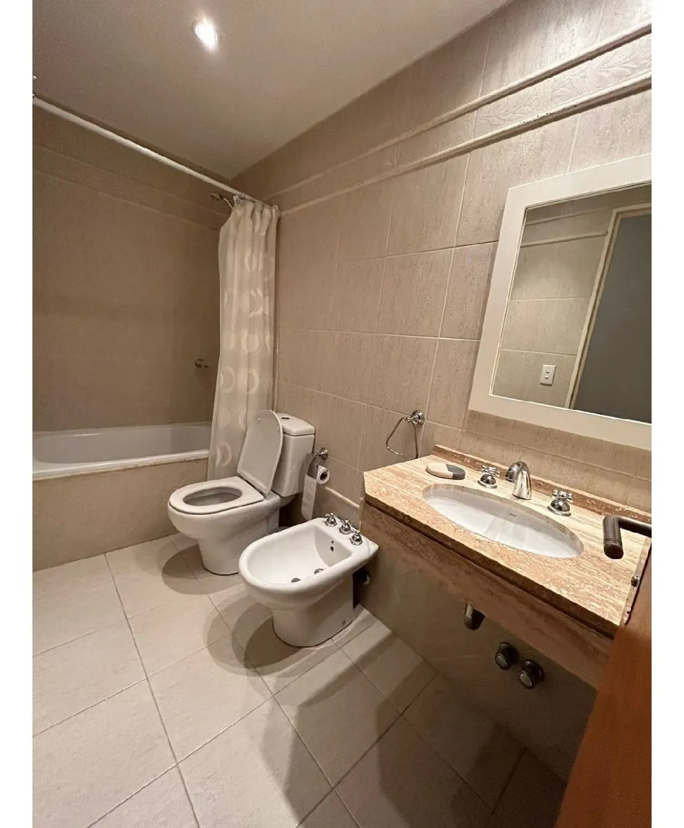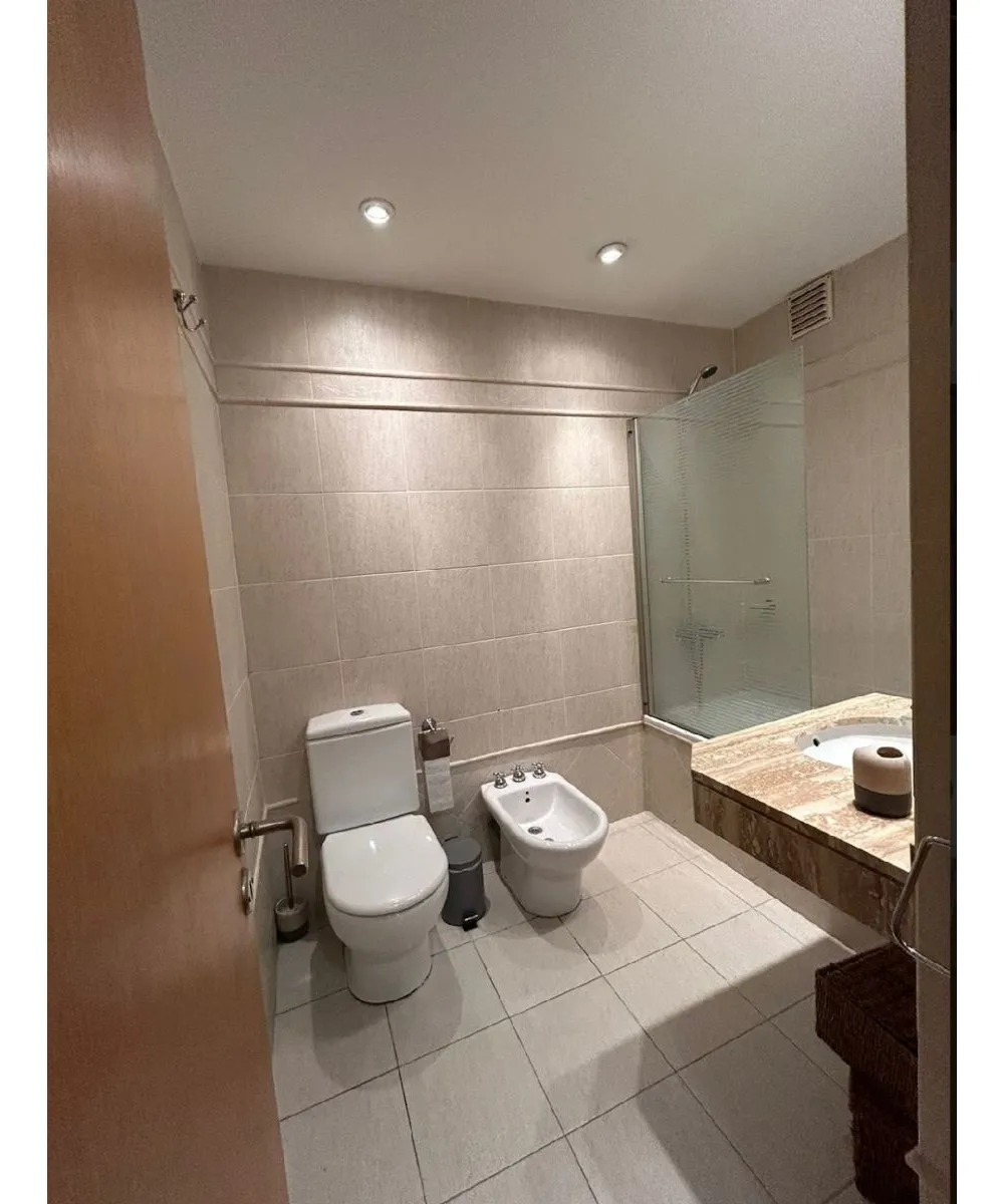 Apartamento de 3 ambientes em Puerto Madero, com 2 dormitórios, suíte e closet. Conta com 2 banheiros completos, cozinha completa com área de refeições diárias, living e sala de jantar com saída para varanda corrida, aquecimento individual e ar-condicionado individual. O prédio oferece piscina, solário, salão de festas (SUM), academia, lavanderia e segurança 24 horas.
