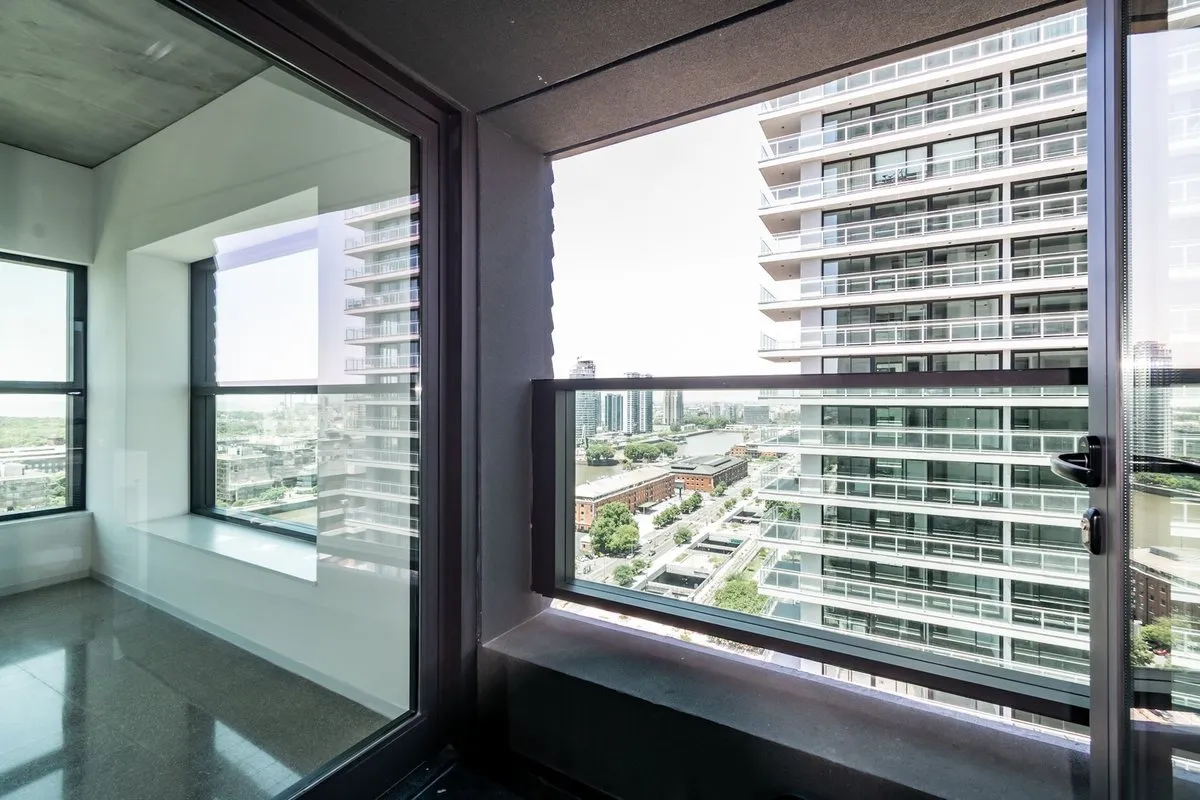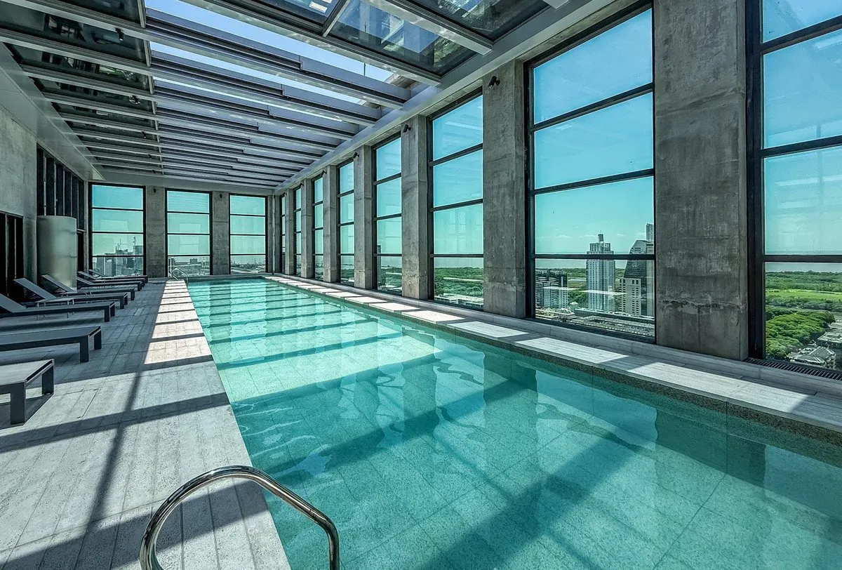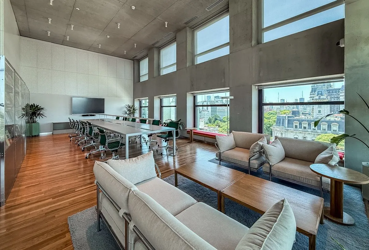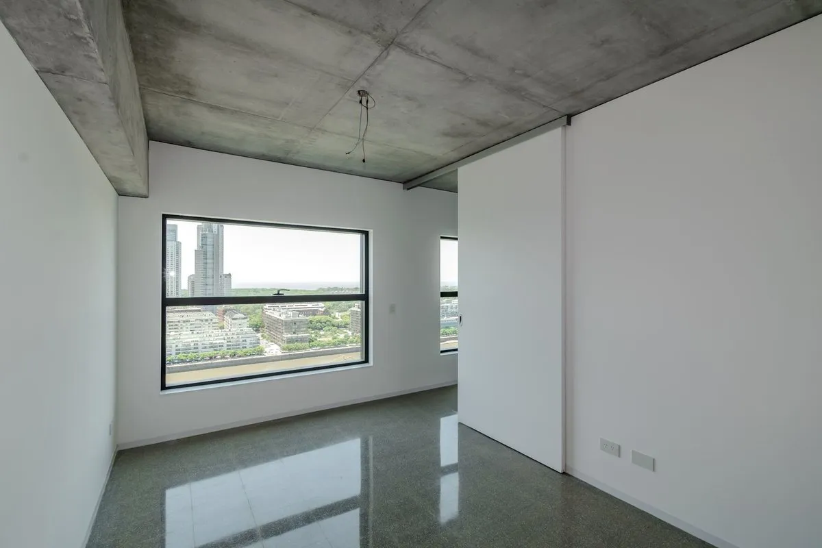 Apartamento de 3 ambientes em Puerto Madero, no 21º andar, em esquina, com vista para o rio. Sala de estar e jantar com acesso a varanda contínua. Cozinha integrada com ilha para café da manhã; dormitório principal em suíte com banheiro; segundo dormitório; segundo banheiro completo. O edifício foi inaugurado oficialmente em novembro de 2025, tem 38 andares e 3 níveis de subsolo para vagas de garagem e depósitos, com segurança 24 horas e controle de acesso digital.