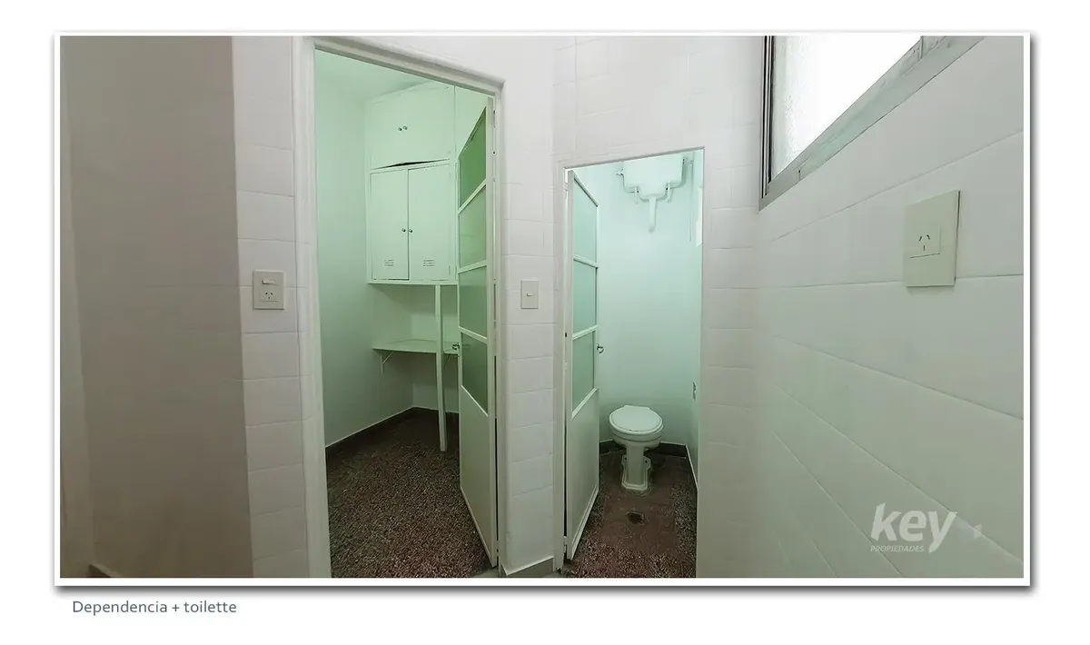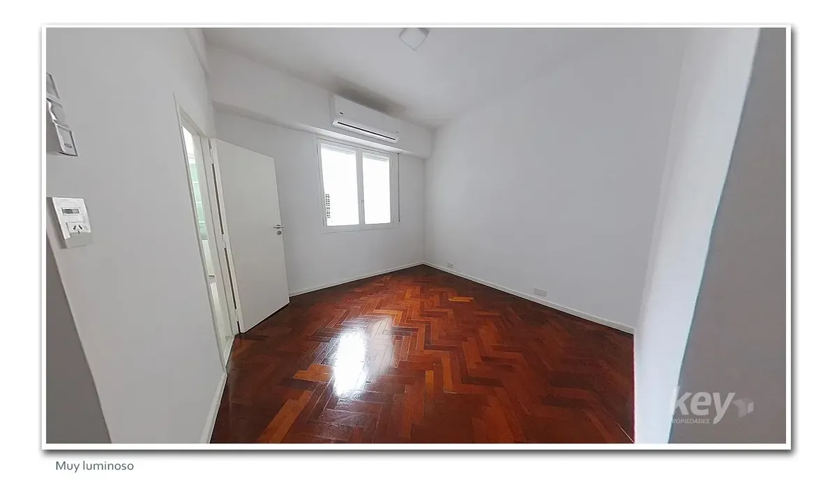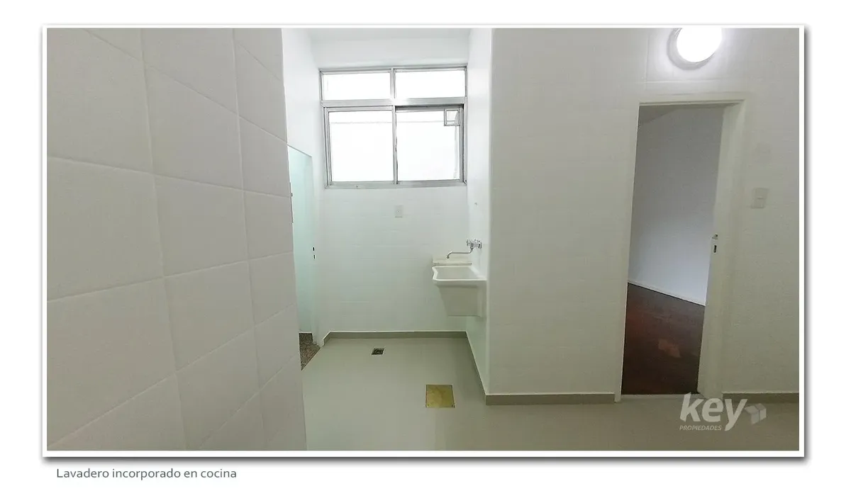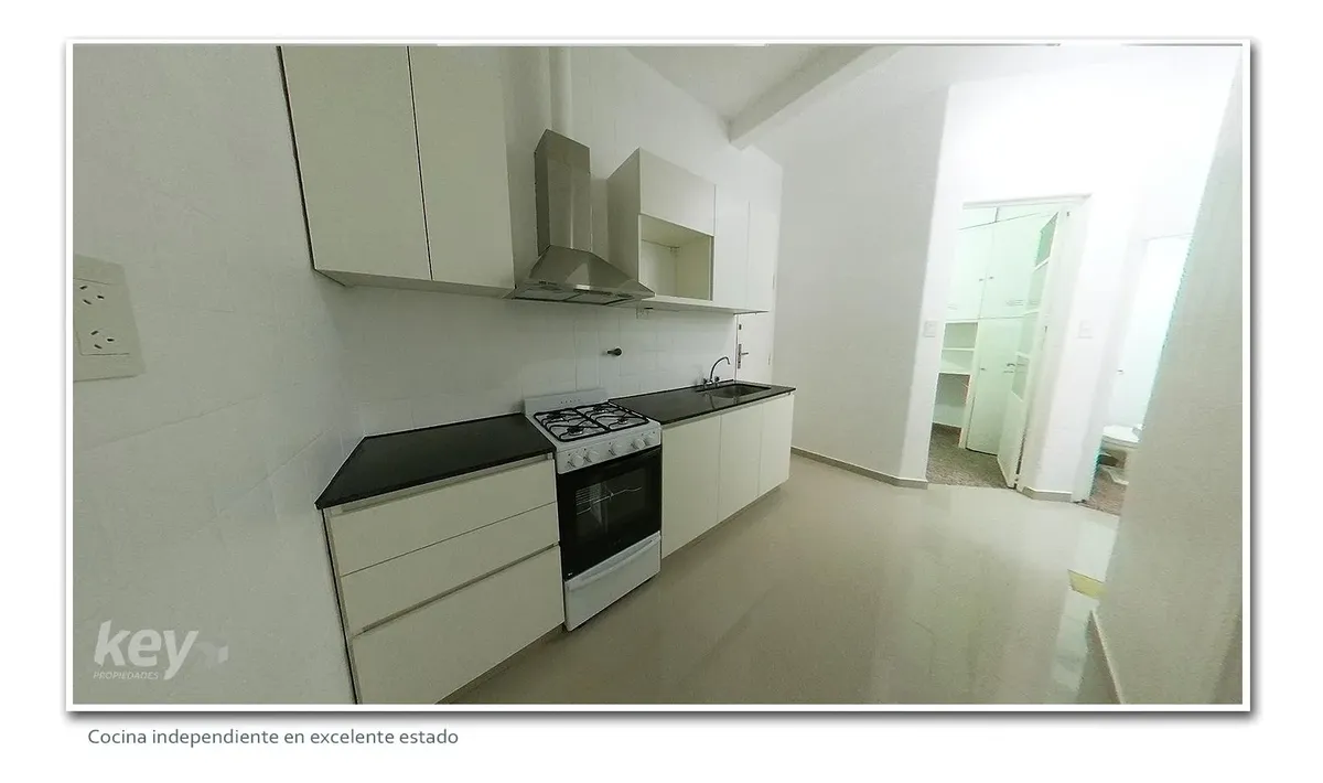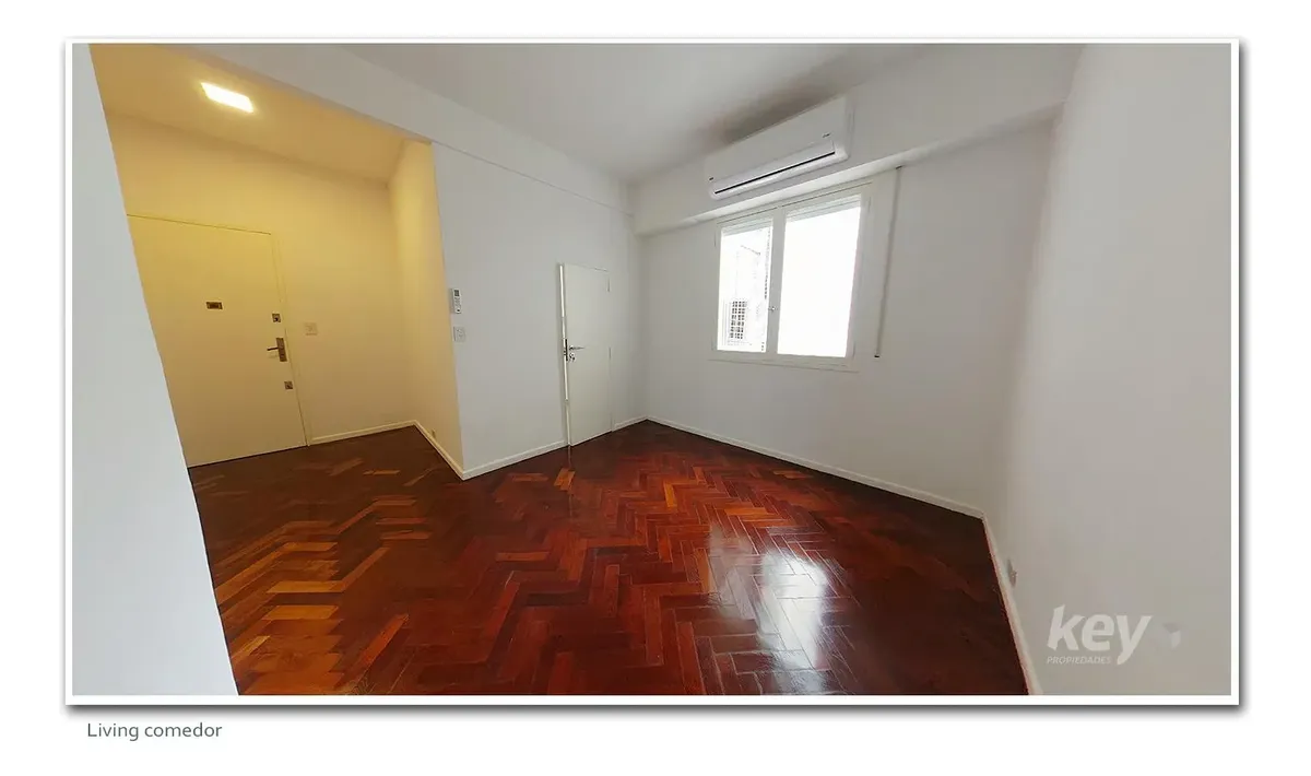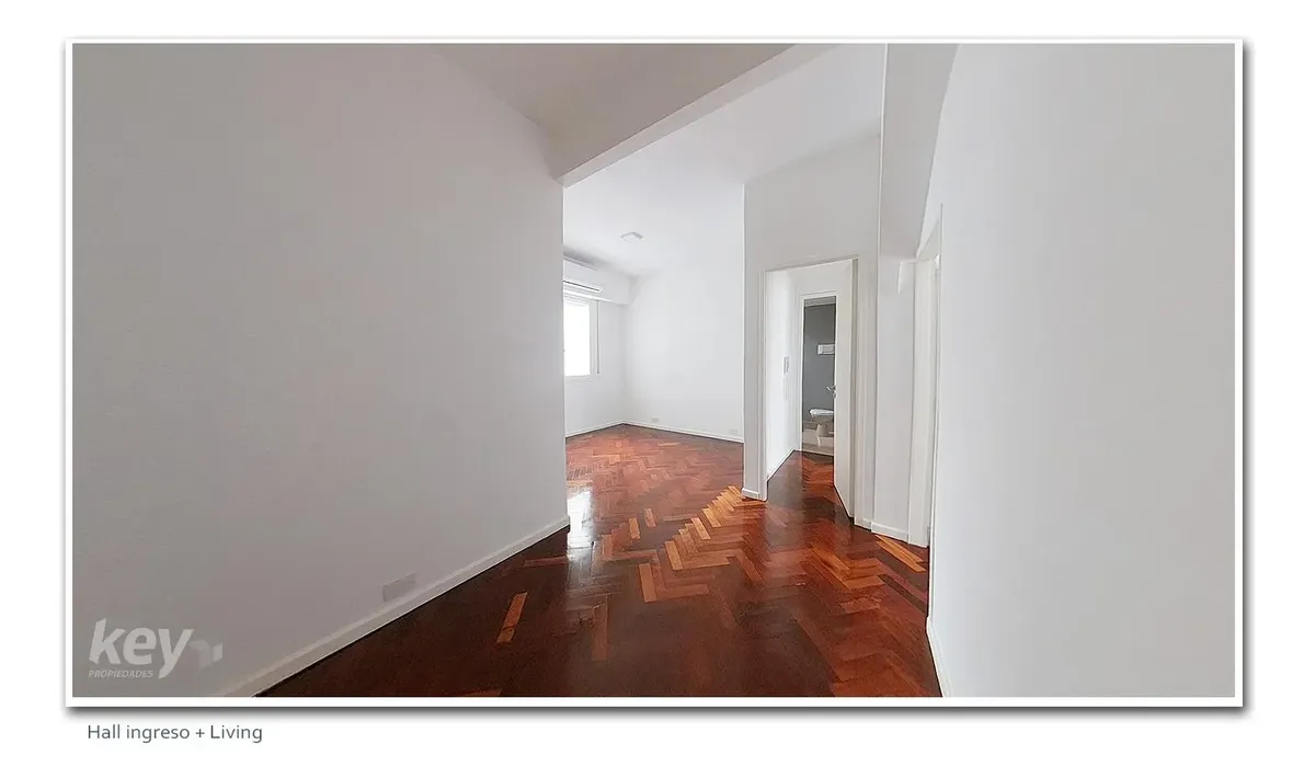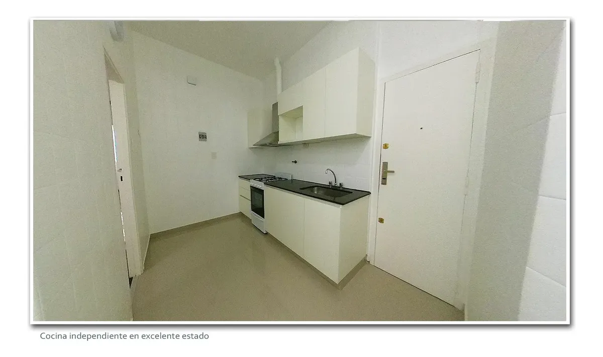 Apartamento em Recoleta com 3 ambientes mais dependência. Tem 60 m² cobertos/totais, com 2 dormitórios. O imóvel foi reformado: pisos de parquet plastificados, cozinha e banheiro remodelados com equipamentos novos e recém-pintado, além de ar-condicionado split frio e calor novo no living com área de jantar. A sala acessa um pulmão interno com abertura para o céu. O banheiro completo tem ventilação natural e foi reciclado com paredes de microcimento; conta com box e louças sanitárias restauradas.