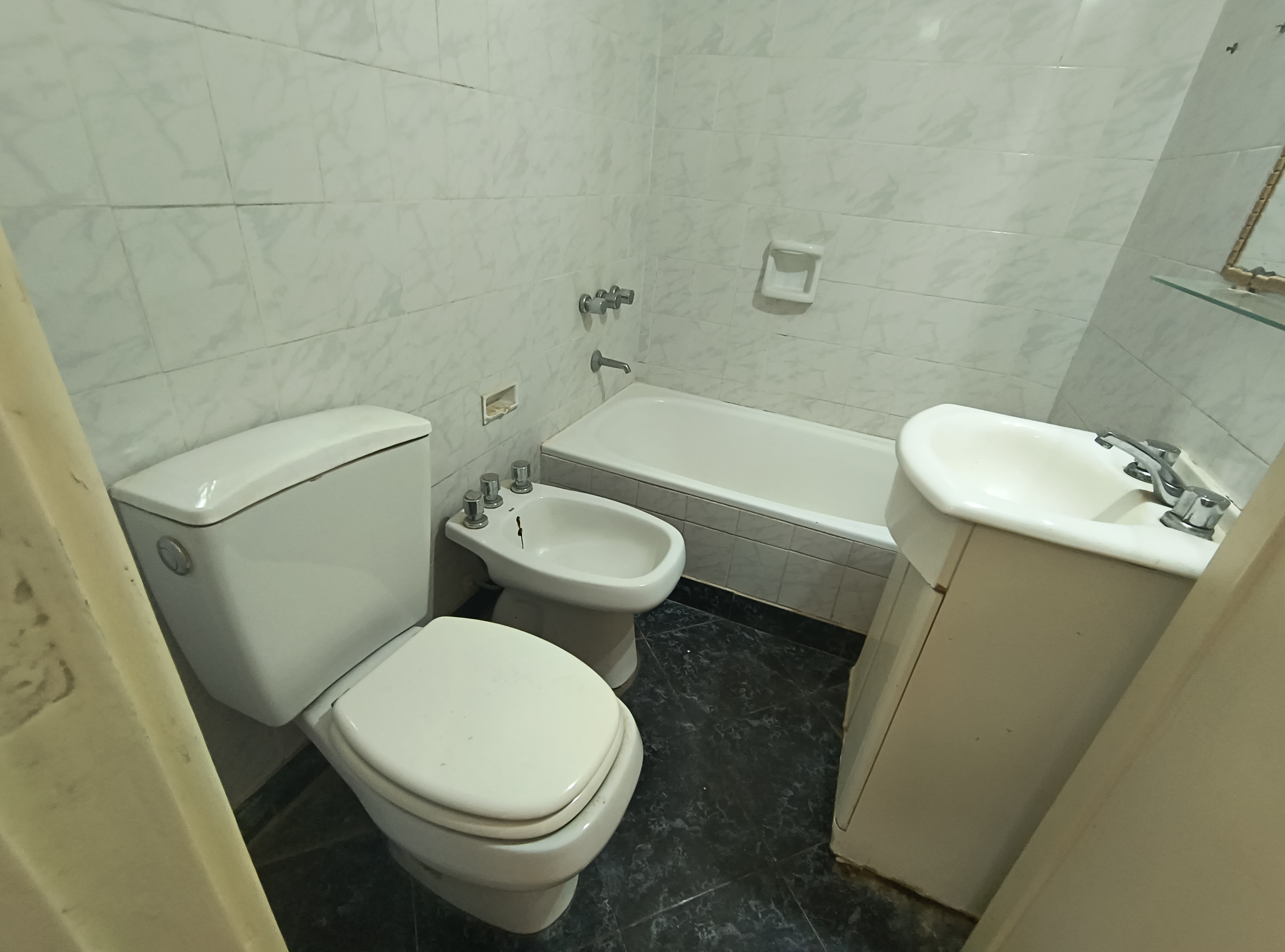 Apartamento de 3 ambientes em Recoleta, em bom estado. Sala de estar e jantar com piso de parquet, com plastificação recente. Conta com 2 dormitórios, sendo 1 com ar-condicionado frio, além de armários embutidos, cozinha completa e 1 banheiro completo.
