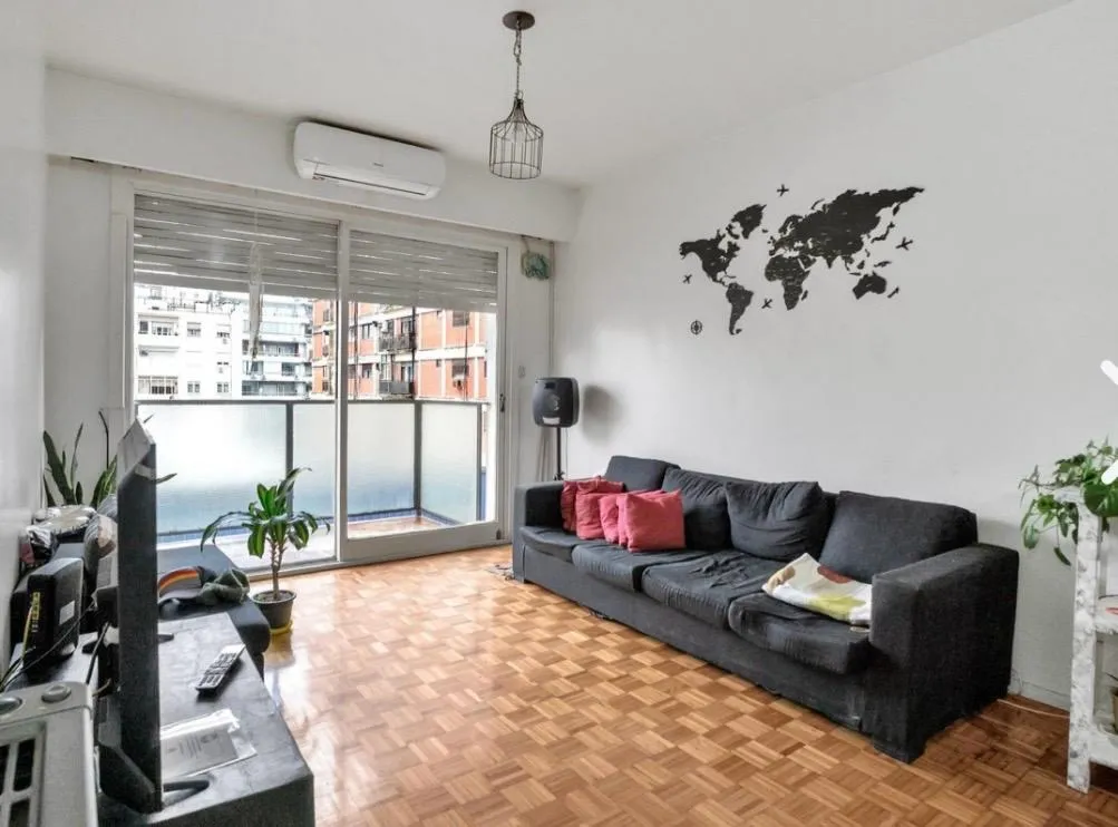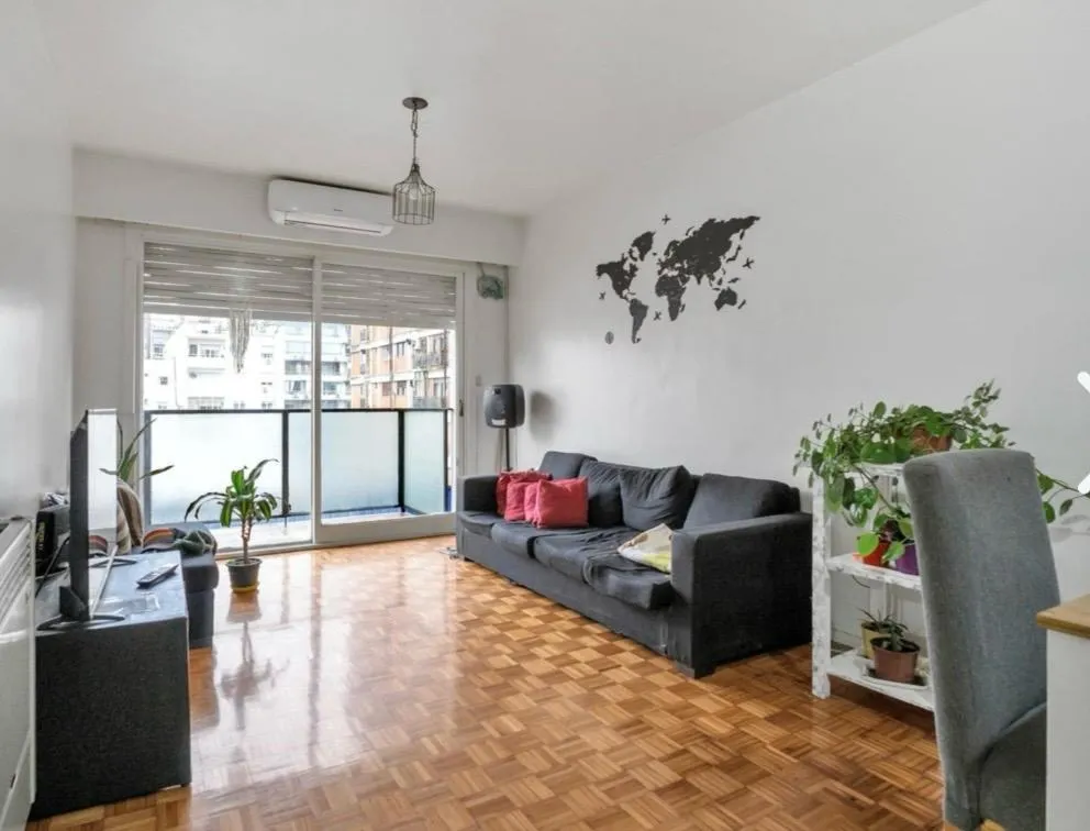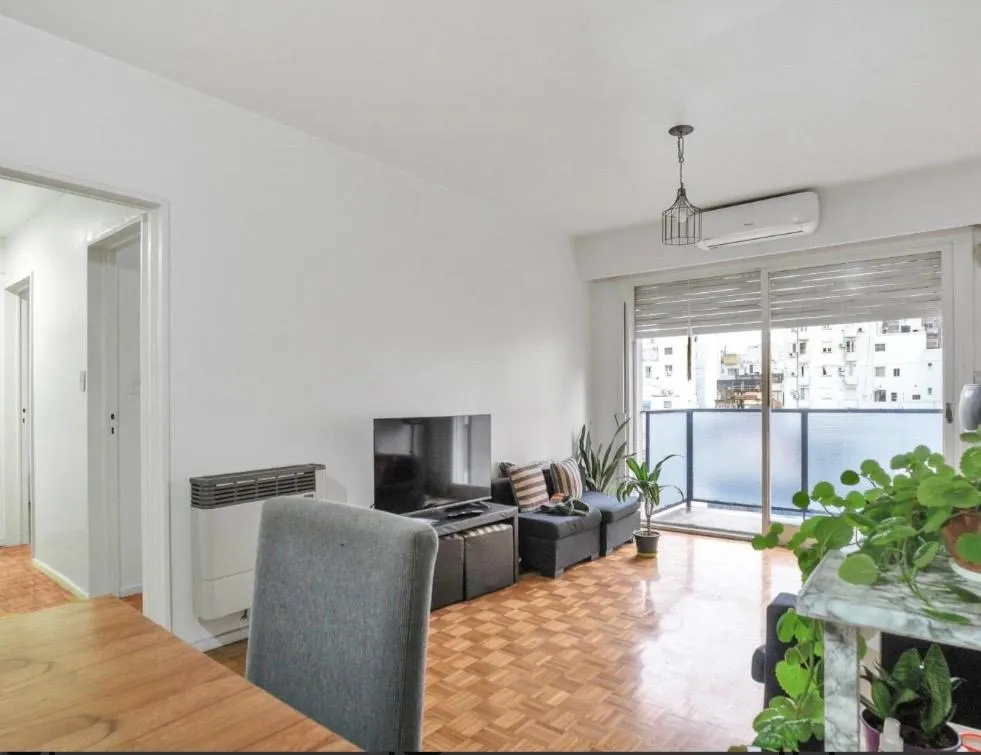 Apartamento para aluguel em Recoleta com 50 m² de área total e 50 m² cobertos. São 2 dormitórios, 1 banheiro completo e cozinha. A sala tem janela com vista para o exterior e se integra à área de jantar. O banheiro conta com banheira, lavatório, vaso sanitário e bidê.