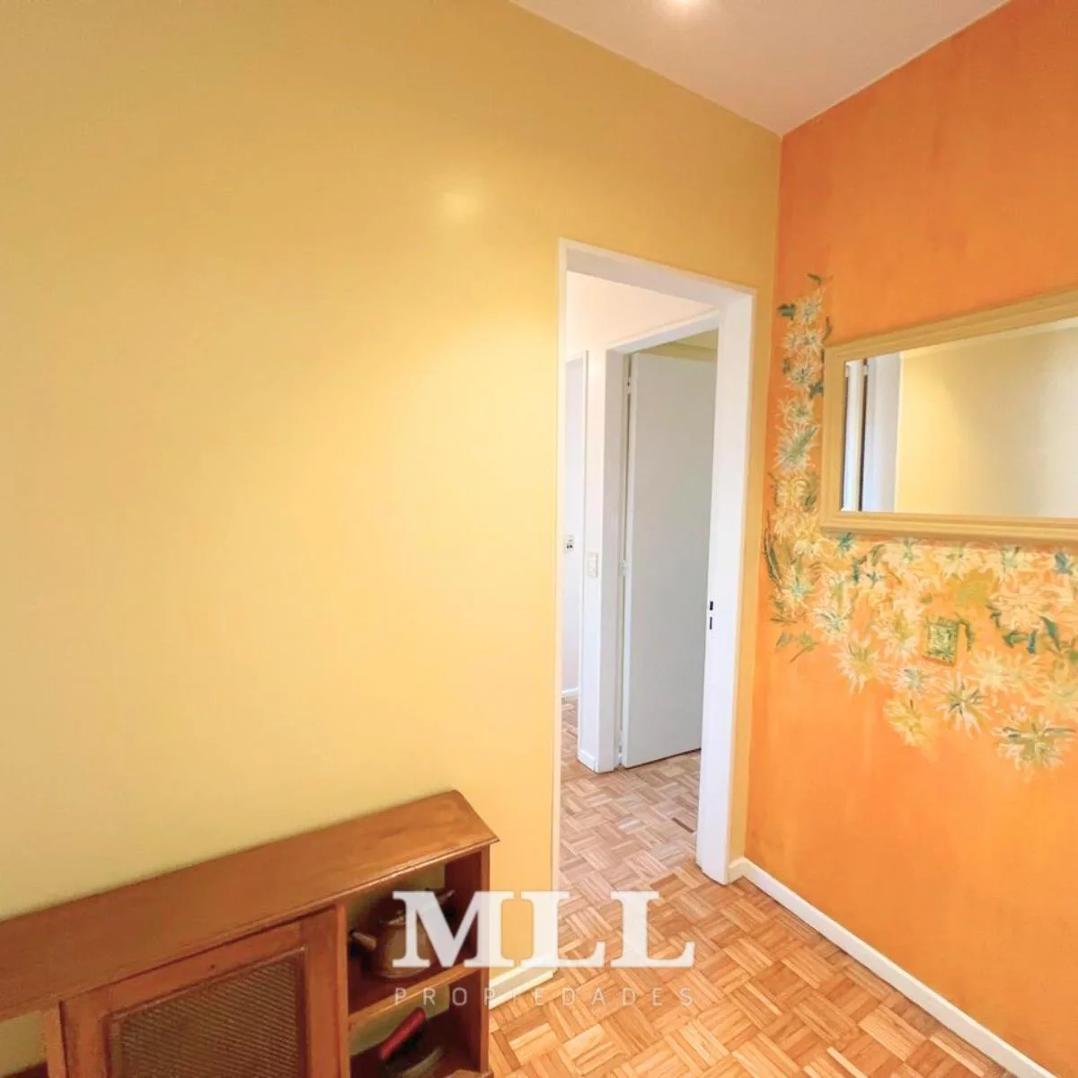 Apartamento de 2 dormitórios com entrada semi andar, de fundos (contrafrente), com varanda. Cozinha com refeitório diário e área de serviço integrada; banheiro completo com ventilação. A unidade é mobiliada e equipada, com aquecimento central e aquecimento individual para água (calefão). Contrato de 1 ou 2 anos, pagamento antecipado de 1 mês e 2 meses de depósito; não são aceitos animais. Condomínio e medidas aproximadas.