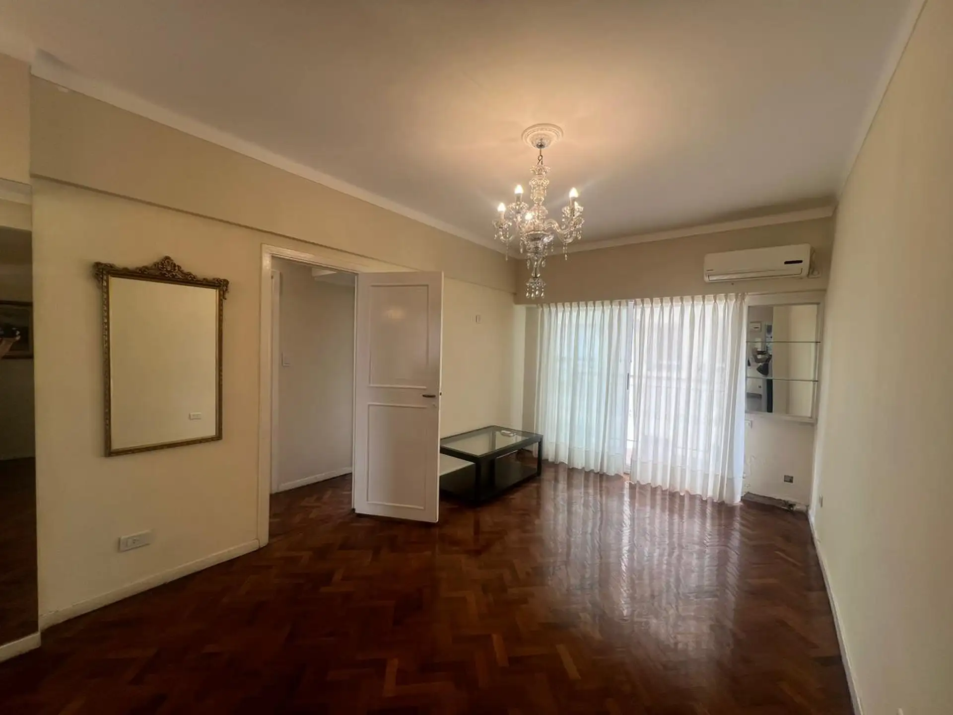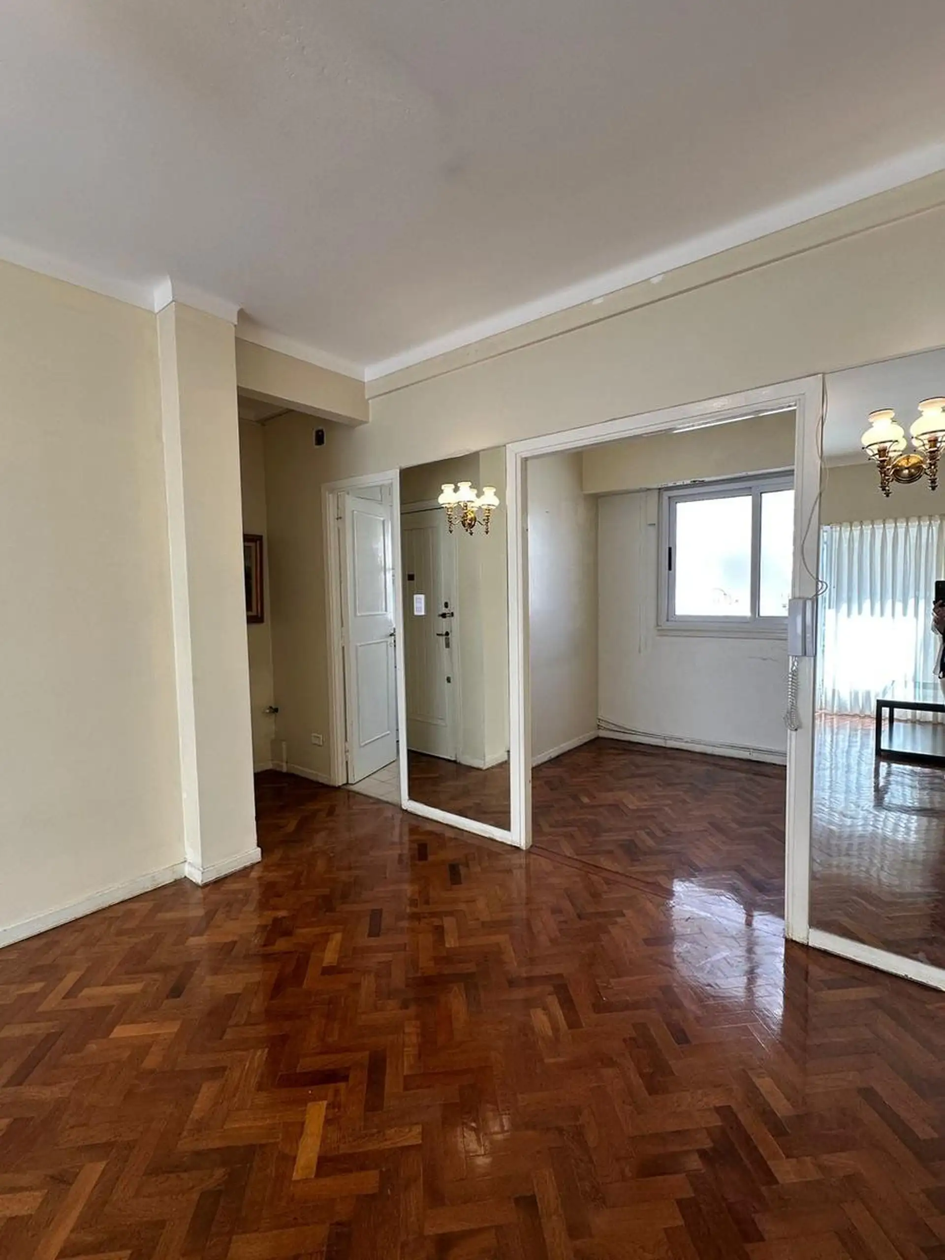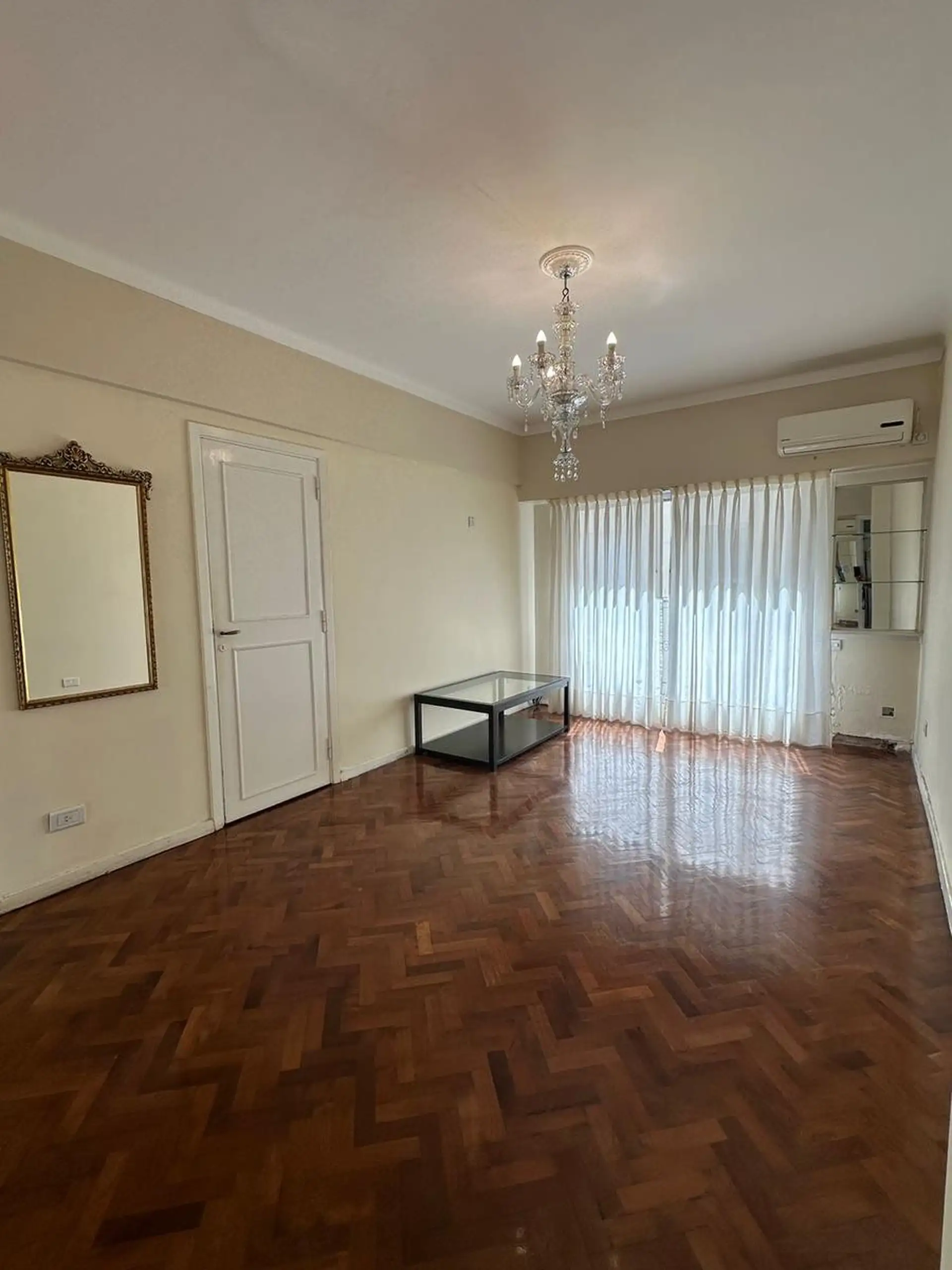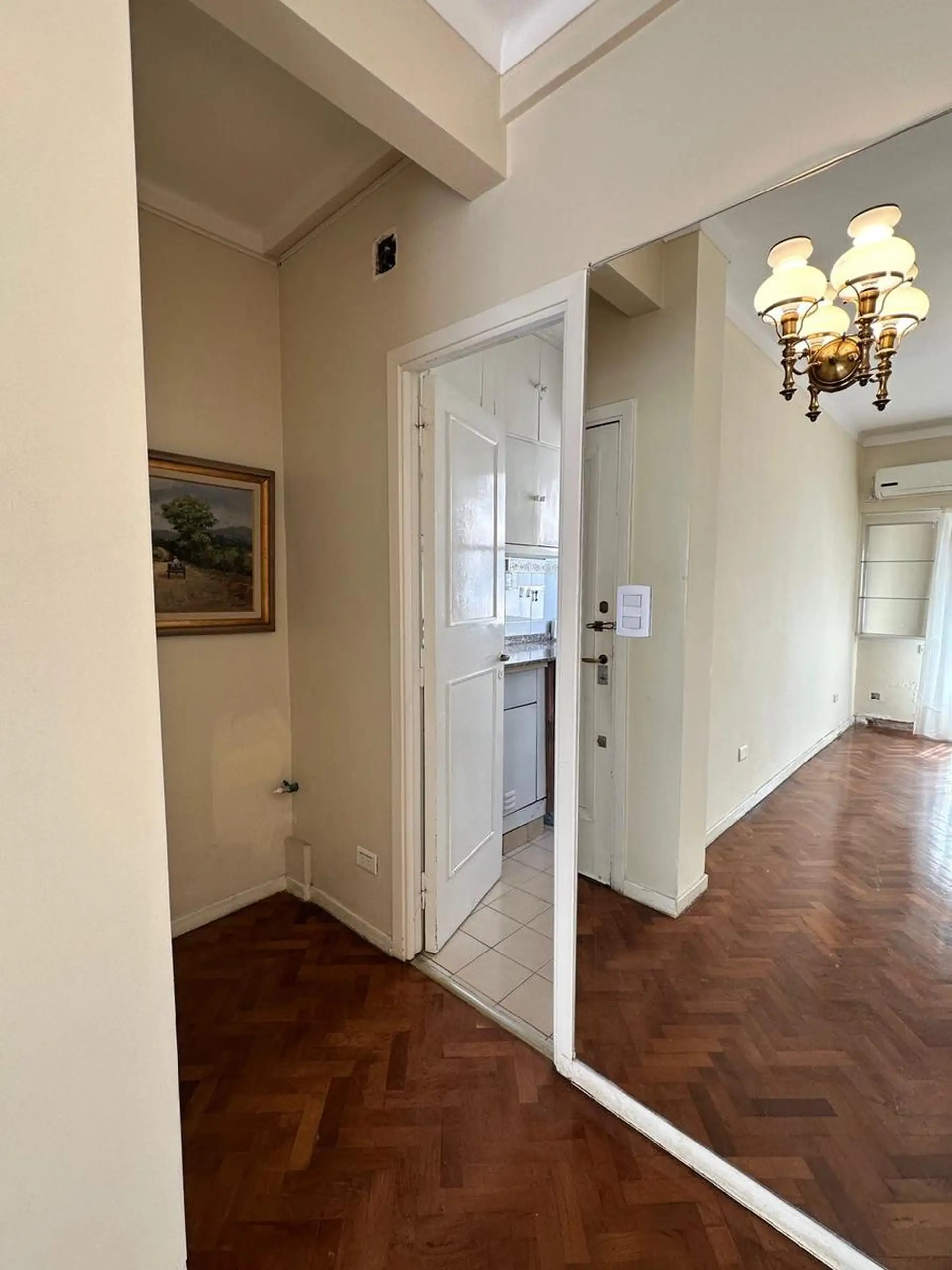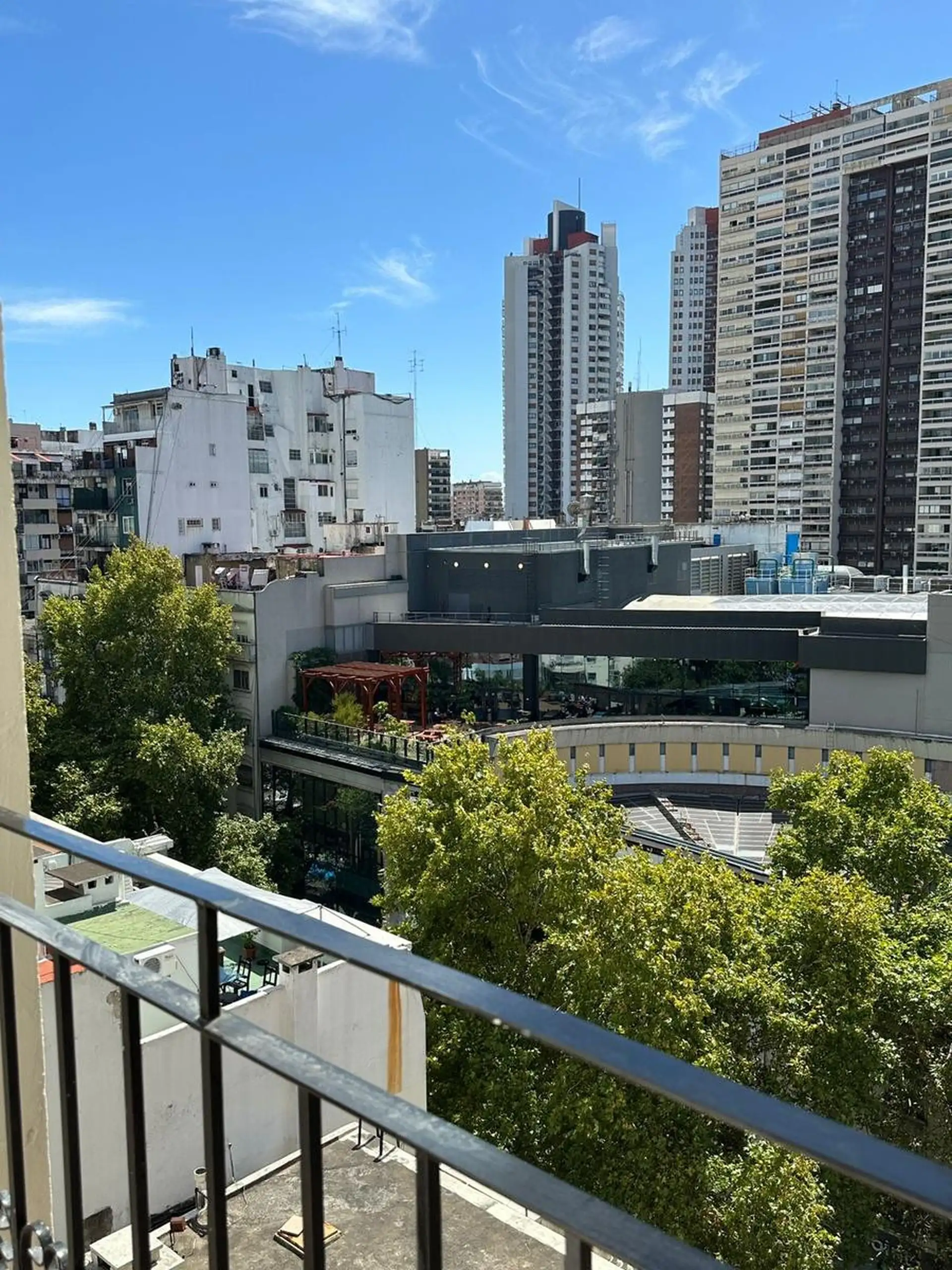 Apartamento de 3,5 ambientes para aluguel em Zona Alto Palermo, com 2 quartos. Sala ampla com saída para varanda contínua, área de jantar ou escritório, banheiro completo e cozinha independente. O edifício tem encarregado e segurança e fica na Av. Santa Fe, de frente para o Centro Comercial Alto Palermo, a alguns metros de Av. Coronel Díaz e perto de Av. Las Heras. Contrato de 2 anos, com reajuste trimestral por IPC; exigem garantia em CABA ou seguro de fiança e comprovação de renda.