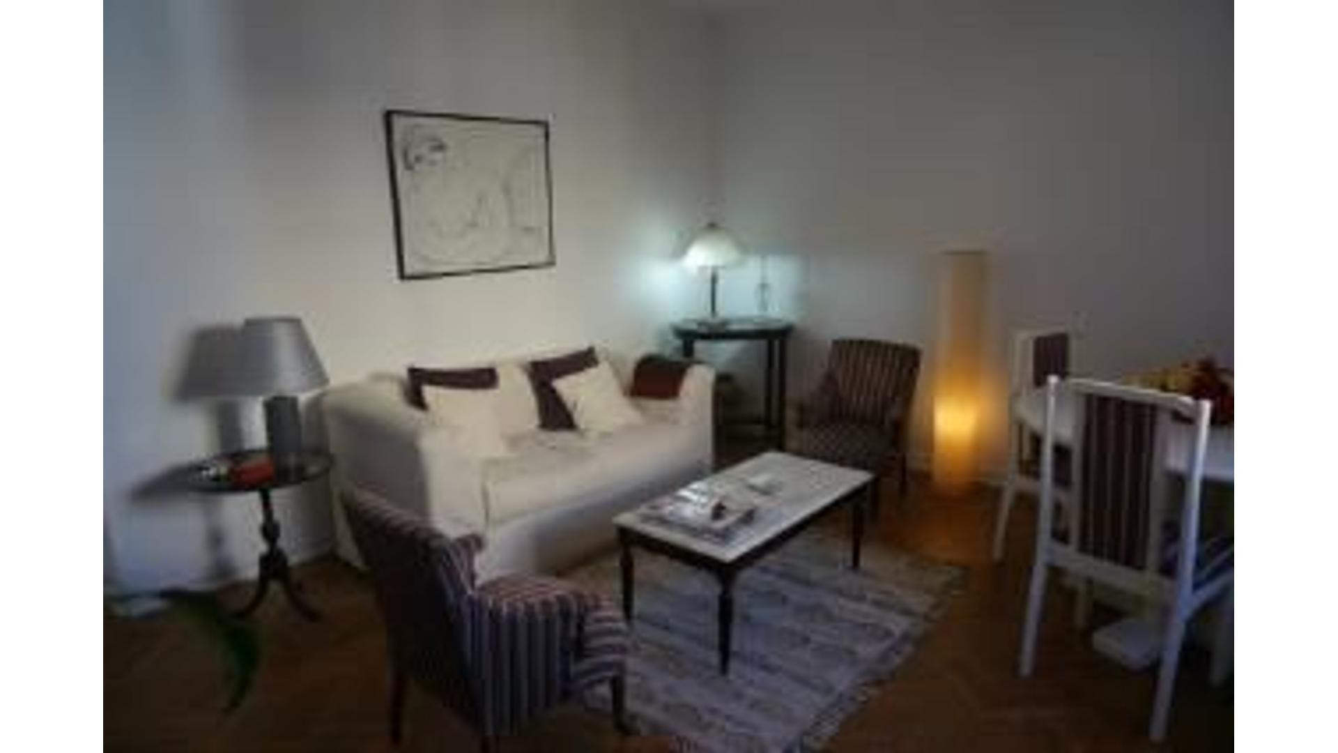 Apartamento de 2 dormitórios em 9º andar em Recoleta. Possui sala de estar e jantar com sofá e poltronas, pequena barra e mesa redonda para 4 pessoas; quarto principal com 2 camas individuais, TV LED, ar-condicionado (split) e ventilador, e segundo dormitório com 1 cama de casal/1,5 lugares (cama com trilho) e TV. Cozinha equipada com geladeira com freezer, micro-ondas, cafeteira, torradeira, chaleira elétrica e utensílios; banheiro completo, aquecimento individual e pisos de parquet. Inclui int