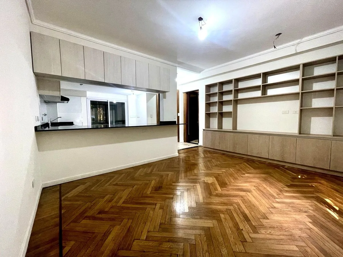 Apartamento de 3 ambientes com 70 m² em Recoleta, totalmente reformado e pronto para morar. Fica na rua Gelly y Obes, com sala de estar e jantar integrada à cozinha. Possui 2 dormitórios com armários embutidos e ar-condicionado frio/calor, 1 banheiro completo e 1 lavabo, mezanino para escritório ou estudo e um pequeno pátio interno. Todos os ambientes com ar-condicionado frio/calor.