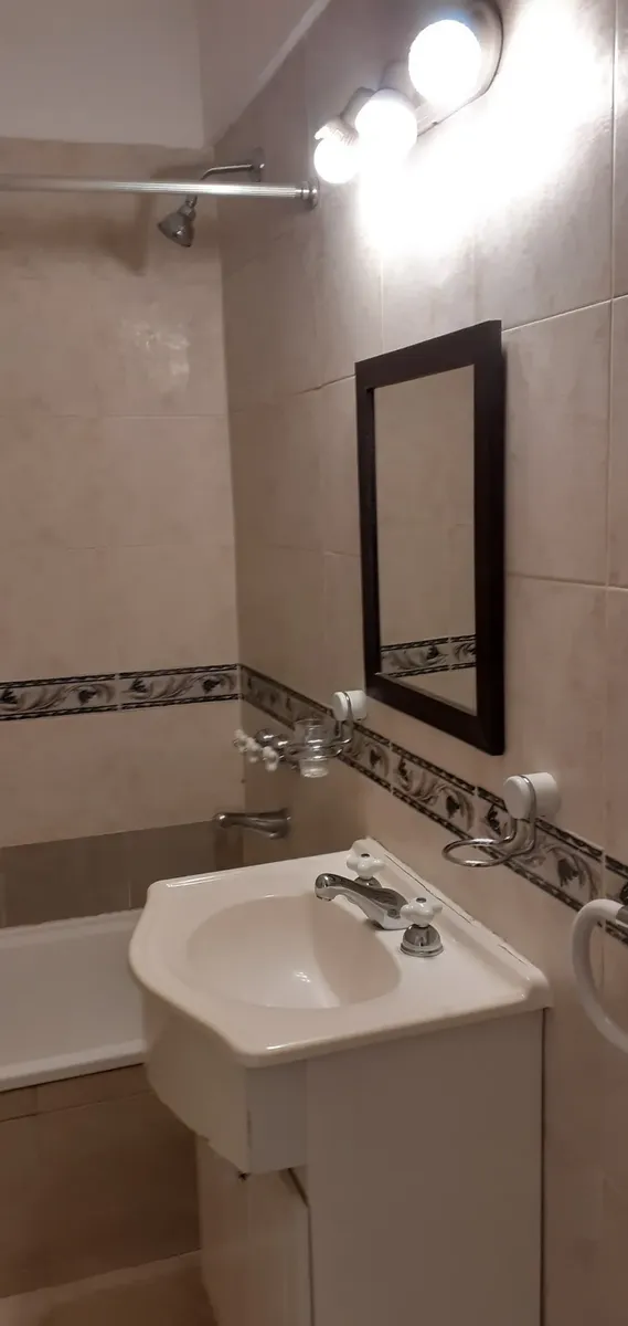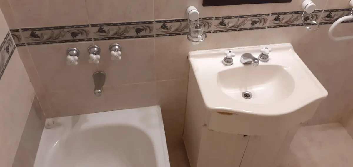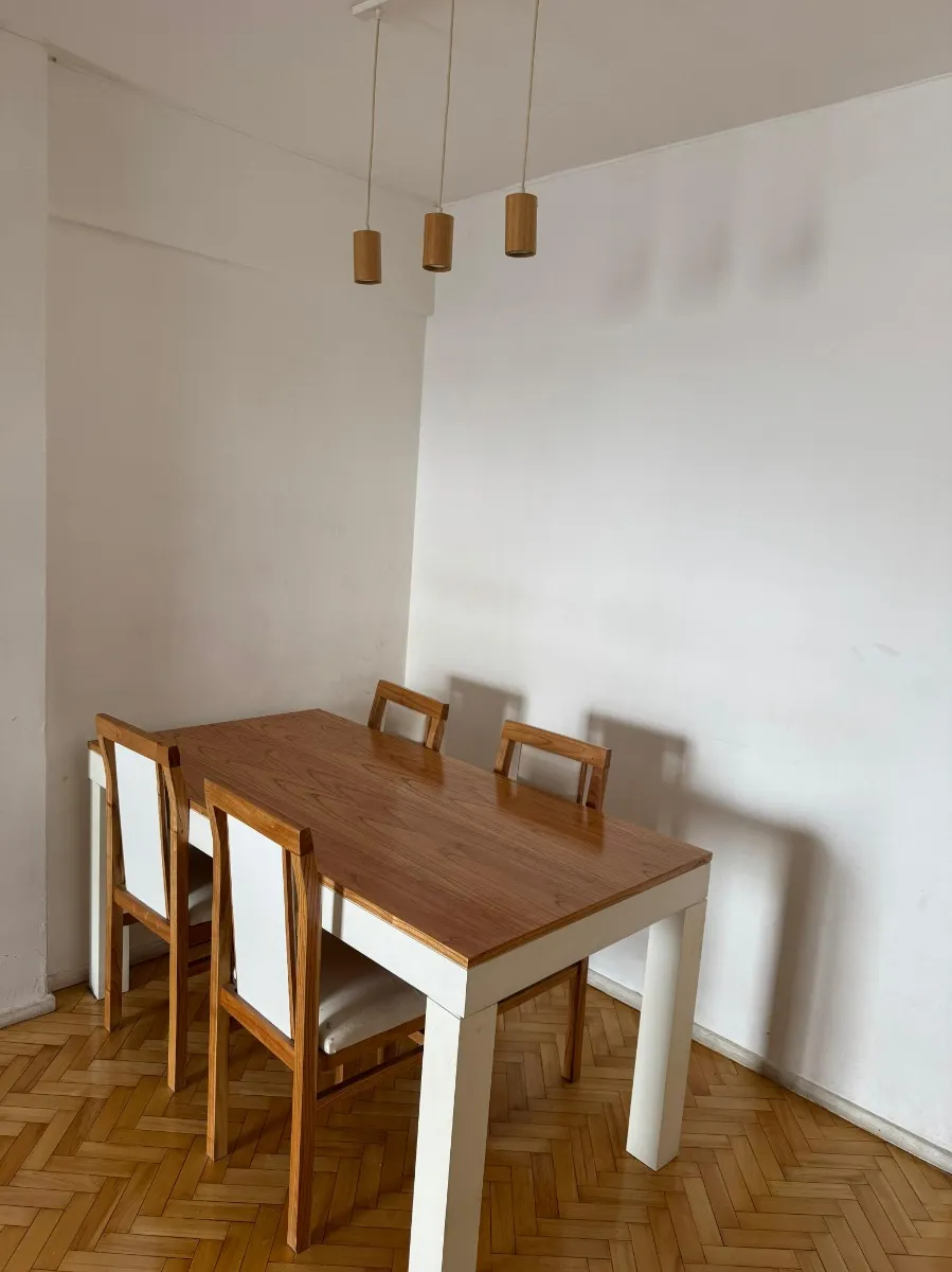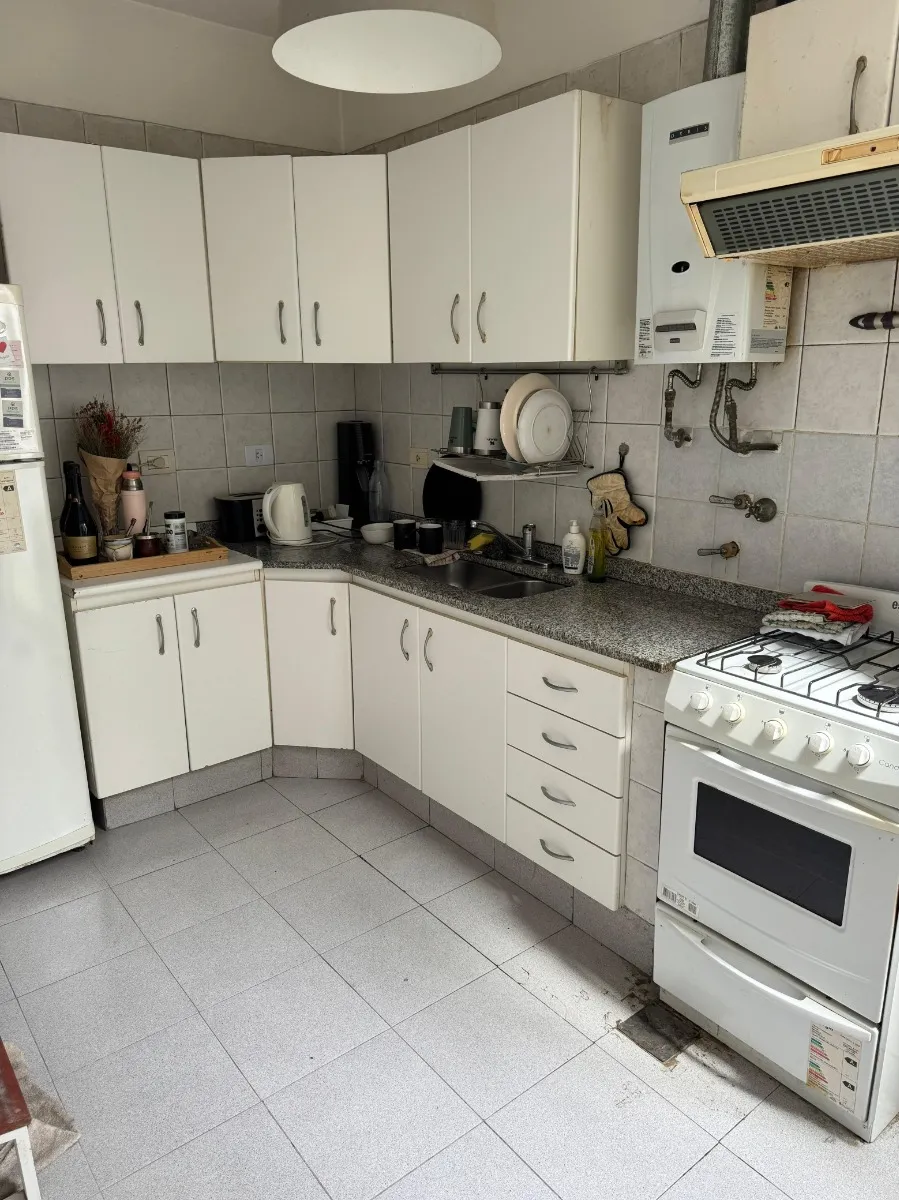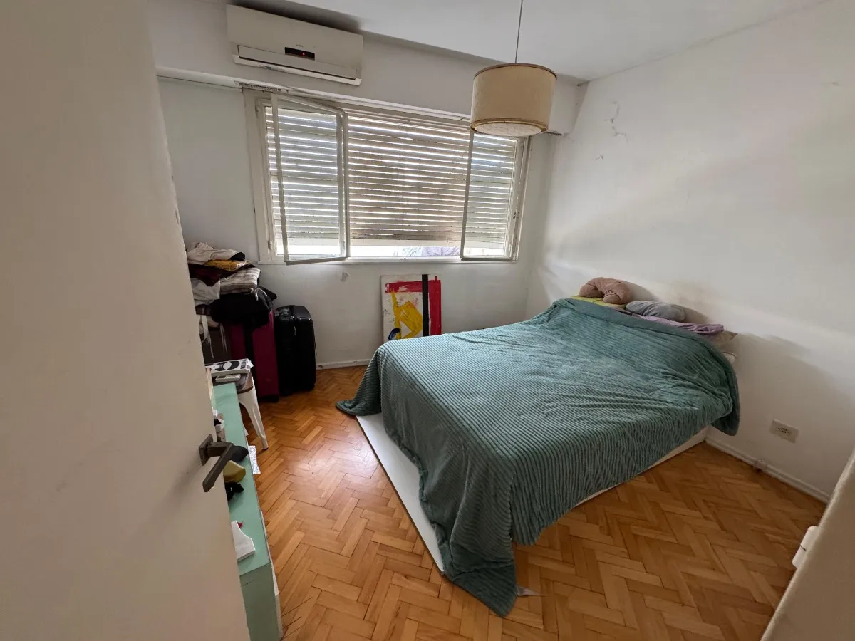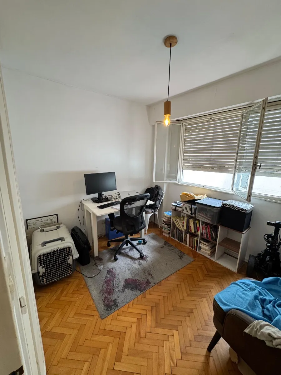 Apartamento de 2 quartos com terraço e área de churrasco, no 8º andar, de frente para a rua, em Recoleta. O living e a área de jantar têm acesso ao terraço com plantas e churrasqueira; há 2 dormitórios com armários. Piso em parquet plastificado, pintura em bom estado e banheiro completo reformado. Cozinha ampla com espaço para geladeira grande e fogão a gás de 4 bocas, com muitas alacenas e espaço para mesa de café da manhã. Aquecimento por piso radiante e água quente por aquecedor (calefón). In