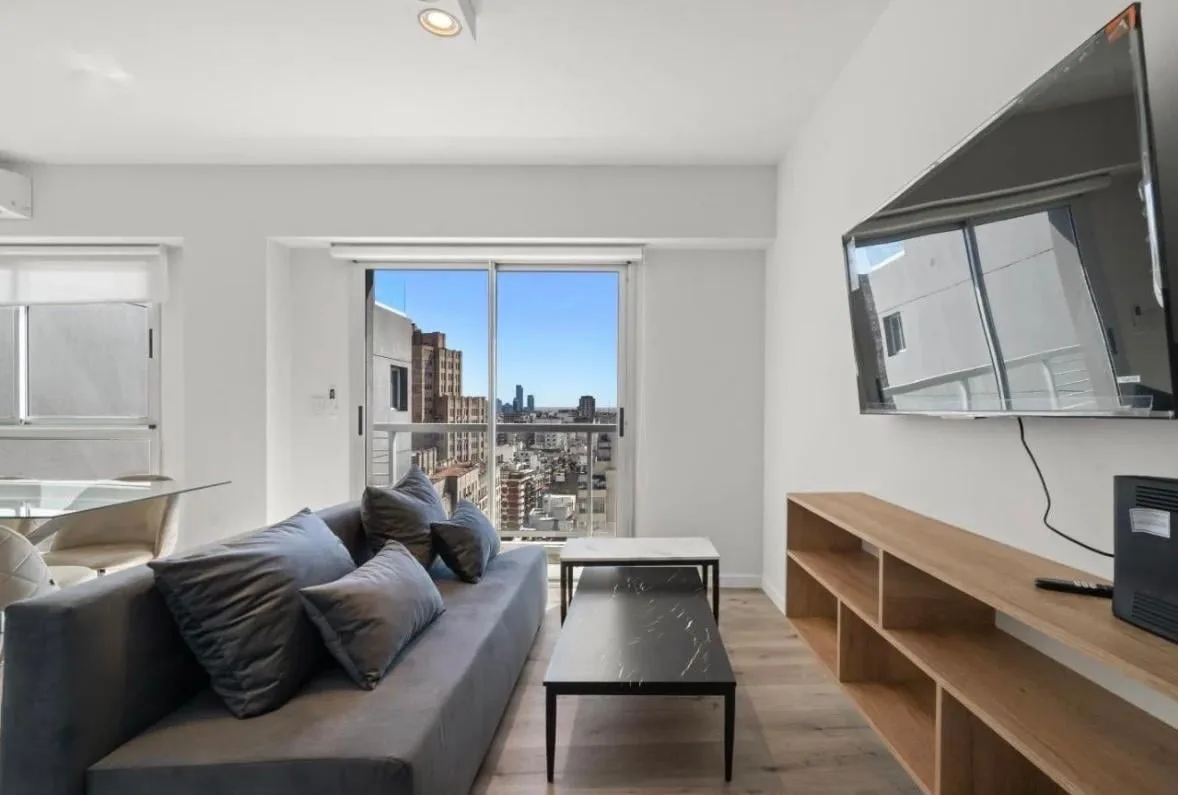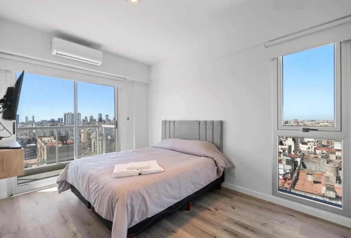 Apartamento tipo studio em Recoleta, de frente para a Plaza Houssay. Fica em área com faculdades e centros de saúde e com acesso por ônibus ou metrô. O prédio tem academia, lavanderia e terraço com área de churrasco, mediante reserva com 72 horas de antecedência.