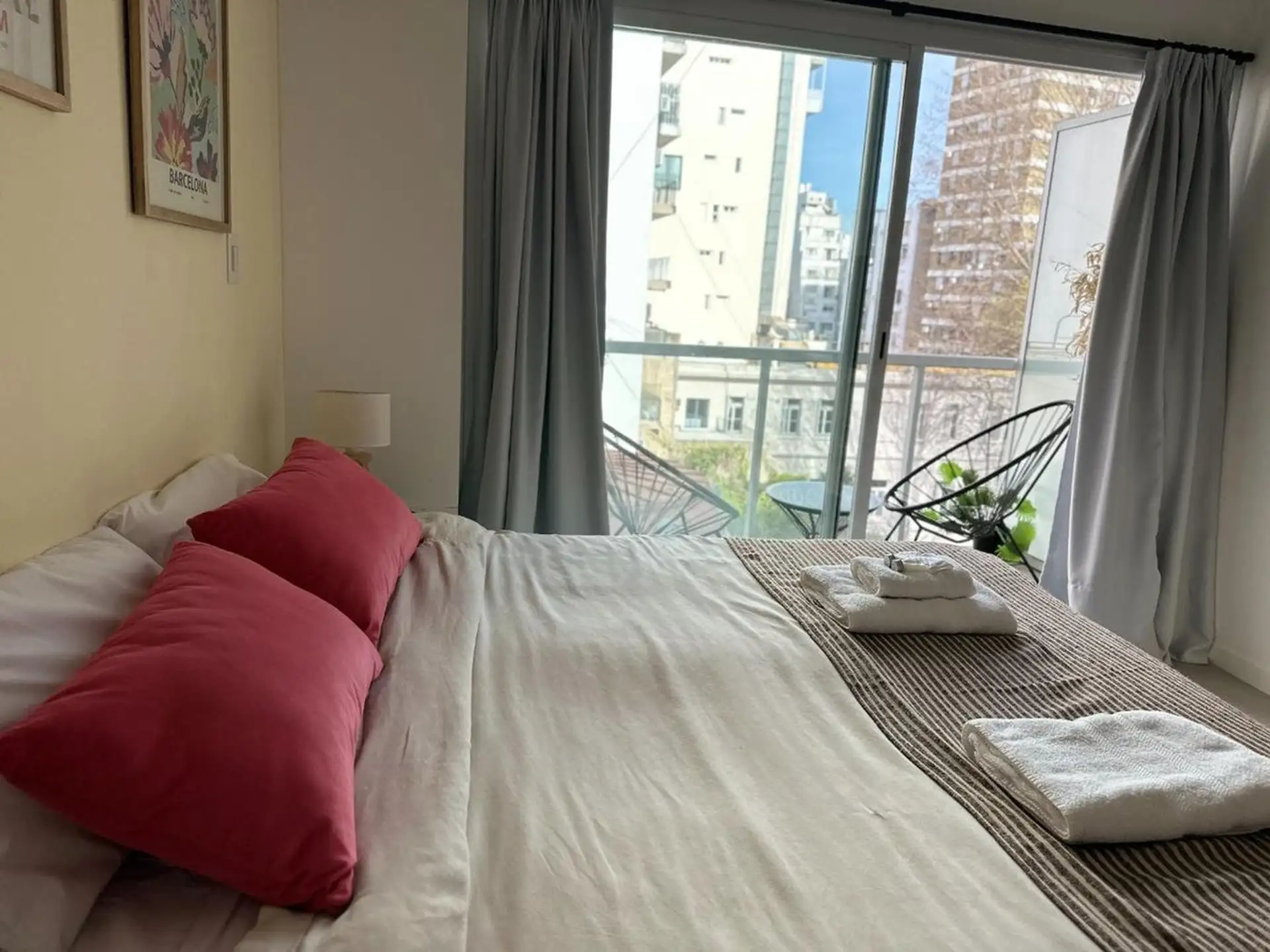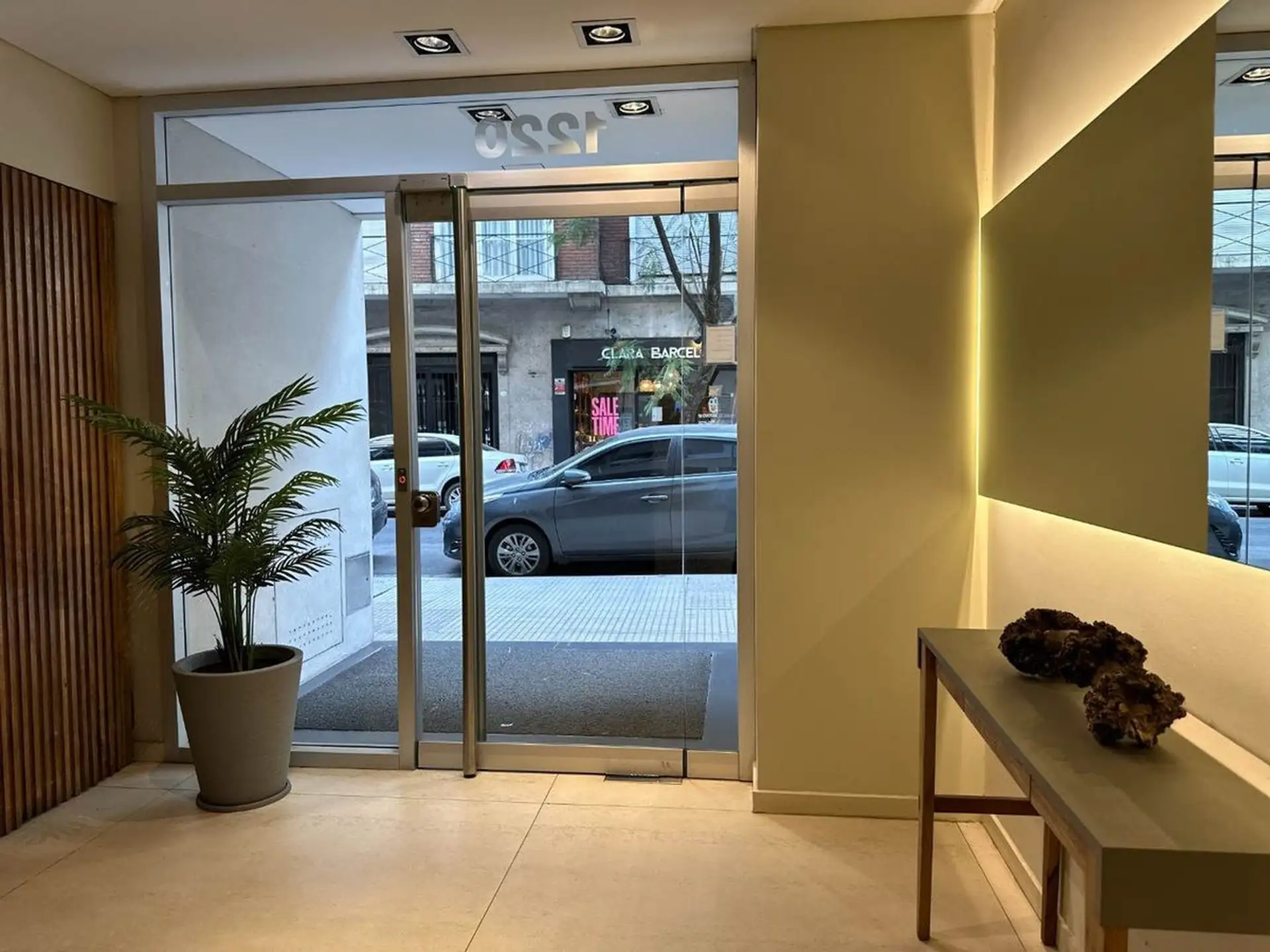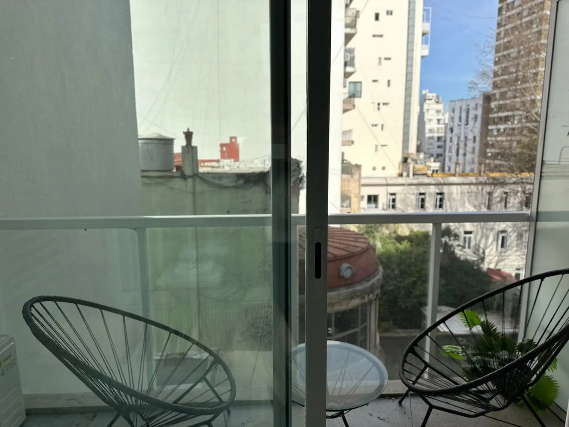 Apartamento de 1 ambiente com 35 m² no 7º andar de um edifício com 8 andares, voltado para os fundos (contrafrente). Possui 31 m² cobertos e 4 m² de varanda, 1 banheiro completo e está mobiliado, com eletrodomésticos e utensílios. O imóvel tem armários e espaço de armazenamento; fica na divisa entre Recoleta e Retiro/Microcentro, a poucos metros da Avenida Santa Fe.