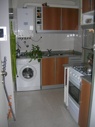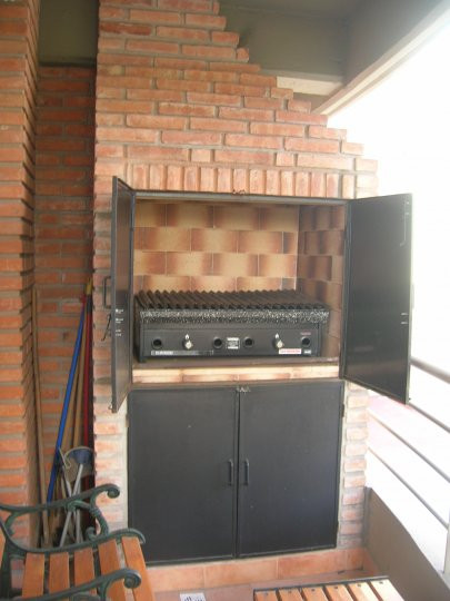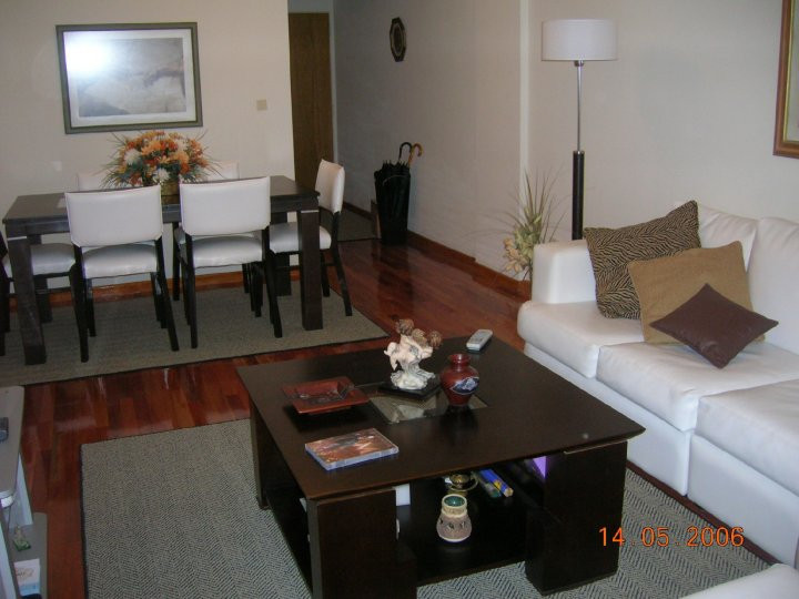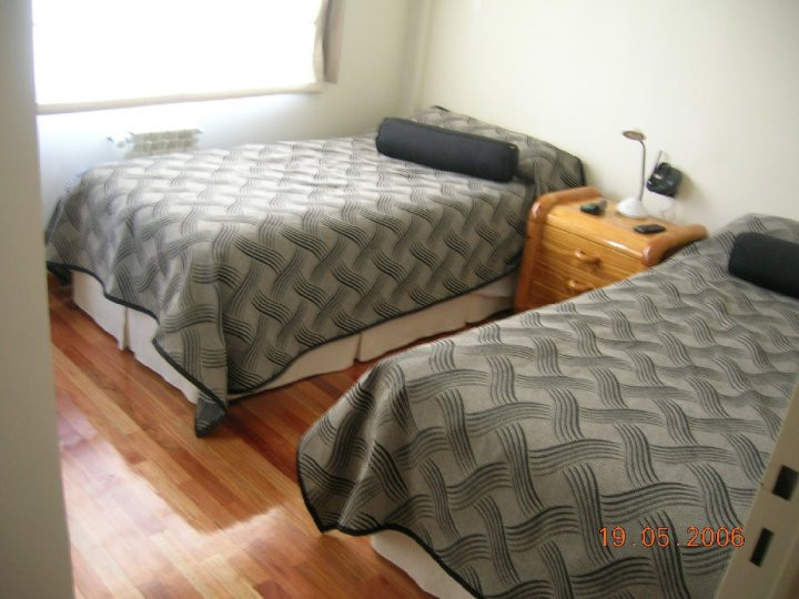 Apartamento de aluguel temporário com 4 ambientes e 85 m² em Nuñez. Piso de madeira e quartos com carpete; ambientes com papel de parede. Tem ar-condicionado split frio/calor e três televisores, além de aquecimento por estufa a tiro balanceado com opções elétricas em cada ambiente. A planta inclui três dormitórios, sendo o principal com cama de casal e os demais com cama individual e cama de casal, ambas com escrivaninha e cadeiras, portas-janelas com saída para um balcão corrido nos 2º e 3º dor