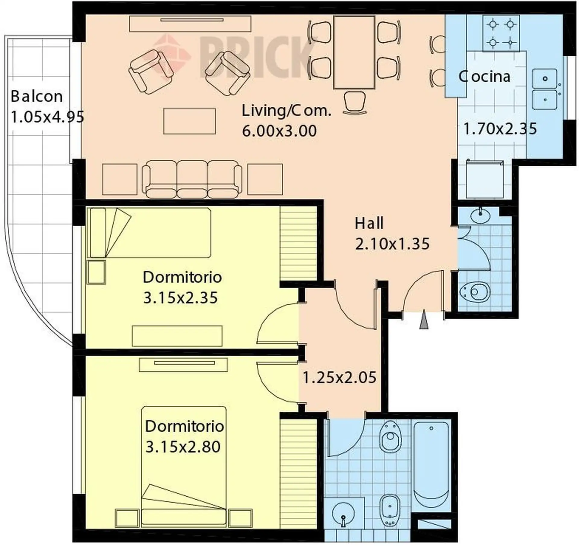 Apartamento de dois quartos de 3 ambientes com vaga fixa em San Cristóbal