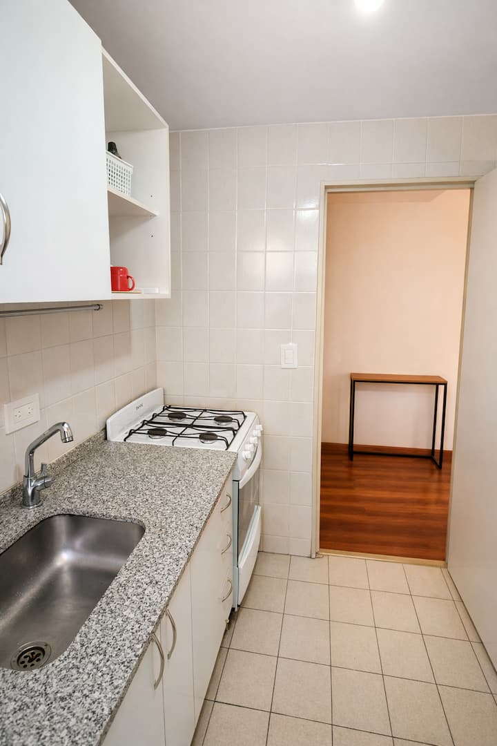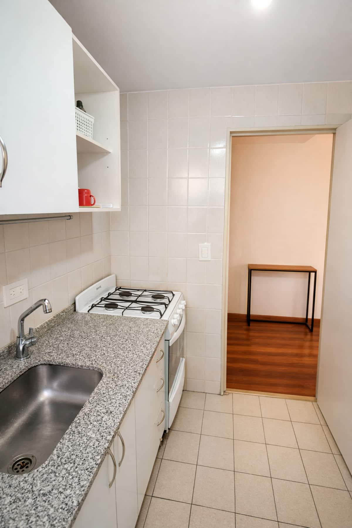 Apartamento de 4 ambientes em San Cristóbal, com 2 dormitórios, sala com varanda, cozinha separada e 1 banheiro completo. Inclui terraço privativo com churrasqueira e área fechada tipo playroom/SUM, além de área de lavanderia na unidade com máquina de lavar. O prédio tem piscina, churrasqueiras de uso comum, jardim interno, salão de festas (SUM para 30 pessoas), lavanderia e câmeras de segurança. Fica a 2 quadras do metrô E.