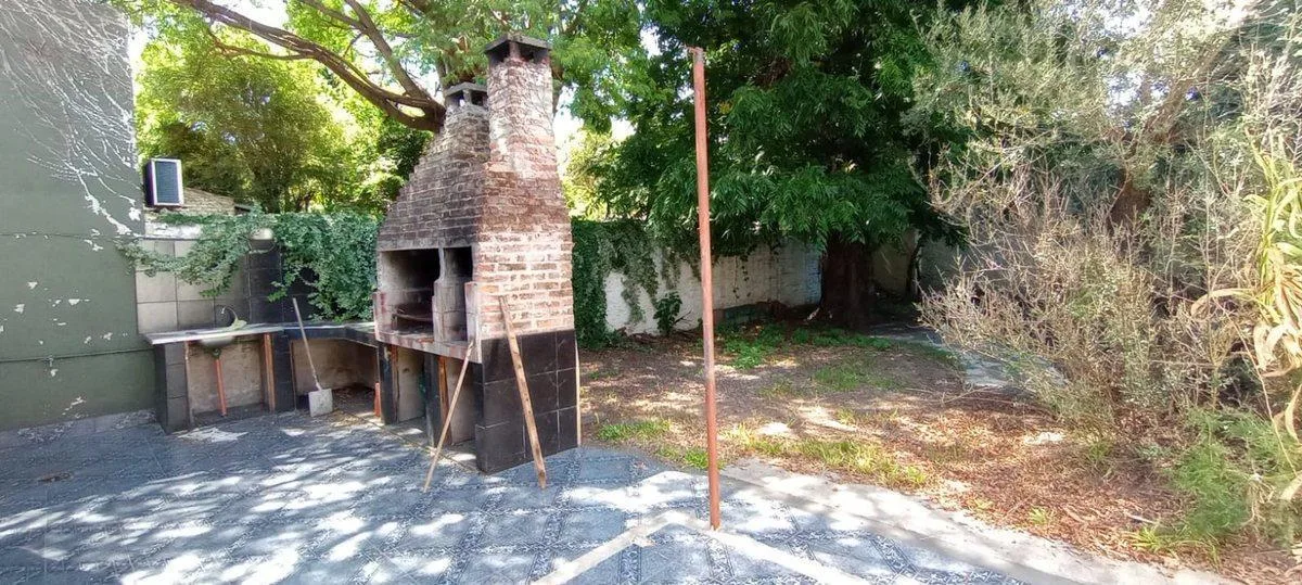 PH em planta baixa com entrada independente, 2 dormitórios com vista para o jardim, e living e sala de jantar de 36,5 m². Cozinha-sala de jantar com espaço de armazenamento sob a escada, banheiro completo e lavabo, além de galeria. O pátio e o jardim somam aproximadamente 197,5 m², com área de churrasco. Menciona-se a possibilidade de aluguel com vaga de garagem pelo mesmo valor; a localização fica a 5 quadras da estação de trem da linha Mitre e a 5 quadras do centro comercial e de avenidas prin