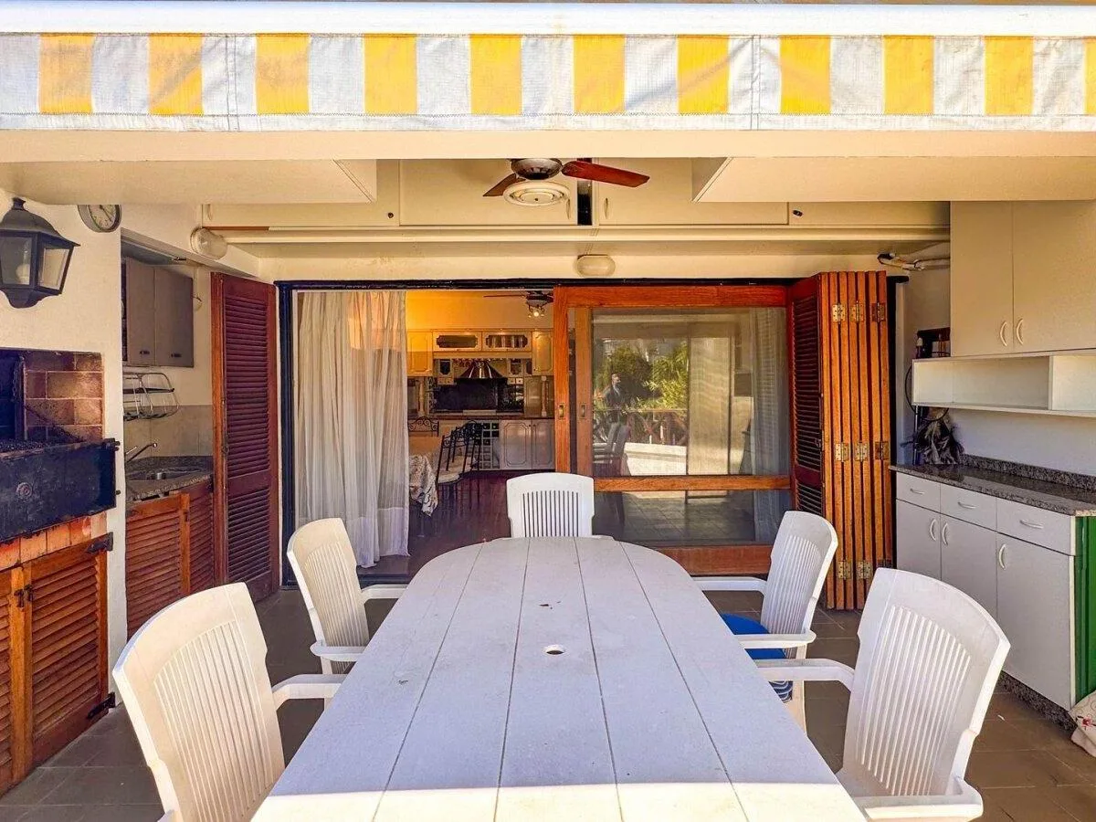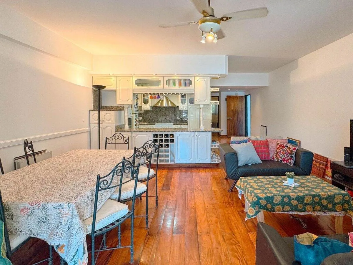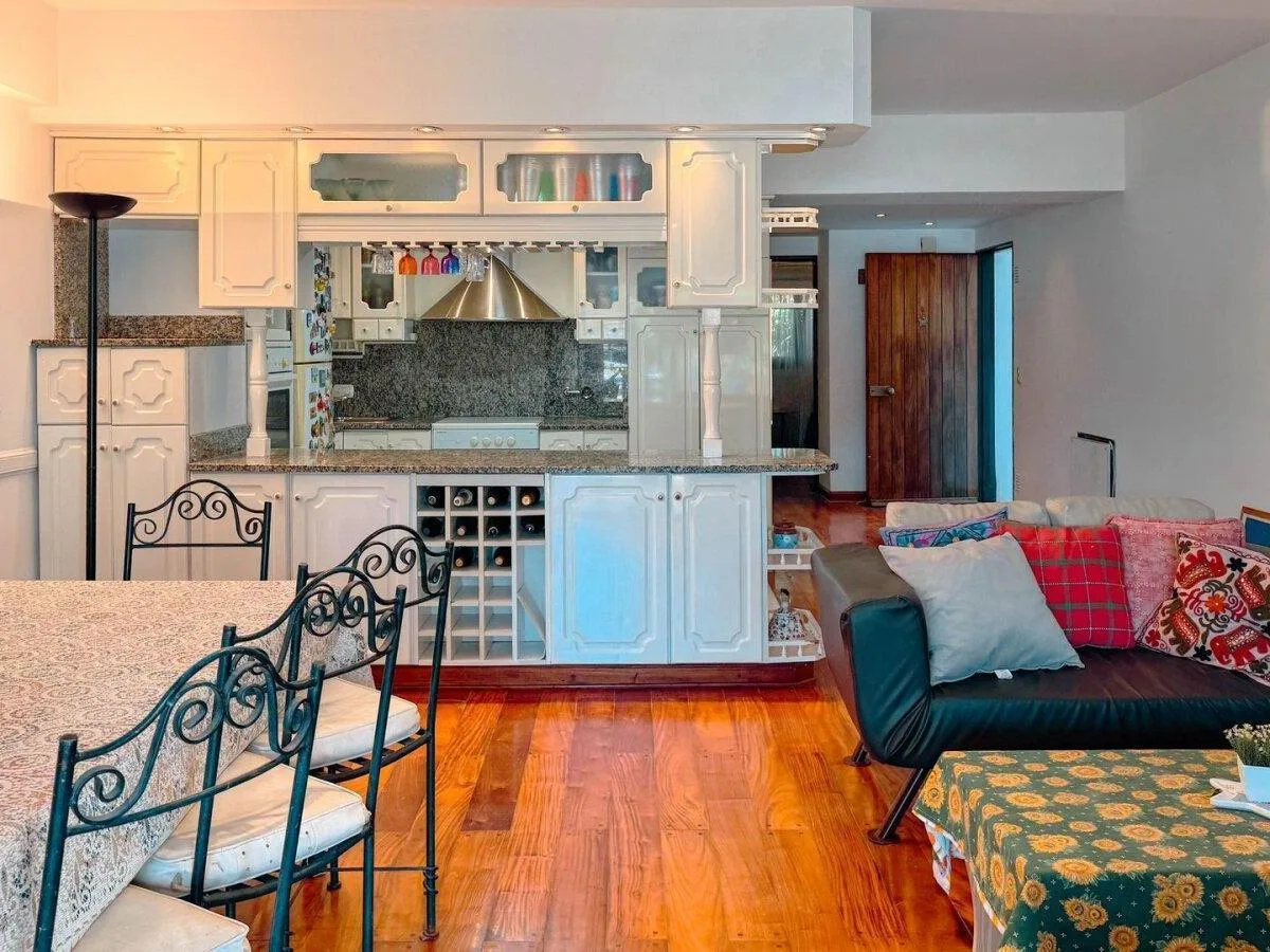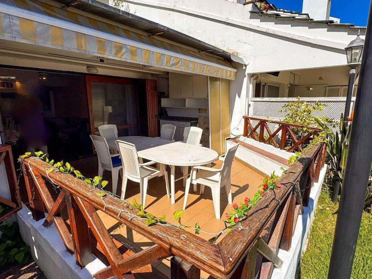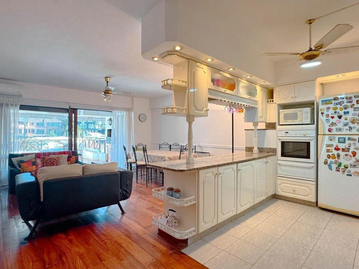 Apartamento tipo kitnet em térreo em Marina del Sol, com vista direta para a baía. Pode ser alugado mobiliado ou sem mobília. O espaço inclui living/cozinha integrados, segundo dormitório ou escritório, área externa com terraço próprio, churrasqueira e área de lavanderia independente, além de ar-condicionado frio/calor em todos os ambientes. Há vaga de garagem descoberta fixa. Aluguel mensal de USD 1.500, mais despesas.