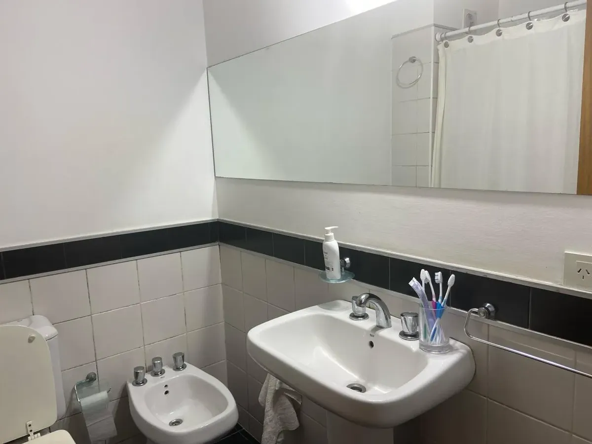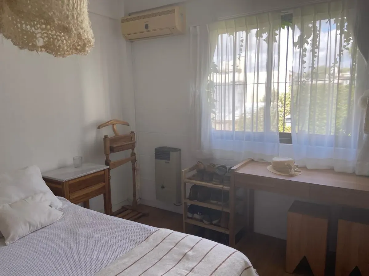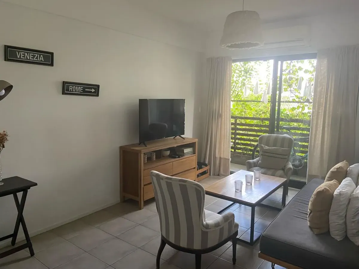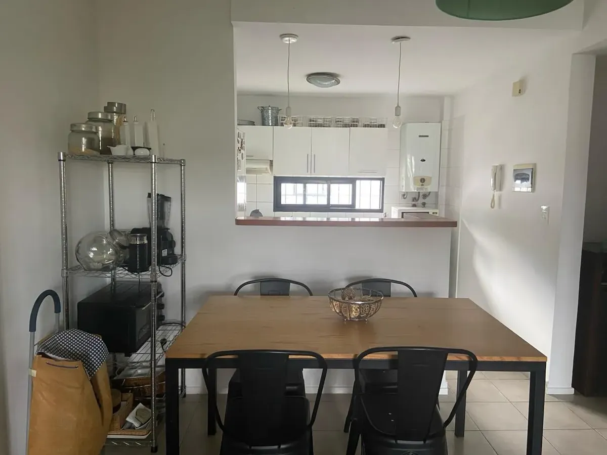 Apartamento de três ambientes no bairro La Calabria, em San Isidro, no 2º andar com elevador. Conta com hall de entrada, living com área de jantar e cozinha integrada, com saída para varanda voltada ao miolo de quadra. Possui 2 dormitórios com armários embutidos e 1 banheiro completo. Inclui 2 aparelhos de ar-condicionado, 2 aquecedores e vaga de garagem semicoberta. Contrato de aluguel em pesos com prazo de 2 anos e reajuste trimestral pelo IPC, mediante seguro-fiança aprovado pelo proprietário