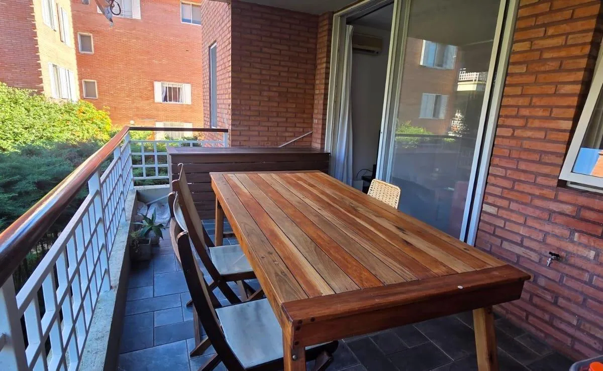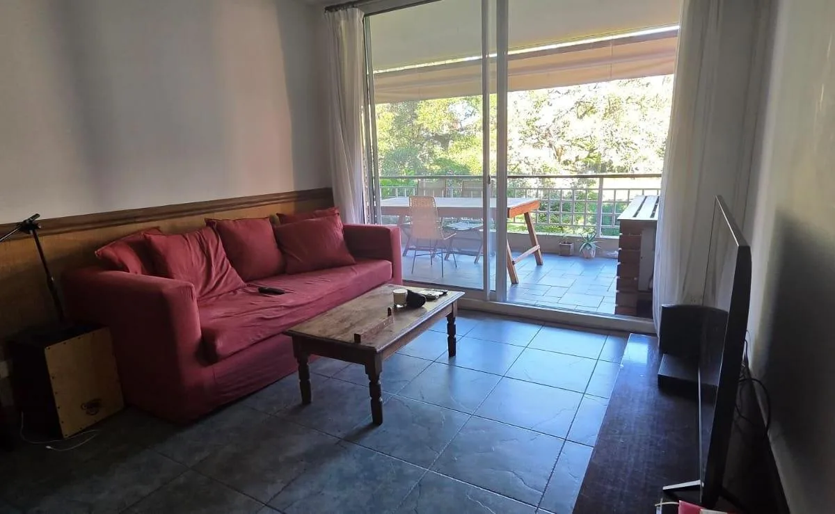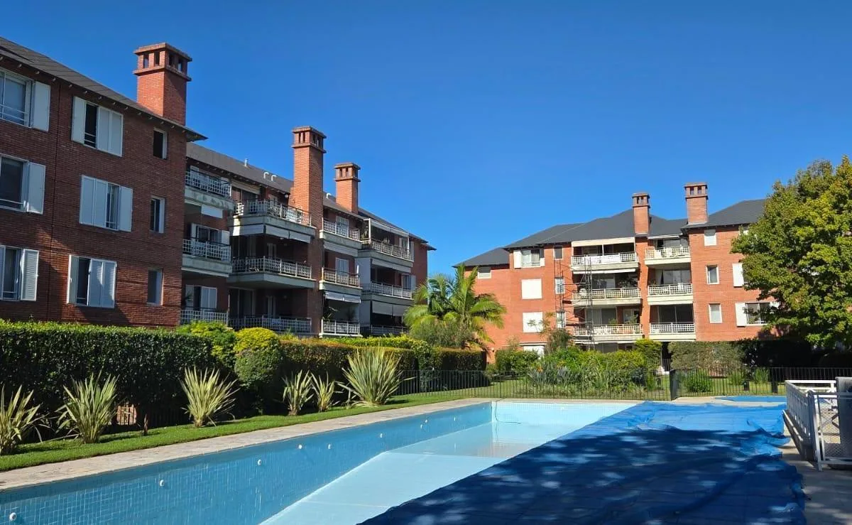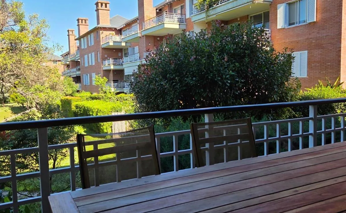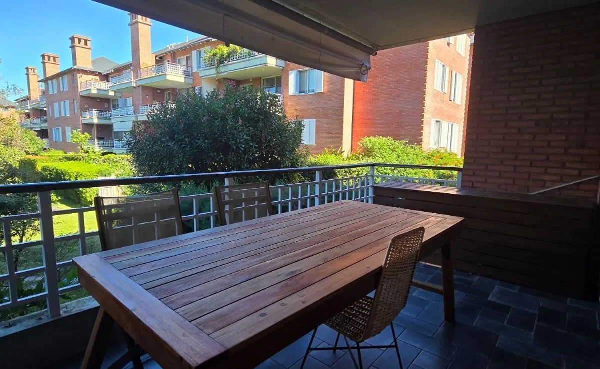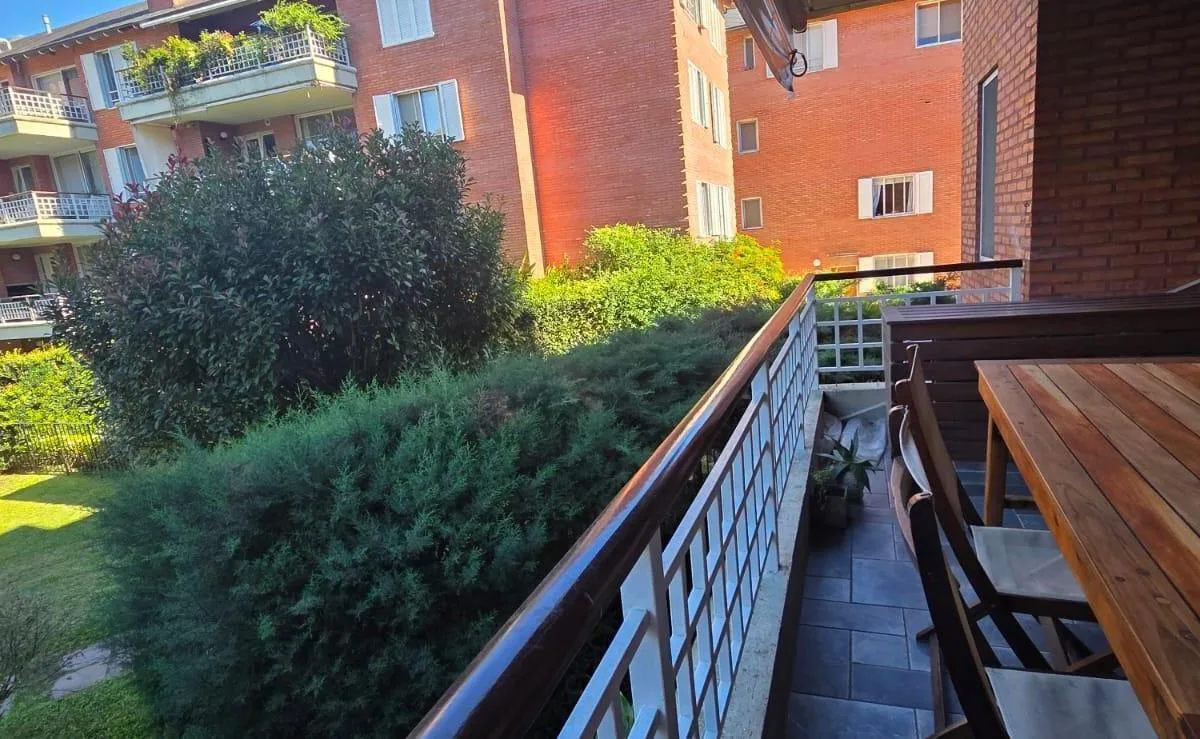 Apartamento de 3 ambientes para aluguel em Jardines de San Isidro, com 2 dormitórios, sendo 1 suíte com closet, 2 banheiros completos e varanda. A unidade fica em esquina, com orientação leste, tem sala de estar e jantar com saída para a varanda com vista para espaço verde. Cozinha independente com área de serviço e conexão para lavadora, 2 ar-condicionados, aquecimento por piso radiante e área de churrasco na varanda. Conta com vaga de garagem coberta no subsolo, com rampa e elevador, serviços