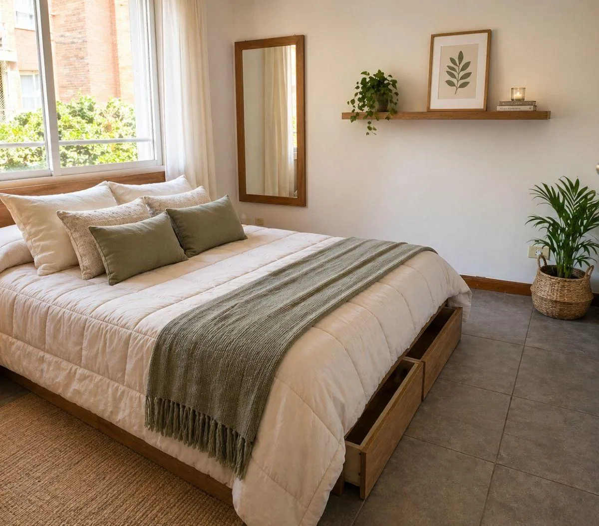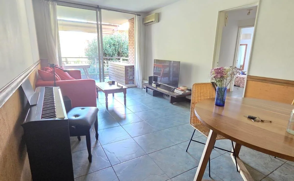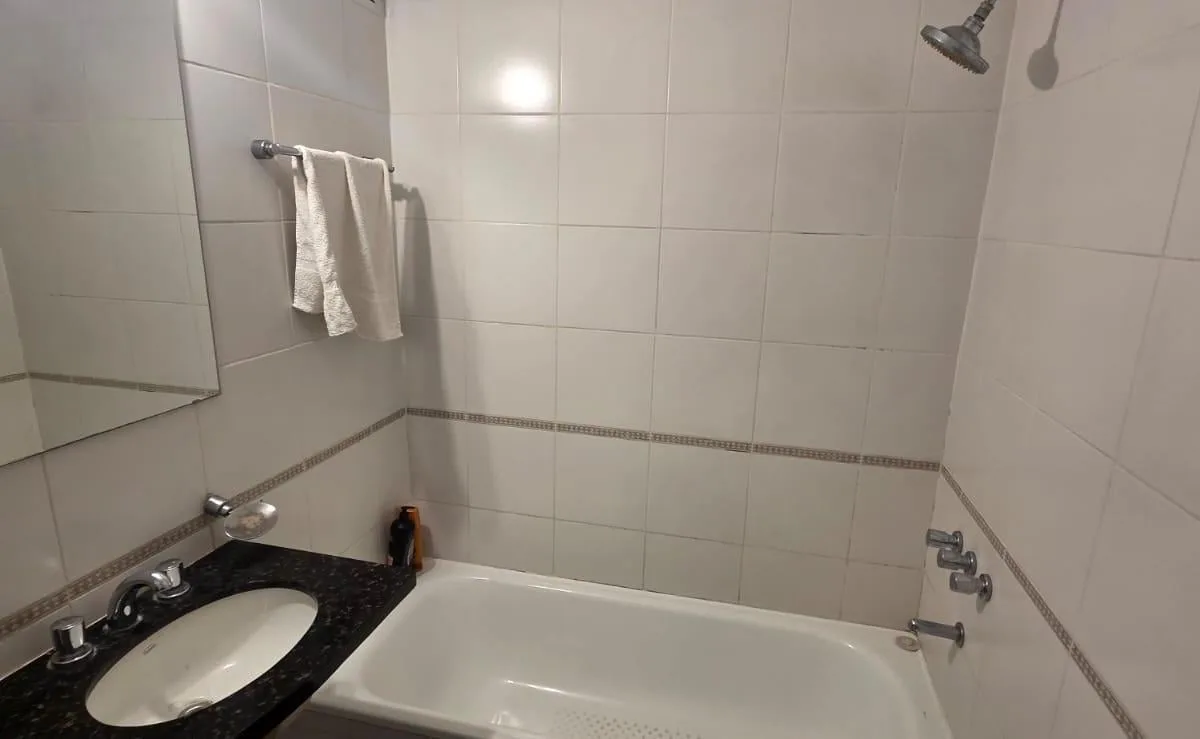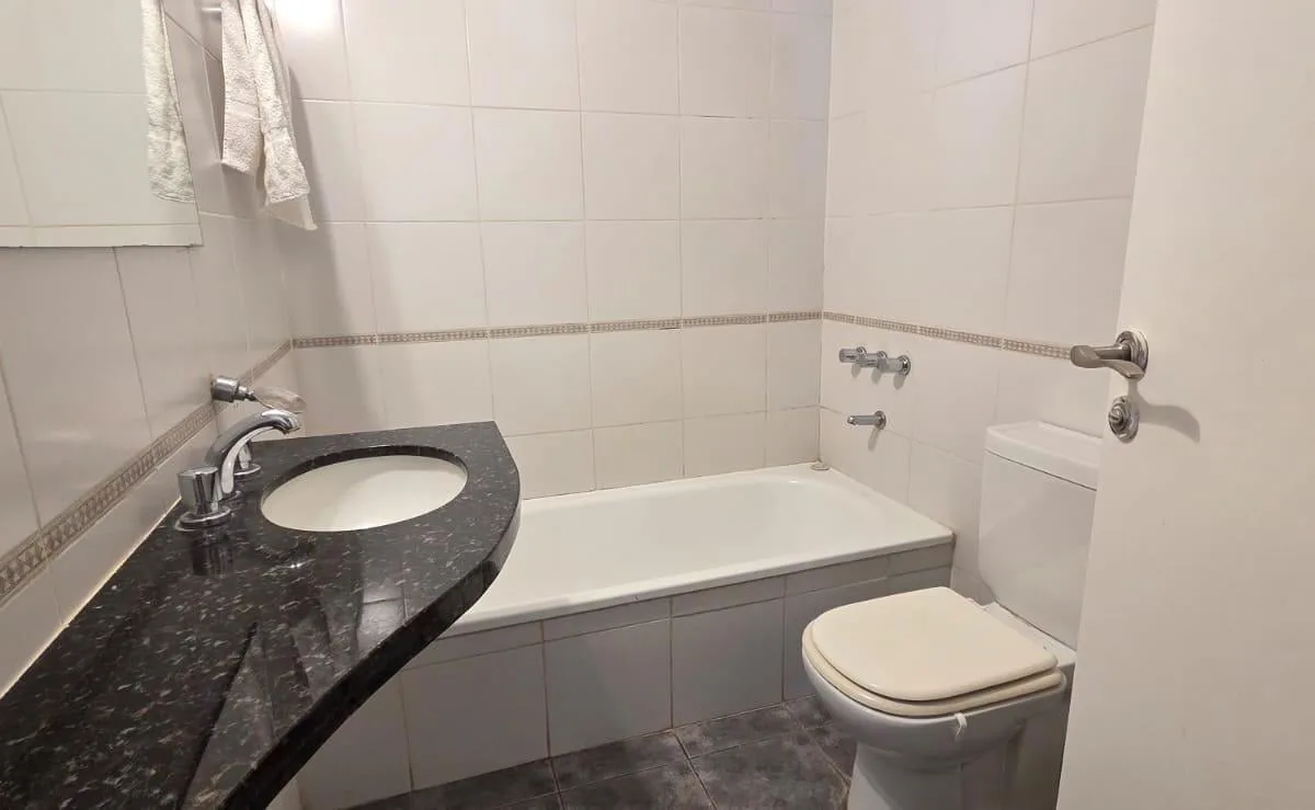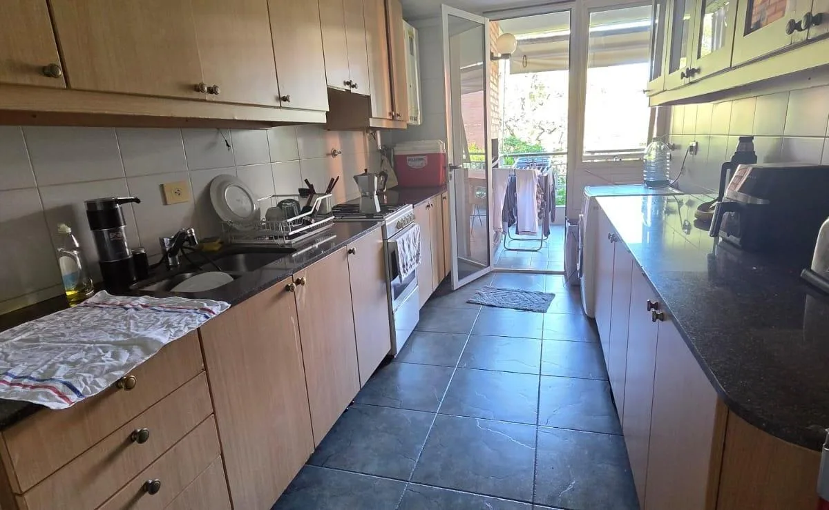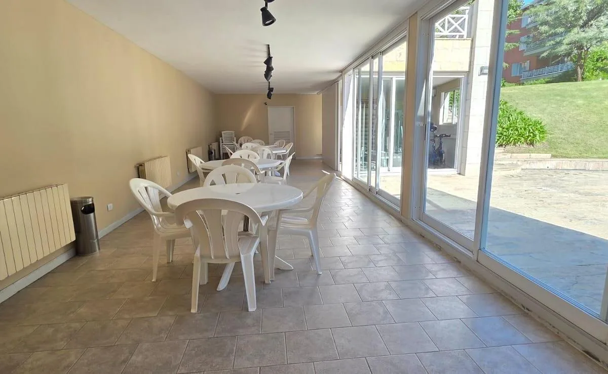 Apartamento de 3 ambientes para aluguel em Jardines de San Isidro, com 2 dormitórios, sendo 1 suíte com closet, 2 banheiros completos e varanda. A unidade fica em esquina, com orientação leste, tem sala de estar e jantar com saída para a varanda com vista para espaço verde. Cozinha independente com área de serviço e conexão para lavadora, 2 ar-condicionados, aquecimento por piso radiante e área de churrasco na varanda. Conta com vaga de garagem coberta no subsolo, com rampa e elevador, serviços