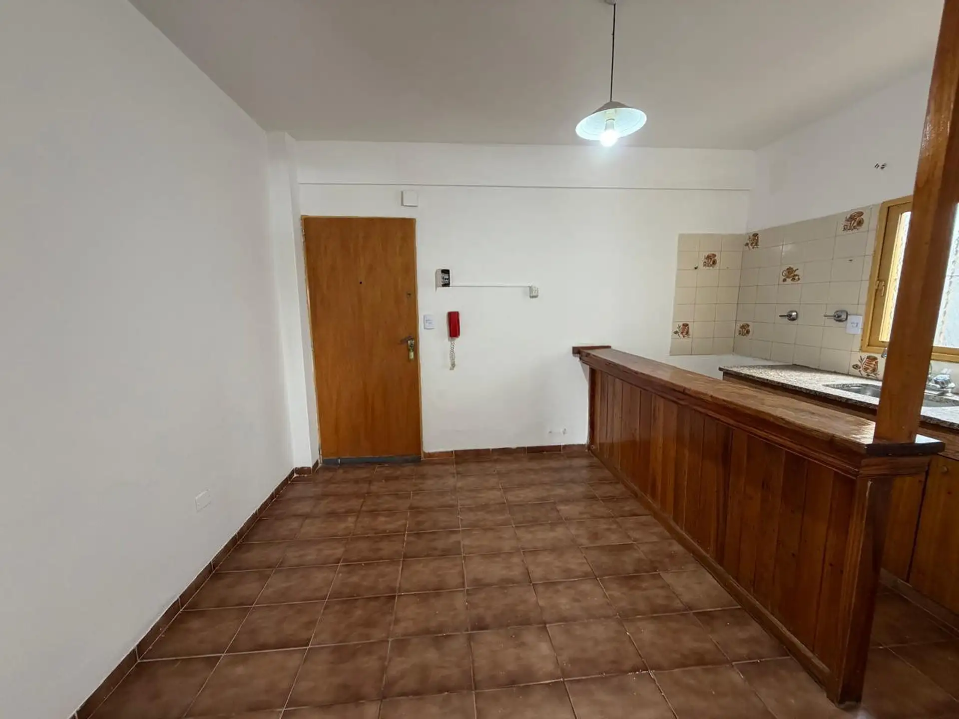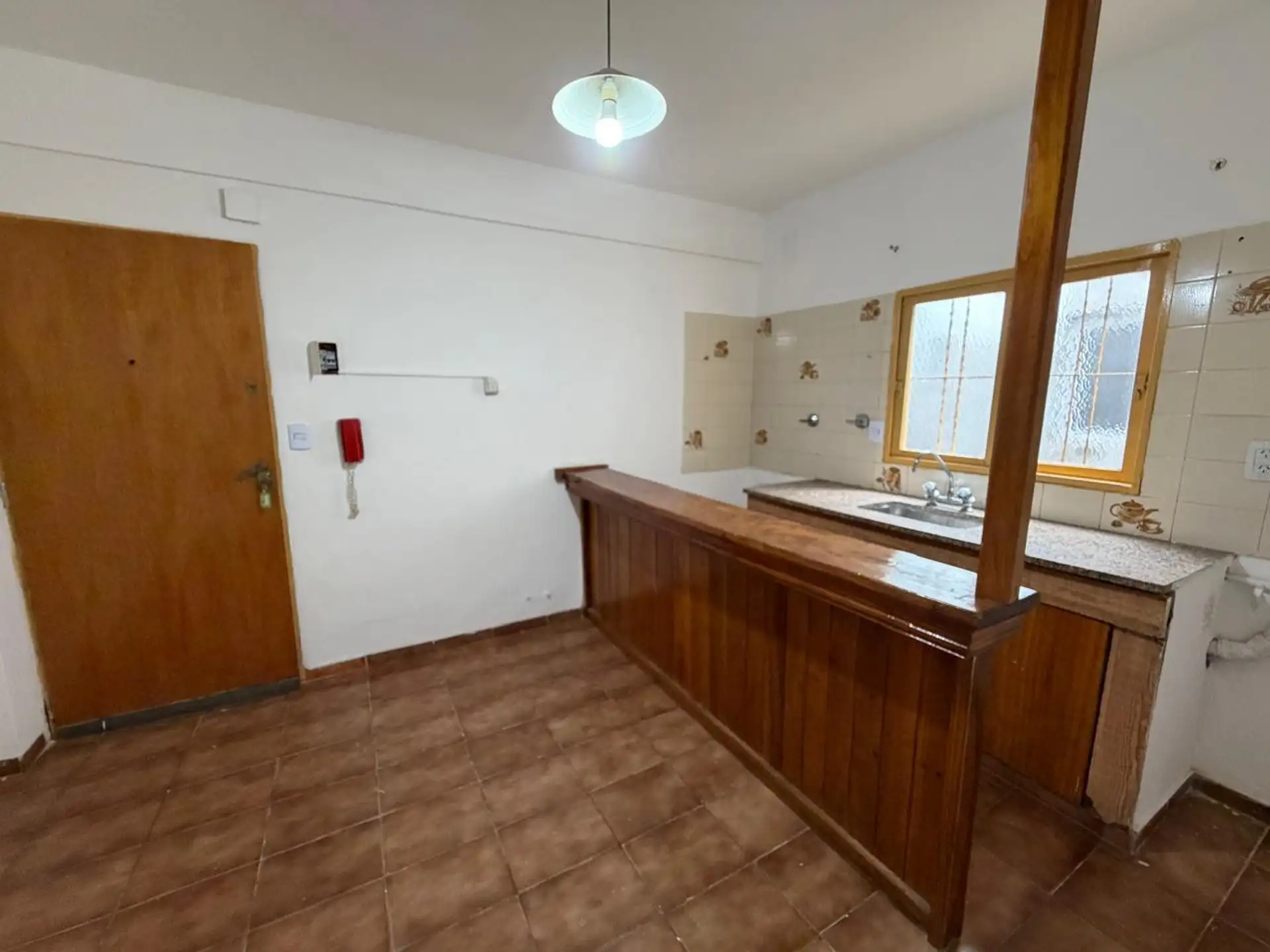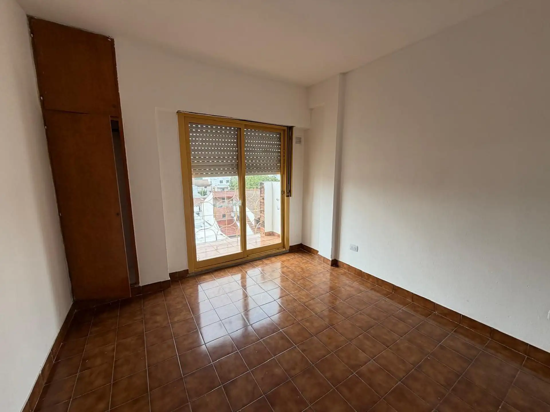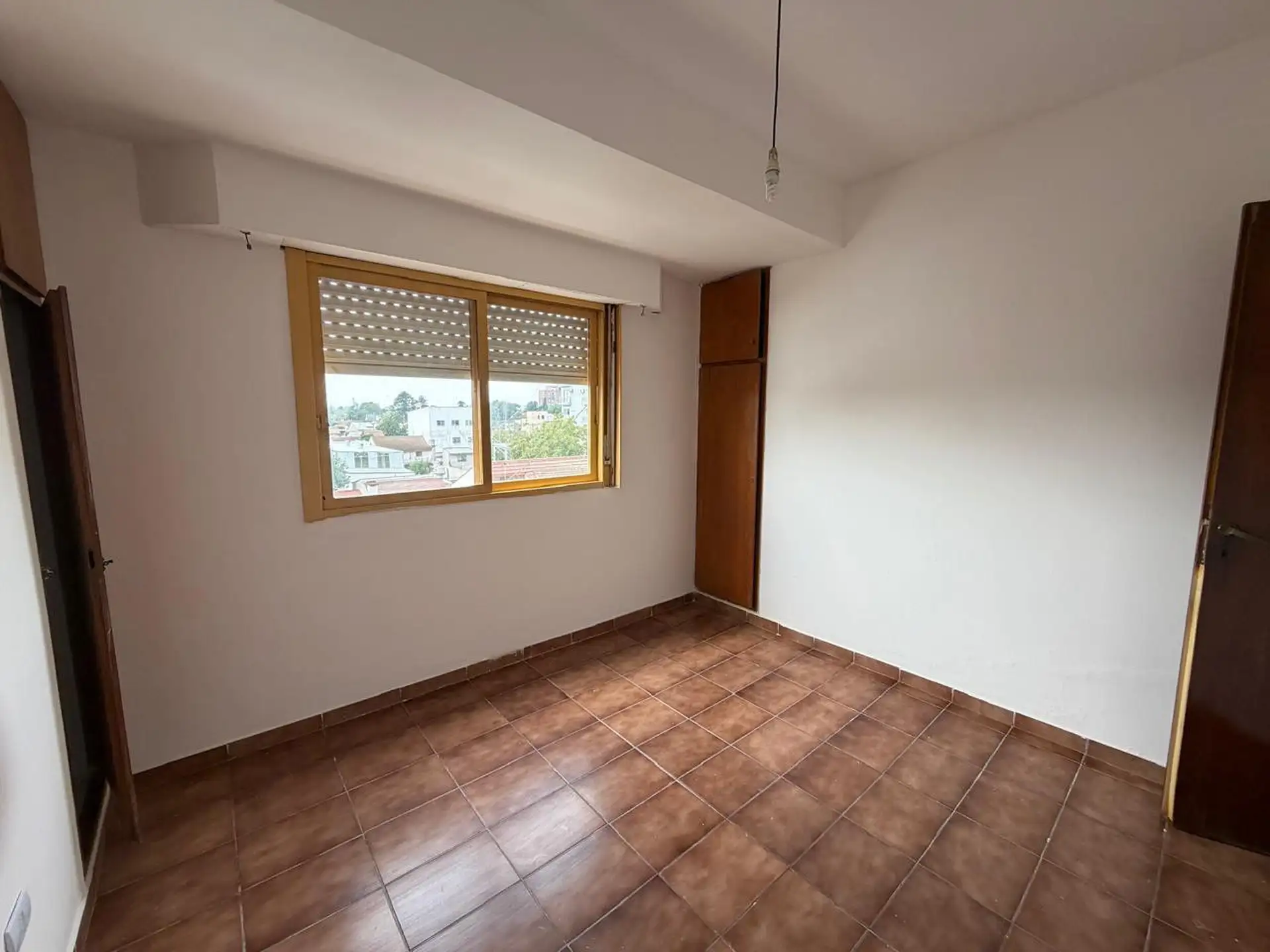 Apartamento de 3 ambientes com 2 quartos no 3º andar em San Miguel. Cozinha e área de refeições integradas ao living, 1 banheiro e armários embutidos pequenos nos quartos. Há varanda. O imóvel tem água e serviços urbanos como rede cloacal, gás natural e eletricidade disponíveis. O aluguel não inclui aparelho de cozinha. Condomínio com valor baixo e prédio com ascensor. O endereço informado é Urquiza 1955 3A, San Miguel.