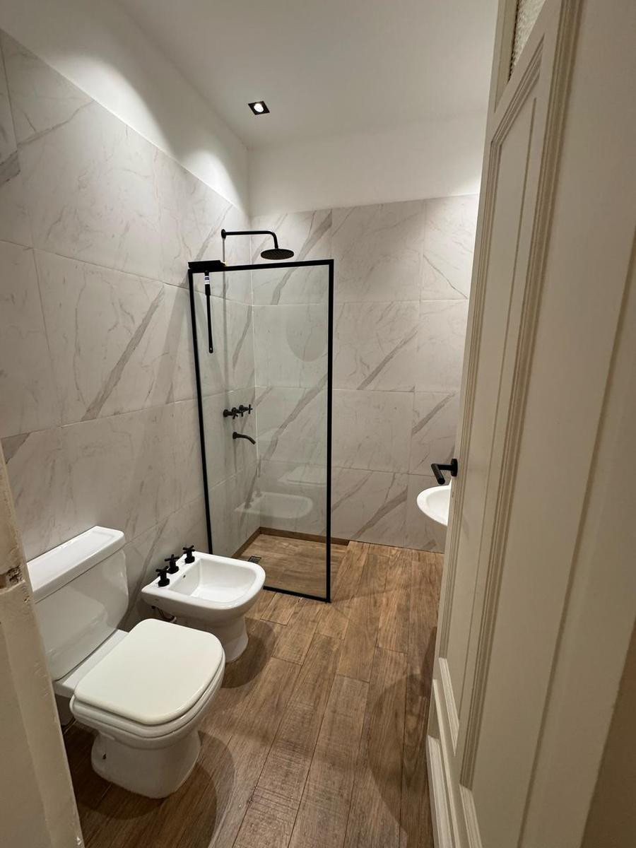 Apartamento de 3 ambientes para aluguel em San Telmo, totalmente reformado nos últimos 3 anos, com 2 dormitórios, sala de estar/jantar e cozinha integrada. Possui 1 banheiro completo e pátio. Aluguel de $950.000 com condomínio (expensas) de $153.000. Exige 1 mês de adiantamento e 1 mês de depósito. A atualização é trimestral pelo IPC. Condomínio, ABL e serviços ficam a cargo do inquilino.