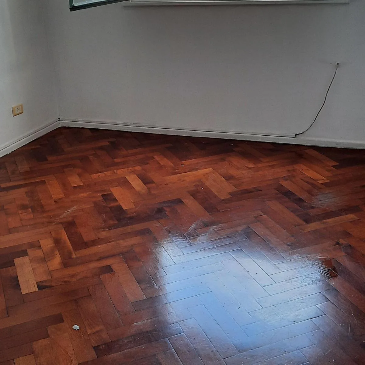 Apartamento de três ambientes em San Telmo, com 2 dormitórios com armários. Sala de estar e jantar com varanda e 1 quarto menor que pode funcionar como escritório ou como dormitório pequeno. Há 1 banheiro completo e 1 lavabo. Cozinha e área de serviço em bom estado, com pisos de parquet; contrato de 2 anos e proibição de animais.