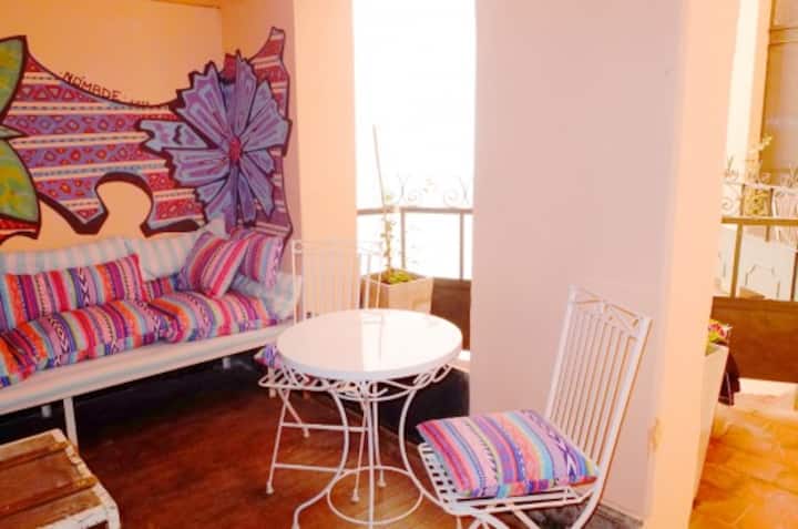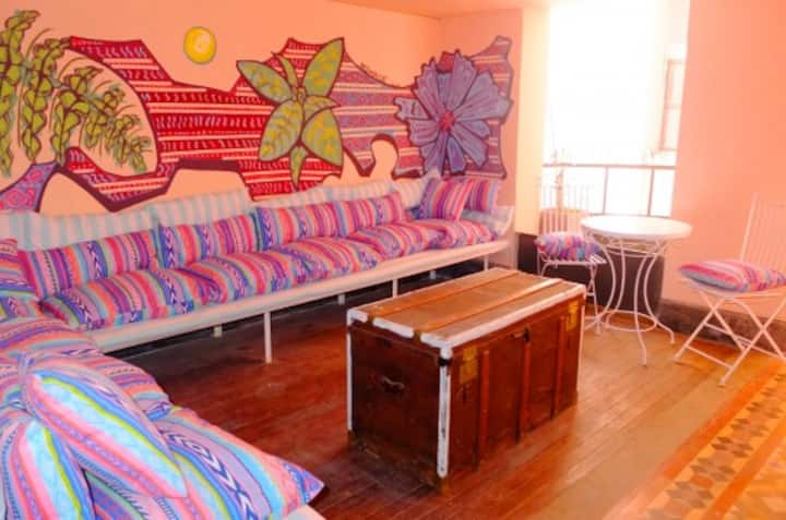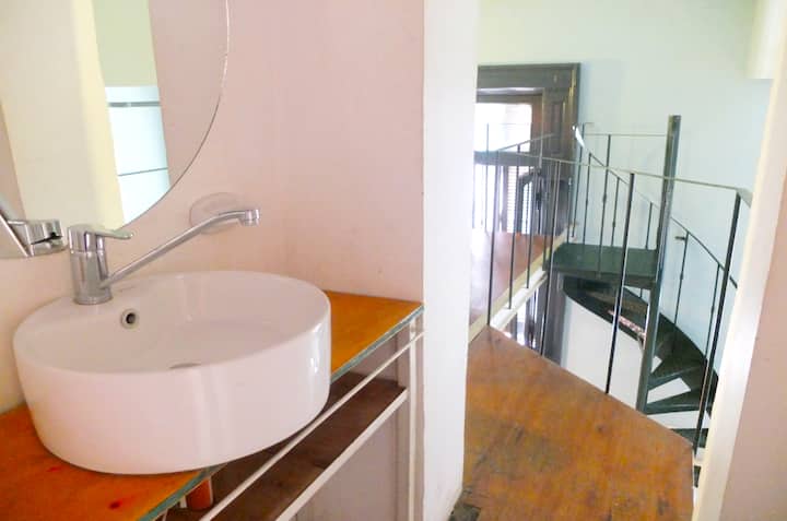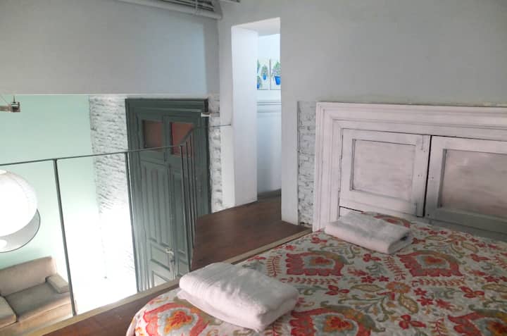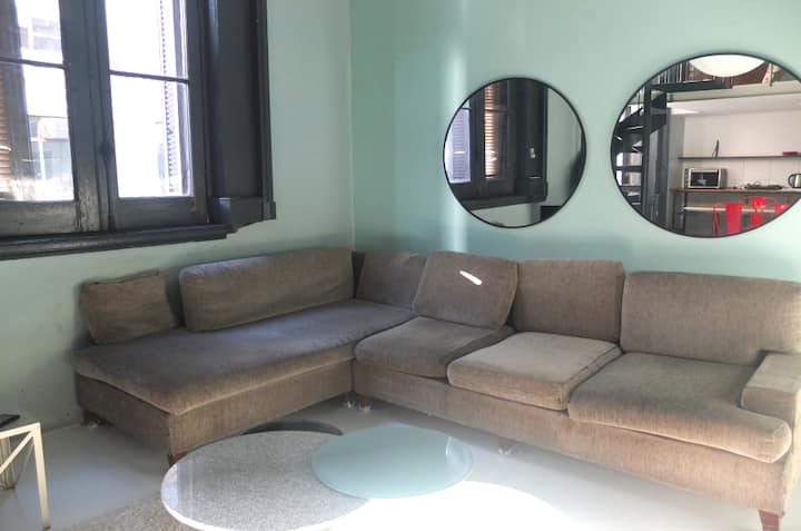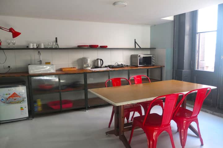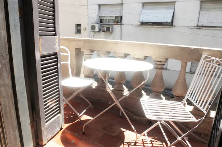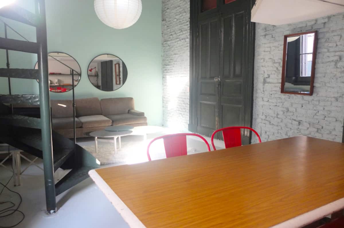 Apartamento em San Telmo em prédio reformado, antigo local de impressão. Possui 2 dormitórios no mezanino, com espaço integrado à área de estar, além de 1 banheiro completo. A área de estar é integrada à cozinha e conta com mobiliário de época. Inclui pátio e varanda.