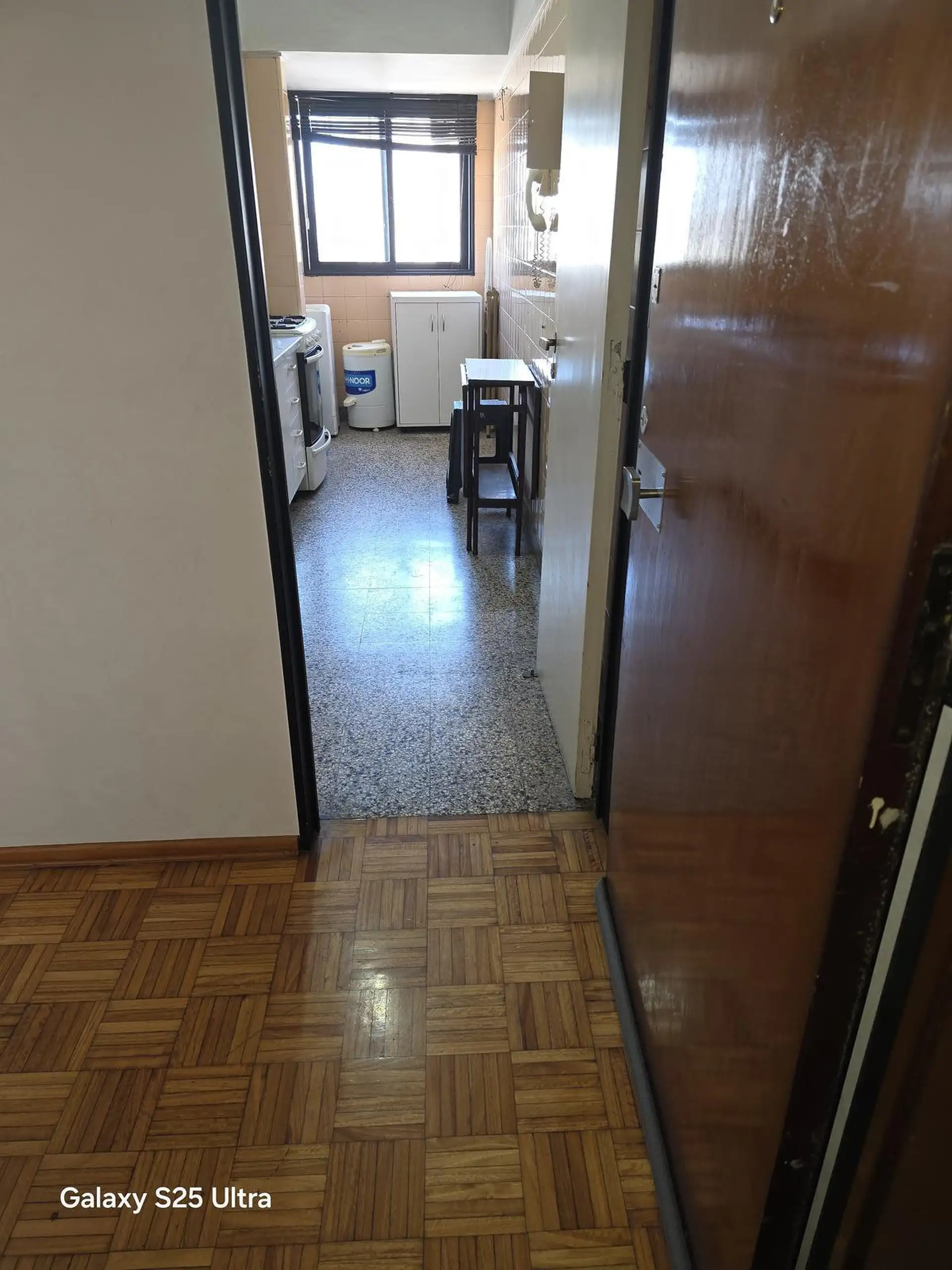 Apartamento de 3 ambientes em San Telmo, com 2 dormitórios, 1 deles com armário embutido, sala de estar e jantar com ar-condicionado e banheiro completo. Cozinha e área de serviço (lavadero), com varanda lateral e piso alto. Edifício com vigilância 24 horas; não aceitam pets e não há acesso. Para aluguel residencial, exige garantia ou seguro de fiança e comprovante de renda.