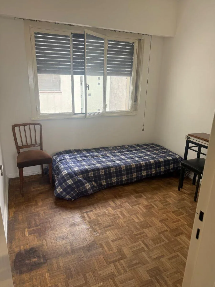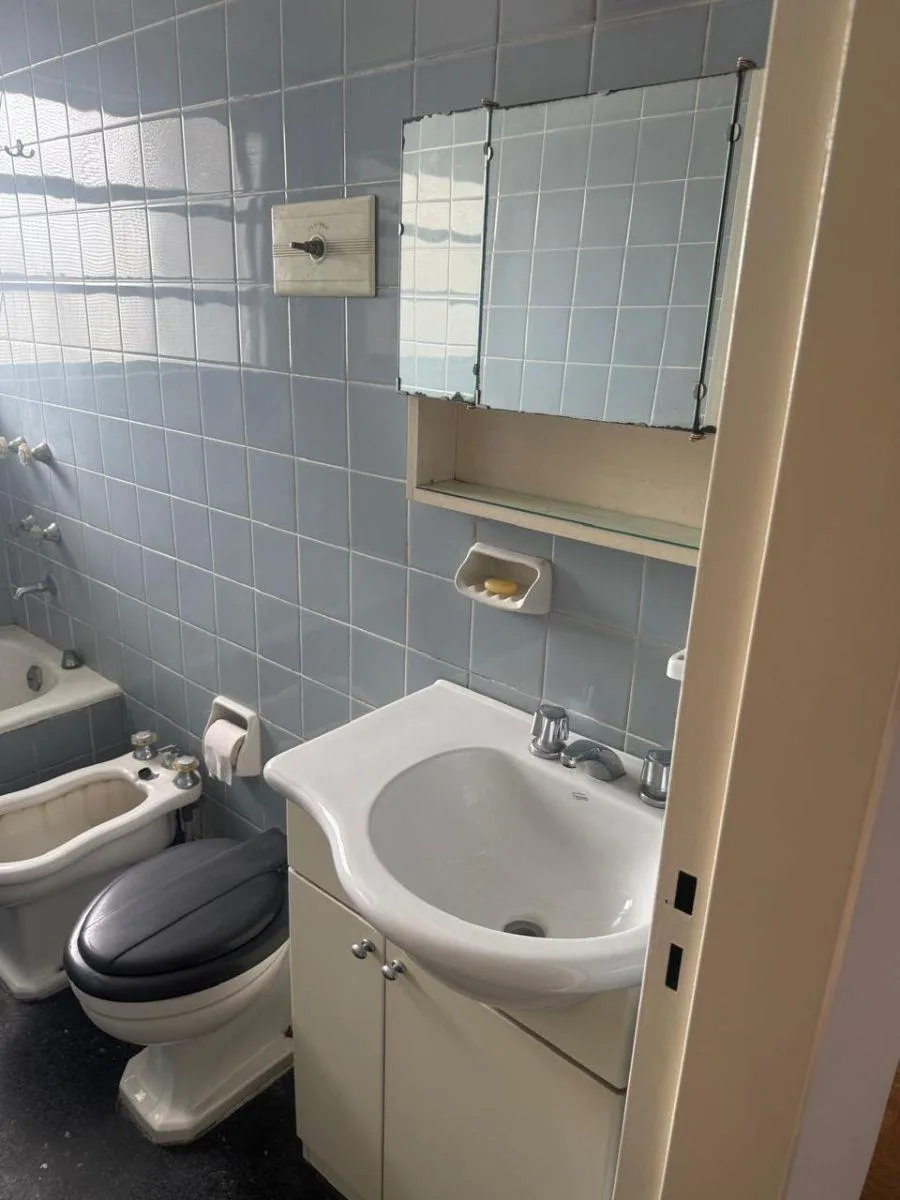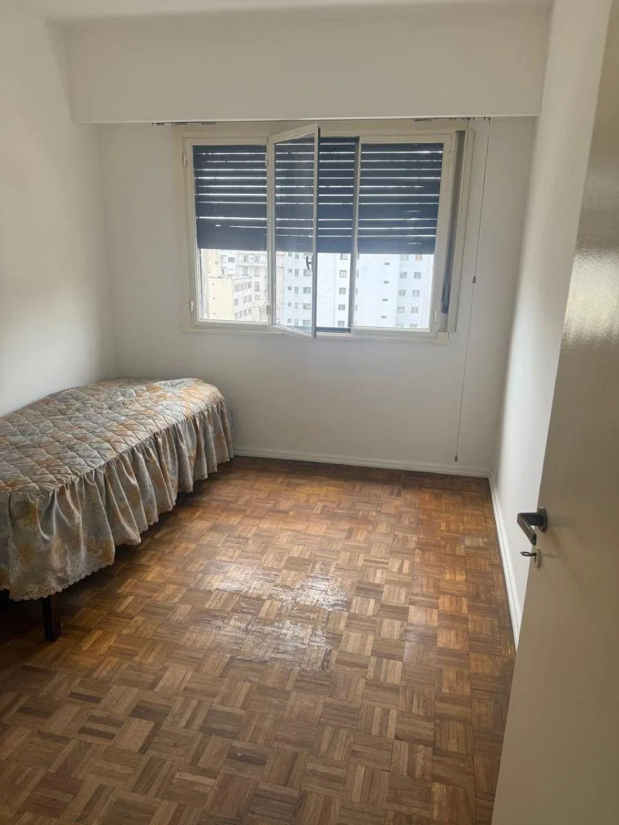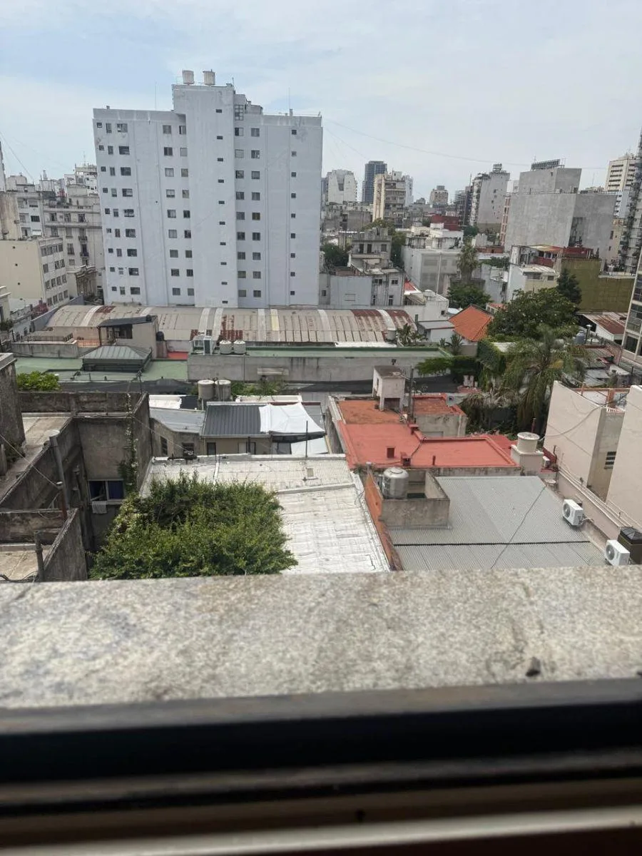 Apartamento de três ambientes no 7° andar, na rua Chacabuco a 1100, com varanda de frente para a rua. A unidade tem living e área de jantar, 2 dormitórios com armários embutidos, cozinha e área de lavanderia. Inclui 1 vaga de garagem. Localizado a poucos metros da Av. San Juan e próximo das avenidas Independencia, 9 de Julio e Paseo Colón.