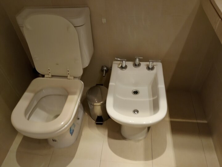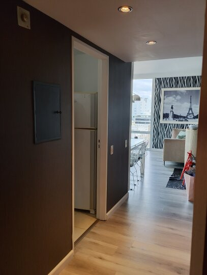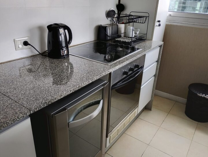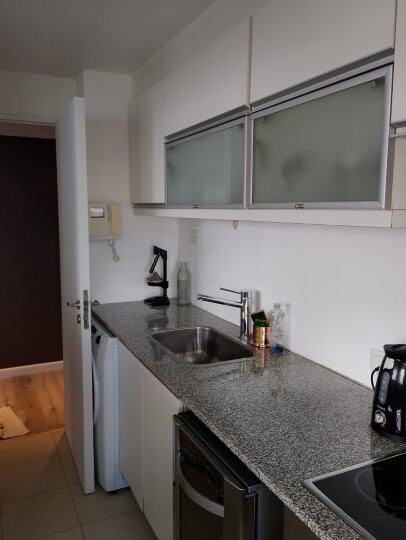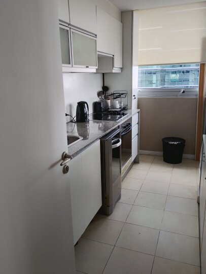 Apartamento de 3 ambientes com 73 m² no 12º andar, de frente para a rua, com varanda corrida, em San Telmo. Possui living, banheiro em suíte no quarto principal, segundo quarto com armário e 2 camas de solteiro, além de outro banheiro completo. A cozinha é independente e vem equipada com fogão e forno a gás, geladeira com freezer, lava-louças, micro-ondas e lavadora. O edifício tem piscina, academia, salão de festas e segurança 24 horas. Aluguel mensal de US$ 1.600 + condomínio; serviços à parte