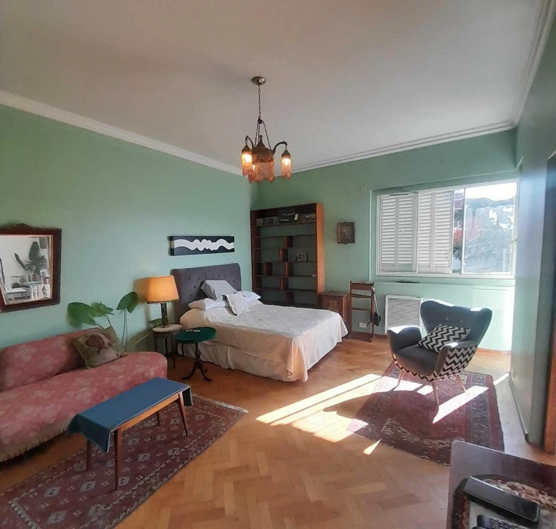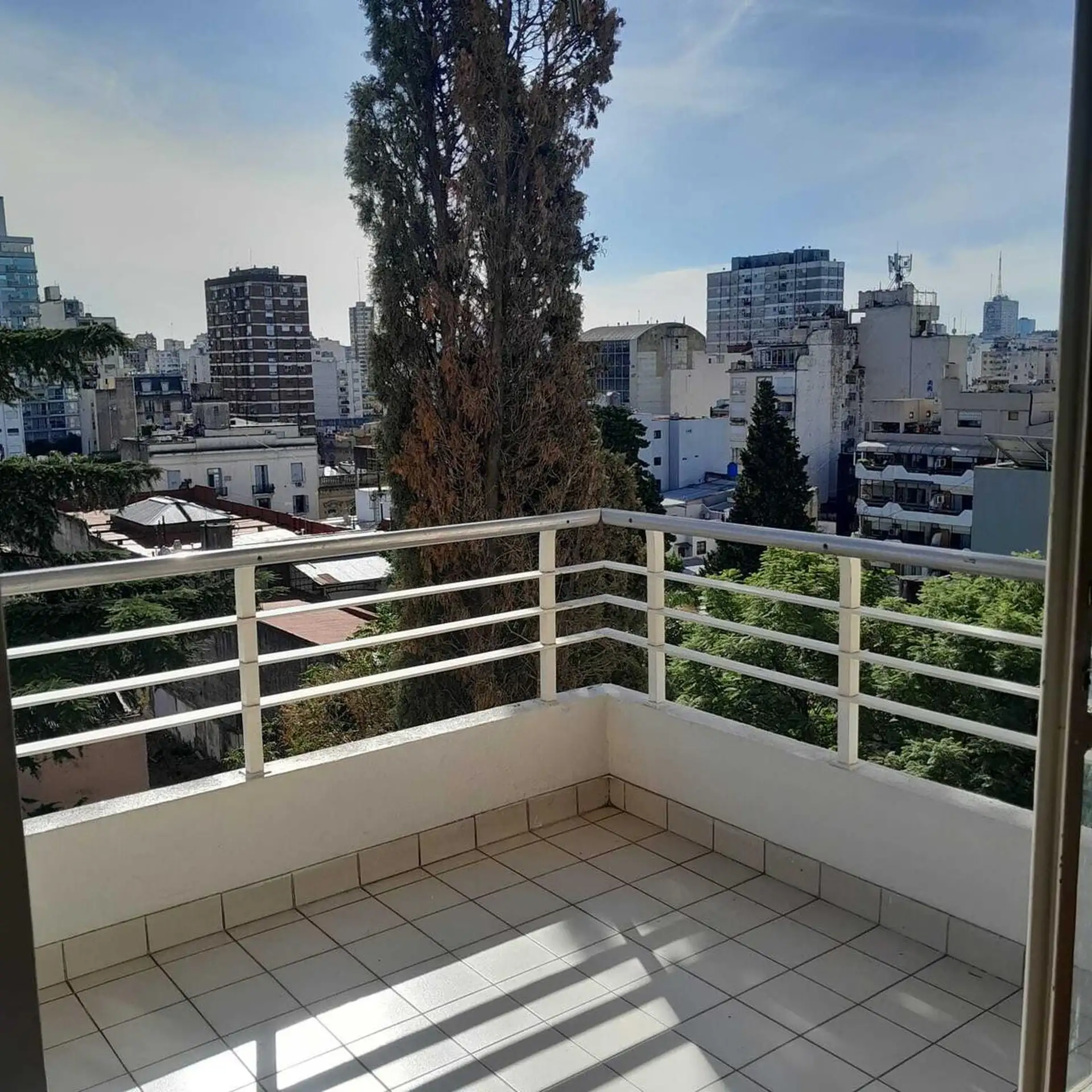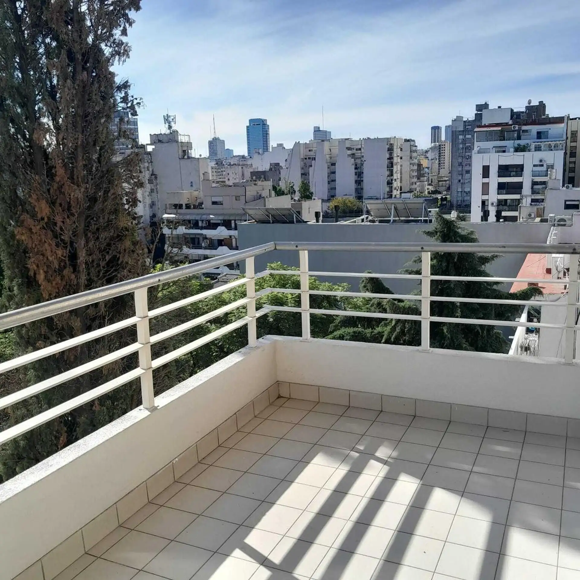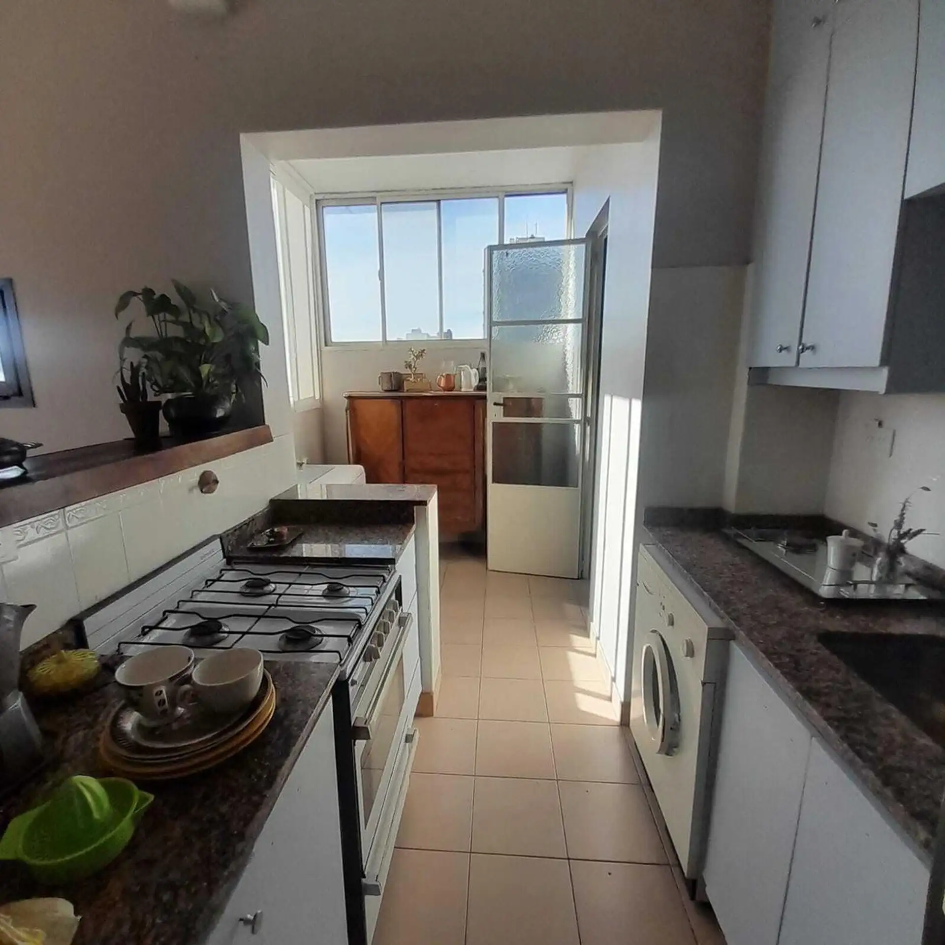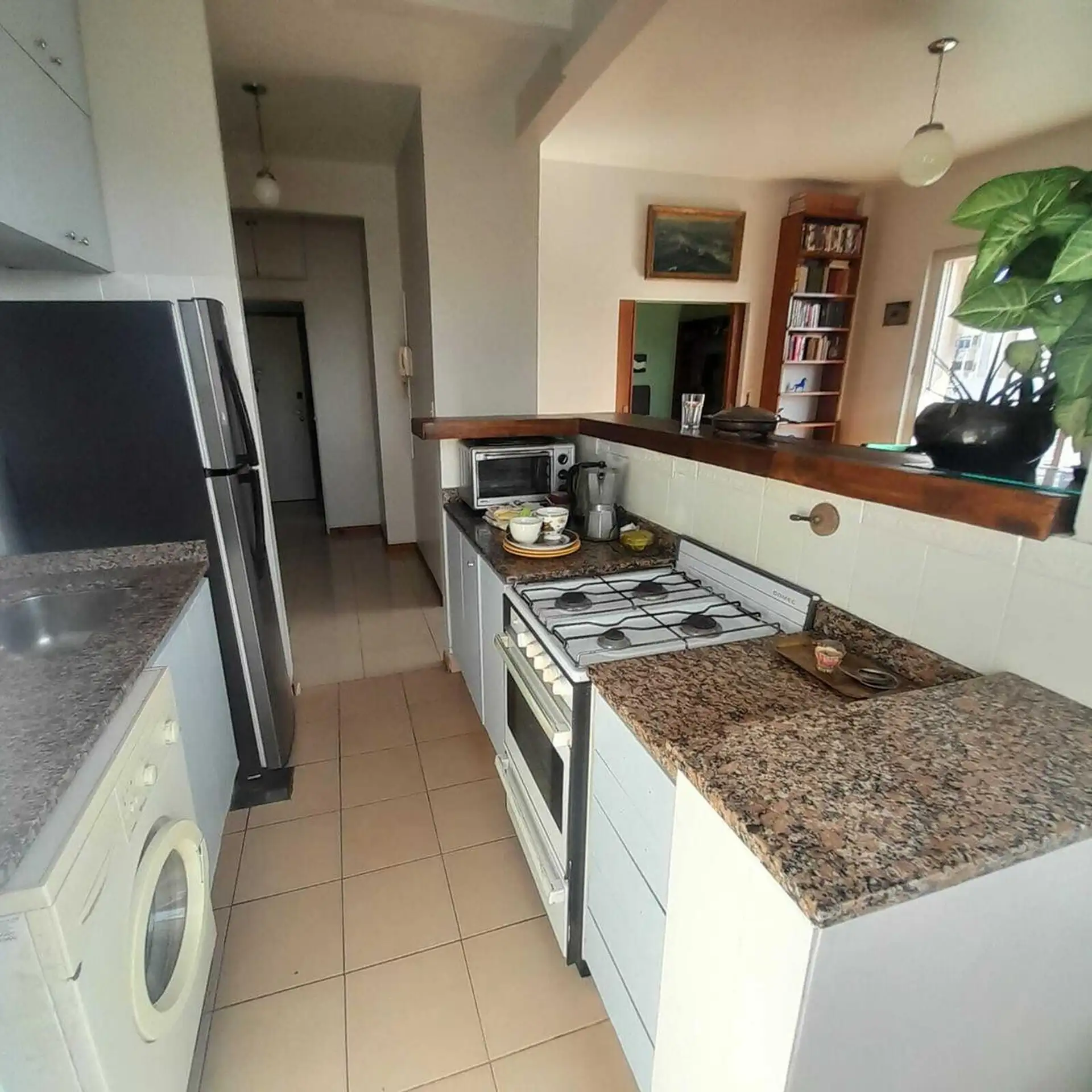 Apartamento de 3 ambientes mobiliado e equipado, com 2 dormitórios, sendo 1 deles com banheiro privativo e outro com banheiro. Tem sala de estar e sala de jantar, cozinha com geladeira e lavadora (lavarropa), além de área de jantar diário e varanda-terraço voltada para o jardim do edifício. Fica no edifício racionalista Maison Garay, de Jorge Kalnay, próximo ao Parque Lezama e ao eixo turístico de Plaza Dorrego. Contrato de 1 ano: fiança de aluguel ou fiador proprietário; depósito equivalente a