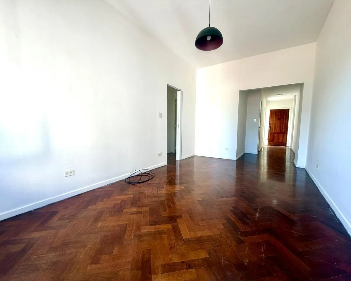 Apartamento de 3 ambientes em San Telmo, sobre a Calle Bolívar 1400. Unidade de frente, com ampla entrada, sala de estar e jantar com janelas voltadas para a rua e orientação oeste, e cozinha com área para refeições. Lavanderia independente, 2 dormitórios com armários, 1 banheiro completo grande; o imóvel tem dupla orientação (leste e oeste) e ventilação cruzada. Pisos de parquet bem conservados.