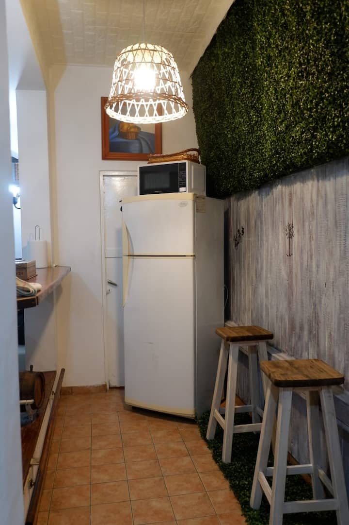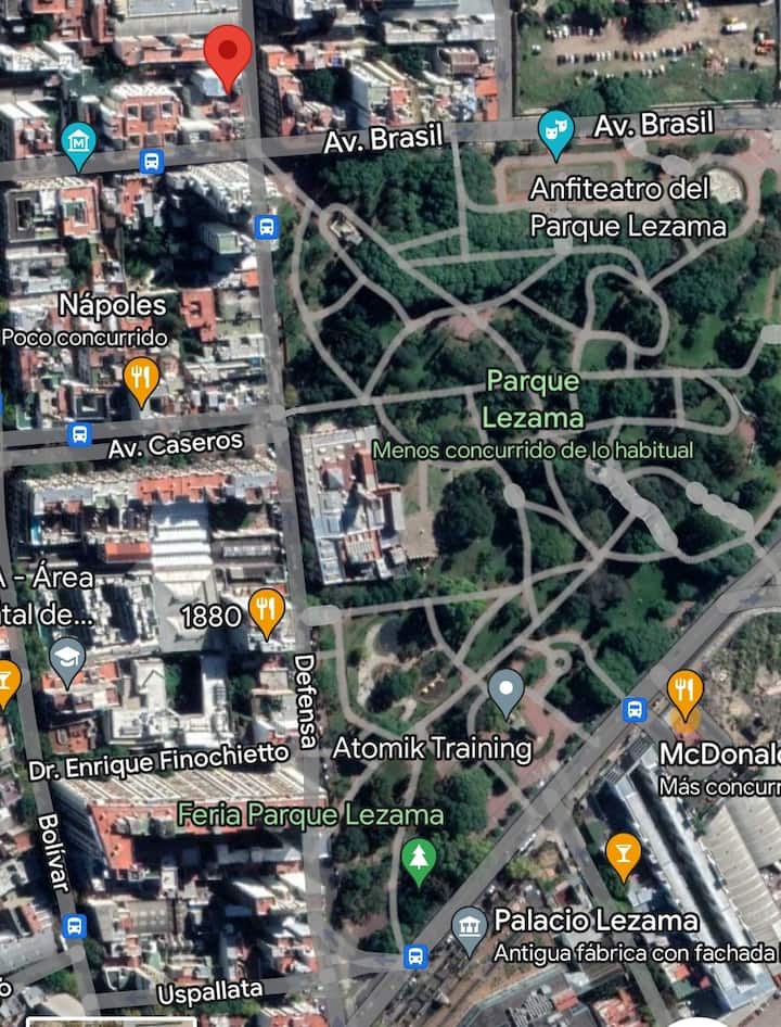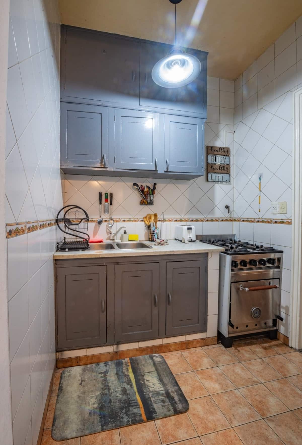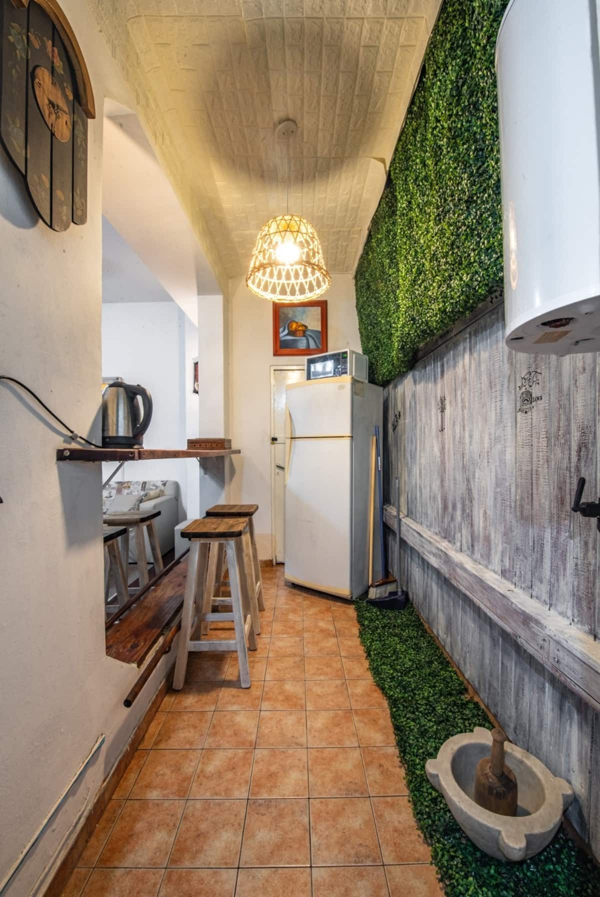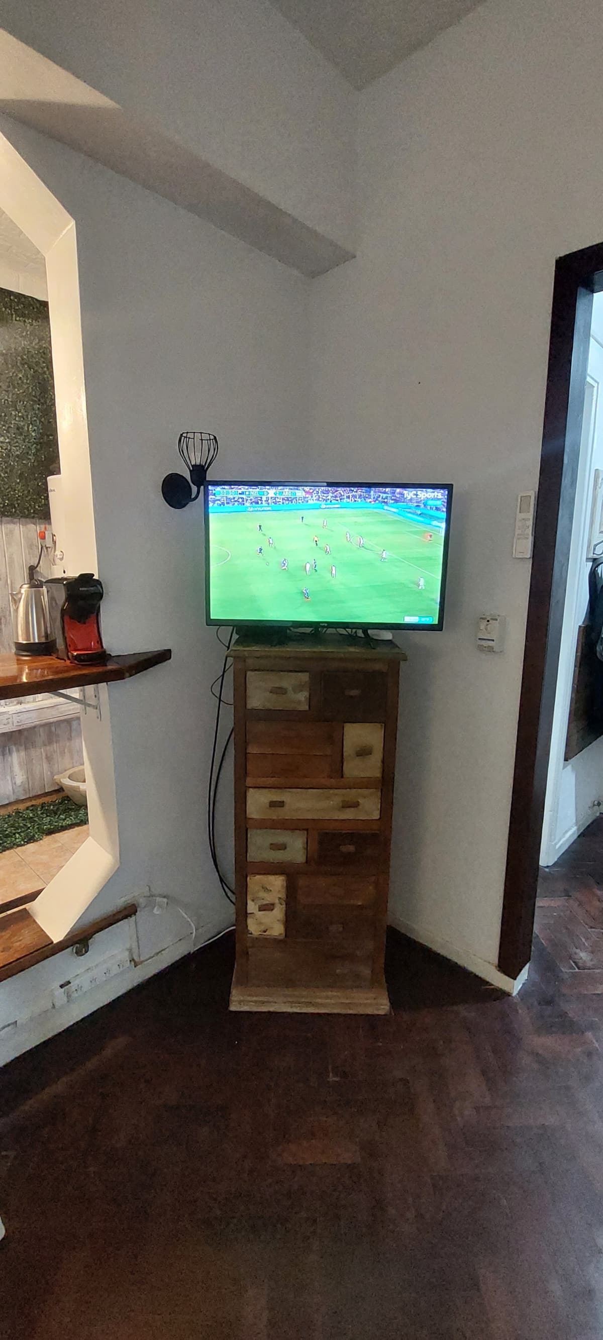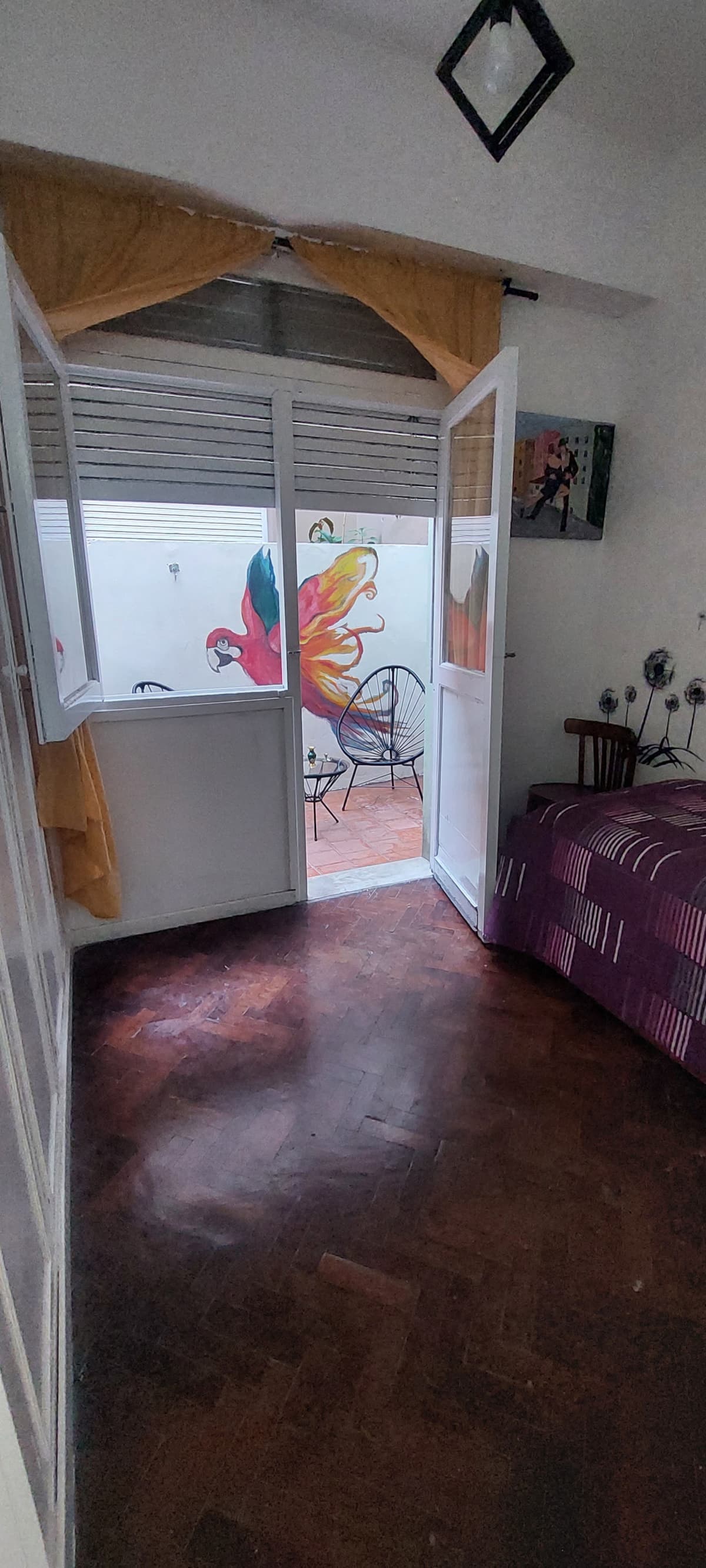 Apartamento em San Telmo com 2 quartos separados, sala com TV e cozinha, reformado mantendo estilo vintage. Há uma área externa privativa (pátio) com permissão para fumar. A cozinha inclui máquina de café de cápsulas. A acomodação fica a cerca de 20 m do Parque Lezama e próxima ao Mercado de San Telmo.