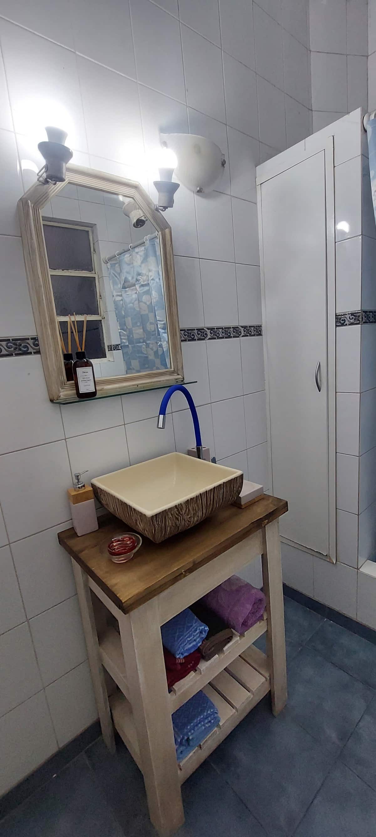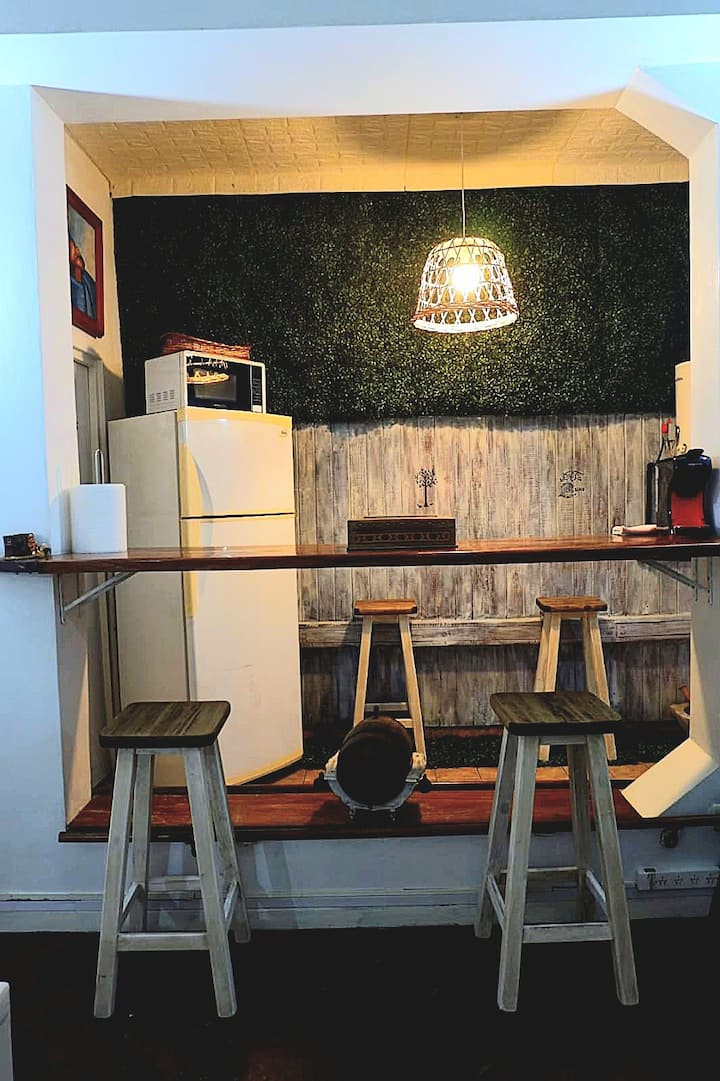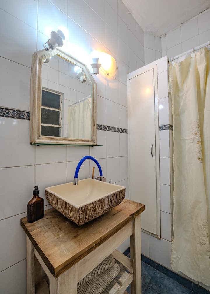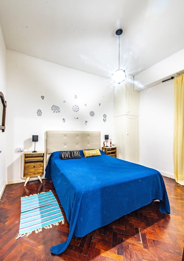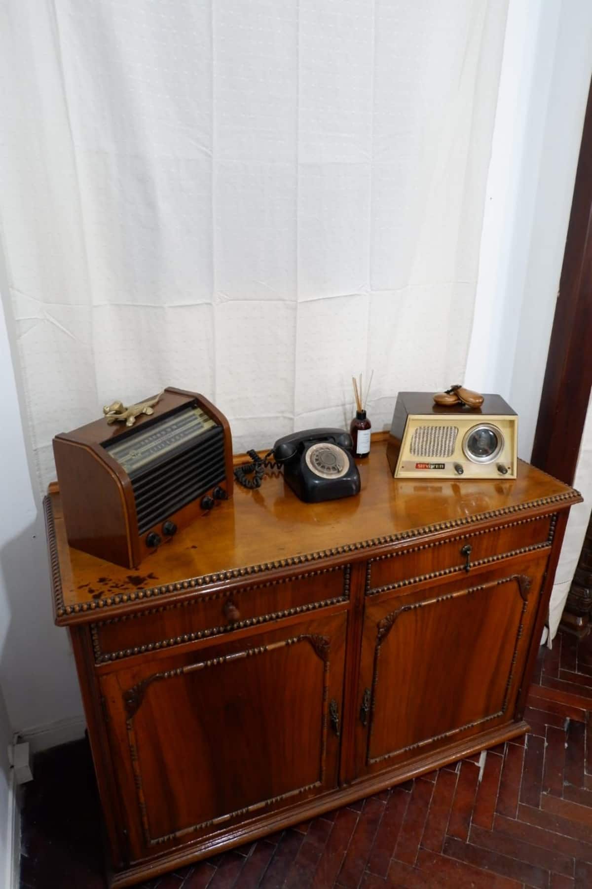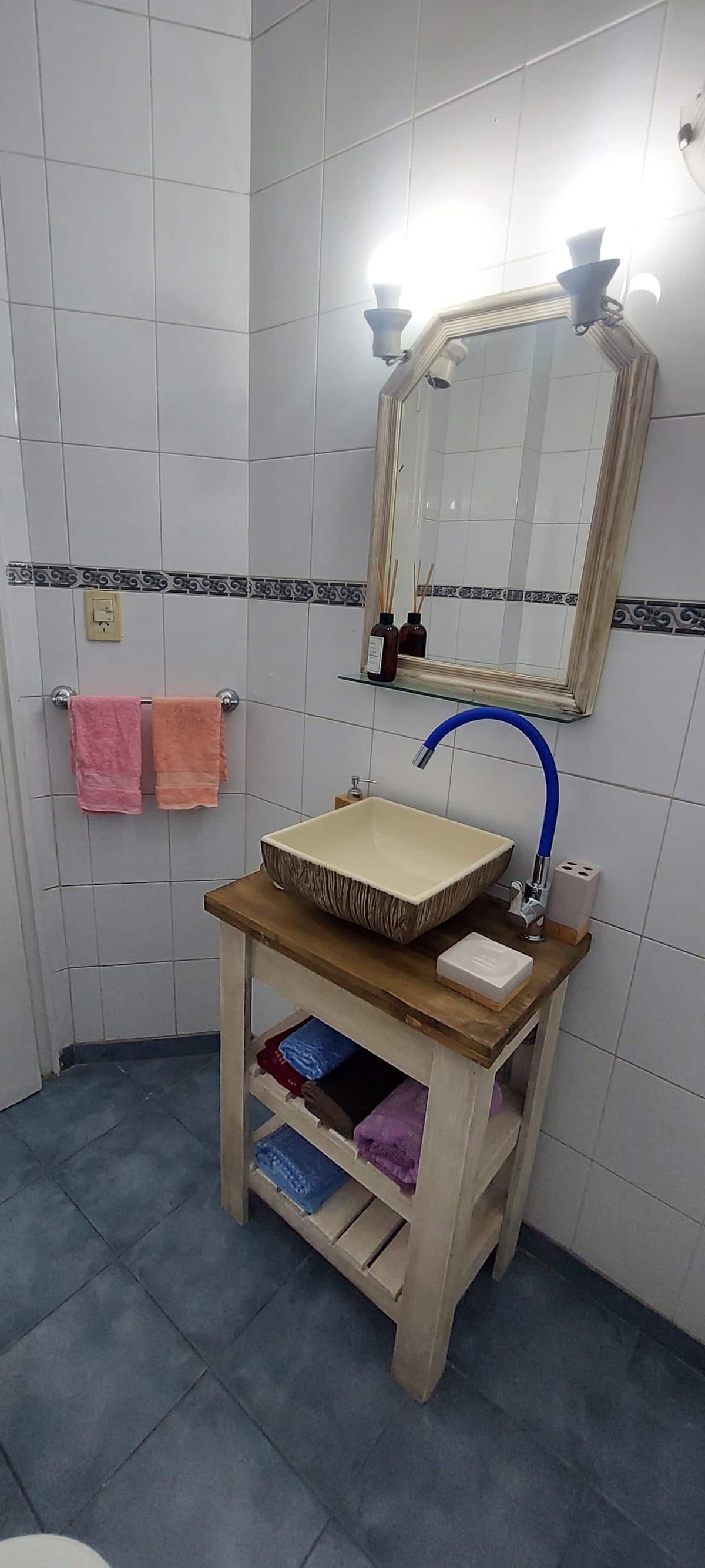 Apartamento em San Telmo com 2 quartos separados, sala com TV e cozinha, reformado mantendo estilo vintage. Há uma área externa privativa (pátio) com permissão para fumar. A cozinha inclui máquina de café de cápsulas. A acomodação fica a cerca de 20 m do Parque Lezama e próxima ao Mercado de San Telmo.