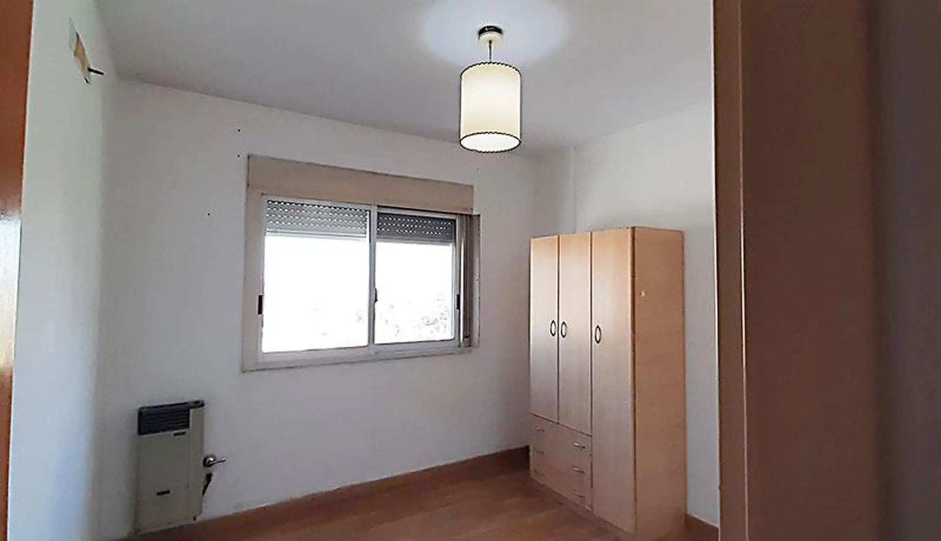Apartamento de 3 ambientes no 7º andar, disponível a partir de 1º de maio de 2026. Tem 2 dormitórios com janelas com redes de segurança e mosquiteiros, 1 banheiro completo e cozinha completa com espaço para instalar máquina de lavar roupa. Sala de estar e jantar com ar-condicionado (frio), aquecimento por tiro balanceado e acesso a uma varanda pequena com grande vão envidraçado e mosquiteiro. O condomínio tem 2 elevadores e área de entrada; o prédio oferece terraço com salão de usos múltiplos, á